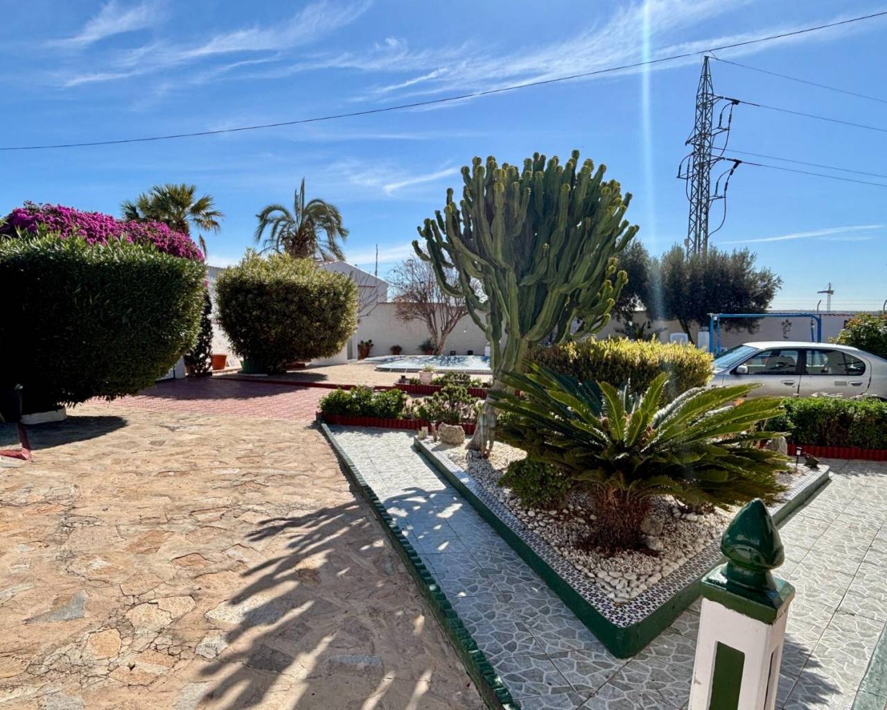 Bienvenido a esta hermosa casa unifamiliar ubicada en una de las zonas más atractivas de Ciudad Quesada, Costa Blanca. Con sus 235 m2 en una sola planta y una parcela soleada de 890 m2, esta propiedad ofrece una combinación única de amplitud, comodidad y encanto. La casa tiene una ubicación ideal, a solo 5 minutos a pie de la calle principal, donde encontrará restaurantes, bares, cafeterías, farmacias y tiendas de comestibles. La parcela, cuidadosamente diseñada, es un oasis verde, con una rica selección de flores, árboles y arbustos ornamentales que proporcionan un ambiente armonioso y acogedor. Aquí también encontrará una piscina de 8x4 metros con ducha al aire libre y espacio para tumbonas. (A día de hoy, la piscina está cubierta con una lona, ya que el propietario no la utiliza). La residencia: La propiedad está bien conservada y ha conservado su estilo y encanto tradicional español. Con habitaciones amplias y ventiladas y un plano de planta bien pensado, ofrece una fantástica comodidad de vida. - 3 amplios dormitorios. - 2 baños + aseo de invitados. - Cocina luminosa y abierta. - Amplio comedor y salón con chimenea (y acceso directo a terraza soleada). - Acogedor “salón de descanso o de té” para relajarse. - Amplio lavadero y cuarto de servicio directamente adyacente al garaje. Bono: Un pequeño apartamento tipo estudio con baño, perfecto para invitados o como espacio de uso flexible. Esta propiedad es una joya rara en Quesada, con su amplia y hermosa parcela, excelente ubicación y carácter auténtico. Parcela: La soleada parcela está orientada al sur y sureste, lo que garantiza sol durante todo el día. Aquí podrá disfrutar de la vida al aire libre, ya sea en el jardín, junto a la piscina o en uno de los numerosos patios. La propiedad es perfecta para aquellos que desean una gran parcela con privacidad y buenas áreas de estar. Distancias: A 5 minutos andando de la calle principal de Quesada (restaurantes, bares, tiendas, farmacia etc.). A 15 minutos en coche de las maravillosas playas de arena de Guardamar del Segura. A 35 minutos del aeropuerto de Alicante. A 14 minutos del Centro Comercial Habaneras. A 20 minutos de La Zenia Boulevard, uno de los centros comerciales al aire libre más grandes de Europa. A 18 minutos del centro de Torrevieja. Esta es una oportunidad fantástica para adquirir una exclusiva y tradicional casa unifamiliar española en el corazón de Ciudad Quesada. Con su ubicación única, gran parcela, excelente distribución y buen estado, ¡esta es una propiedad que debe visitar! ¡Contáctenos hoy para obtener más información o concertar una visita!