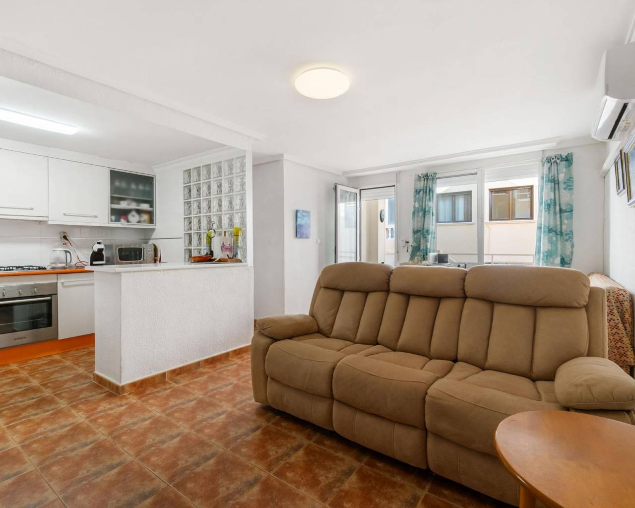Apartamento en La Mata, en una ubicación perfecta, situado solo a 300m de la playa de la Mata. La vivienda en primera planta, con la superficie de 68m2, se distribuye en la siguiente manera: salón-comedor con acceso a la terraza de unos 8m2, amplia cocina americana totalmente equipada, tres dormitorios y un baño completo y amplio, con la bañera. Aire acondicionado instalado en el salón. Se vende amueblado. Solárium comunitario con vistas al mar. El edificio sin ascensor. Muy céntrico, con todos los servicios a pie.