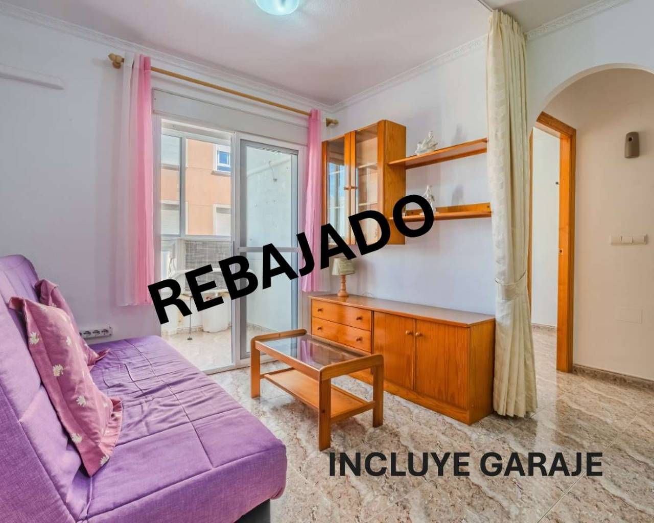 Se vende apartamento con garaje incluido, totalmente amueblado para entrar a vivir, en 3º planta, con terraza acristalada, compuesto de 2 dormitorios con armarios empotrados, 1 baño completo, salón-comedor, cocina independiente totalmente equipada, dispone de aire acondicionado. Orientación Norte, el edificio tiene acceso para minusválidos. Se encuentra a tan solo 350 metros de la Playa del cura, en la calle Caballero de Rodas 122, Torrevieja (Alicante), cerca de todos los servicios.