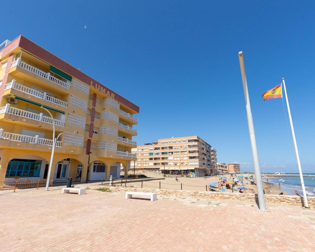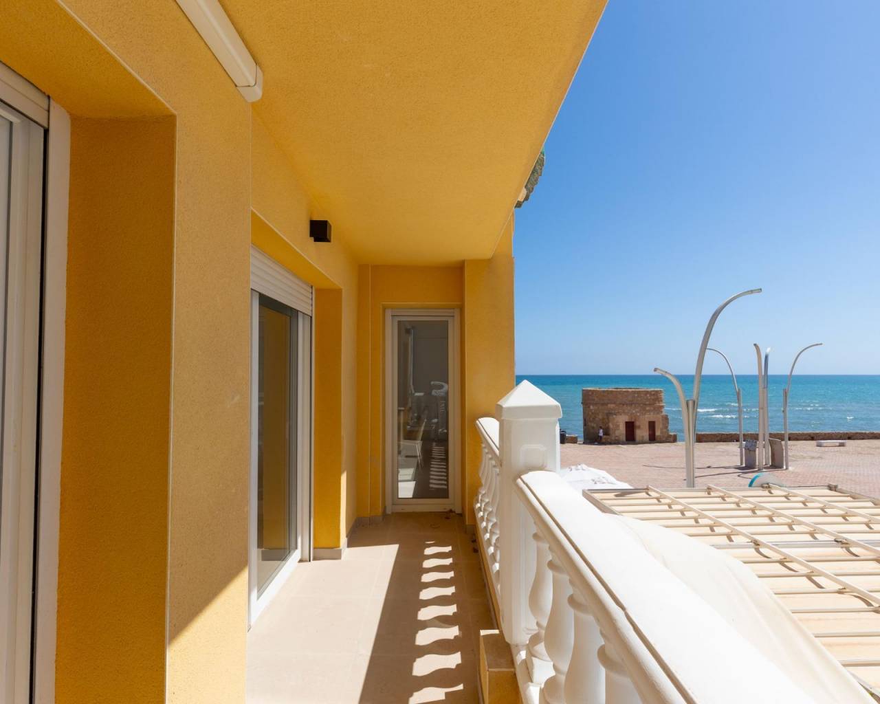 Vivir en primera línea es maravilloso, hasta que te acuerdas del ruido. Aquí no.~Esta vivienda en La Mata ha sido rehabilitada de forma integral, cuidando estructura interior, instalaciones y acabados, con una mejora real de eficiencia energética y un trabajo específico de insonorización pensado para aislar el sonido de los locales de restauración de la zona.~~Con orientación sur y vistas directas al Mediterráneo, la vivienda ofrece 3 dormitorios dobles, dormitorio principal con baño en suite, 2 baños completos y un aseo adicional. La terraza frente al mar es el corazón de la casa, y el patio privado aporta un segundo espacio exterior perfecto para relax, lectura o zona chill.~~Se entrega lista para entrar a vivir, con mobiliario y electrodomésticos nuevos incluidos. Una propiedad pensada para quien quiere ubicación top sin renunciar a confort, silencio y calidad.~~Garaje opcional disponible.