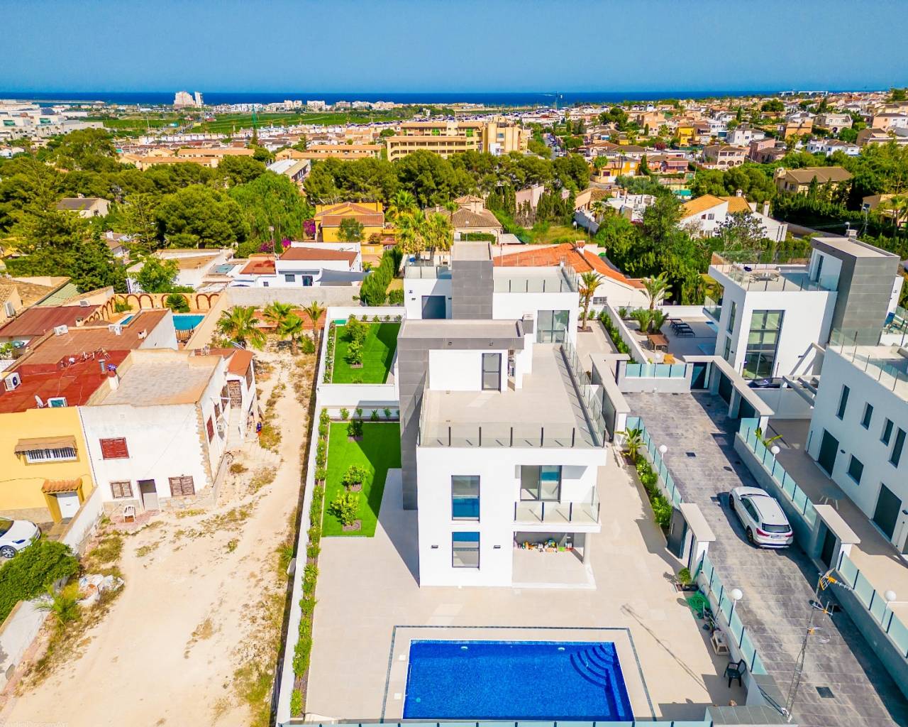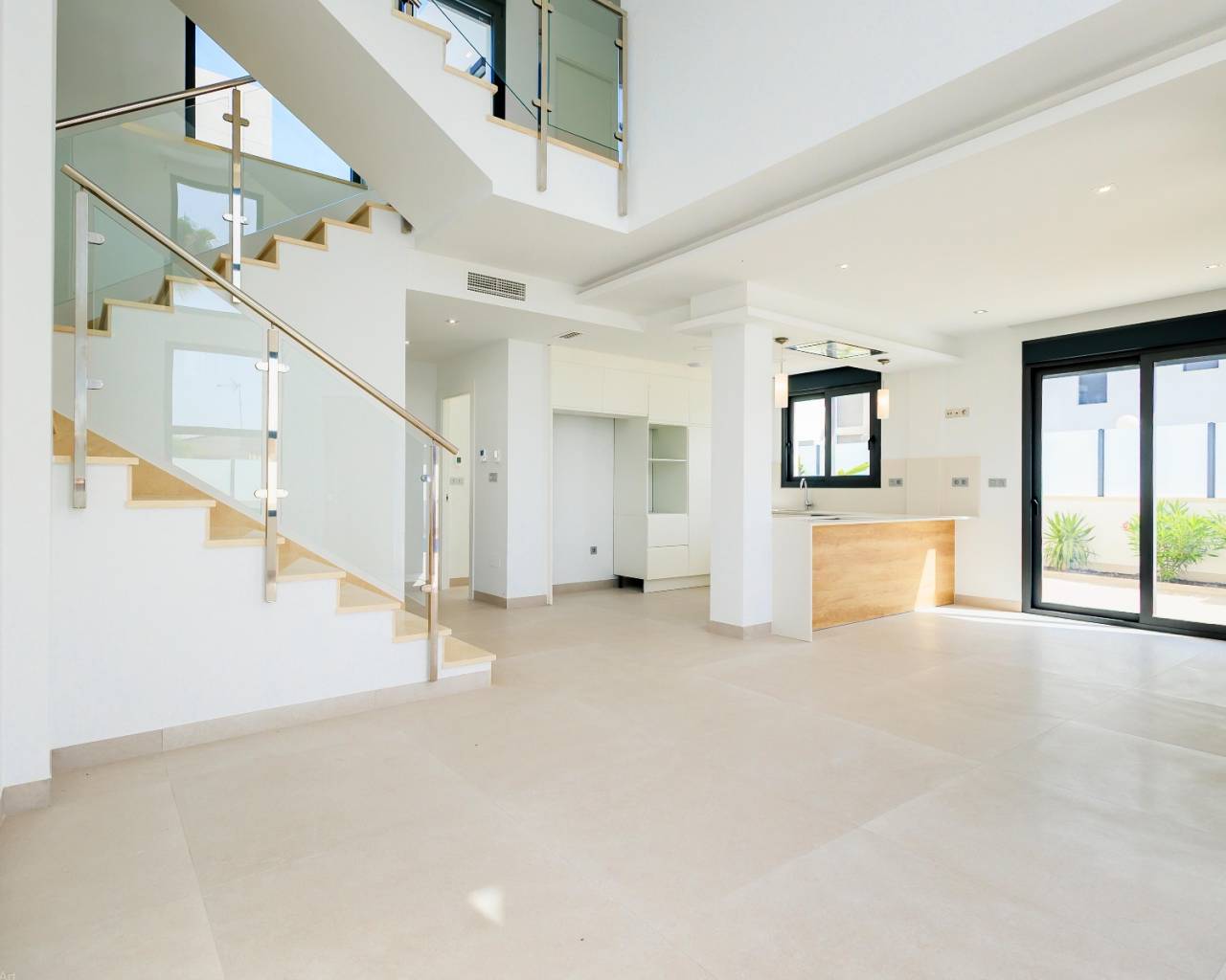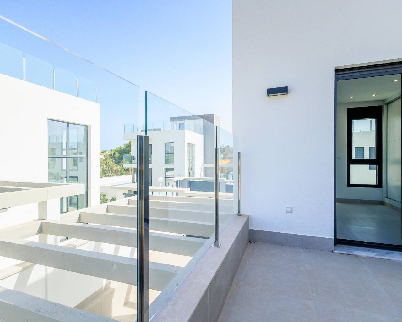 Villa de nueva construcción de estilo moderno con piscina privada en venta en Los Balcones ¡¡¡LLAVE EN LISTA!!! Ubicada en una zona alta de la prestigiosa urbanización Los Balcones, en Torrevieja, esta propiedad disfruta de increíbles vistas panorámicas a la famosa laguna rosa y al mar. Villa de 2 plantas con una superficie construida de aprox. 140 m2 en parcela de 450 m2. En la planta baja encontramos un gran salón-comedor de fantástico diseño y techos altos con grandes ventanales, lo que aporta gran luminosidad y amplitud, moderna cocina americana, 1 amplio dormitorio con armario empotrado, 1 baño y lavadero. . La primera planta se distribuye en 2 habitaciones dobles, 2 baños y terraza. Esta preciosa casa ha sido terminada recientemente, con los mejores materiales y calidades de construcción, con un diseño moderno que aumenta la luminosidad en todas las estancias. Está equipado con aire acondicionado, luces empotrables, LED, persianas motorizadas, preinstalación de cortinas eléctricas,... Fantástica piscina privada, zonas verdes y plaza de aparcamiento con pérgola en la parcela con acceso directo desde la calle. Ubicación privilegiada: Los Balcones - Torrevieja. Esta villa independiente se encuentra en una de las mejores zonas de la Costa Blanca, Los Balcones, situada entre Torrevieja y Orihuela-Costa. A un paso de Torrevieja y al mismo tiempo en una zona residencial tranquila. Cerca se encuentran las salinas, Mercadona, colegio, club de tenis, un gran parque con zonas verdes, parques infantiles, canchas de baloncesto y campo de fútbol, parque para perros, restaurantes y polideportivos. A 1 km del hospital público de Torrevieja, 2,5 km de playas como la playa de Punta Prima, 9 minutos en coche del centro comercial La Zenia Boulevard, 5 minutos en coche del campo de golf de Villamartín, 12 km del club de golf y de campo Las Colinas. A tan sólo 5 minutos en coche del centro de Torrevieja, eso supone tener el puerto deportivo, el paseo marítimo, el teatro, tiendas, restaurantes, centros deportivos, bancos y todo tipo de servicios y opciones de ocio que una ciudad tiene para ofrecer. A 50 km del Aeropuerto Internacional de Alicante - El Altet. Más información: + 34 635 130 717 www.espainestate.com