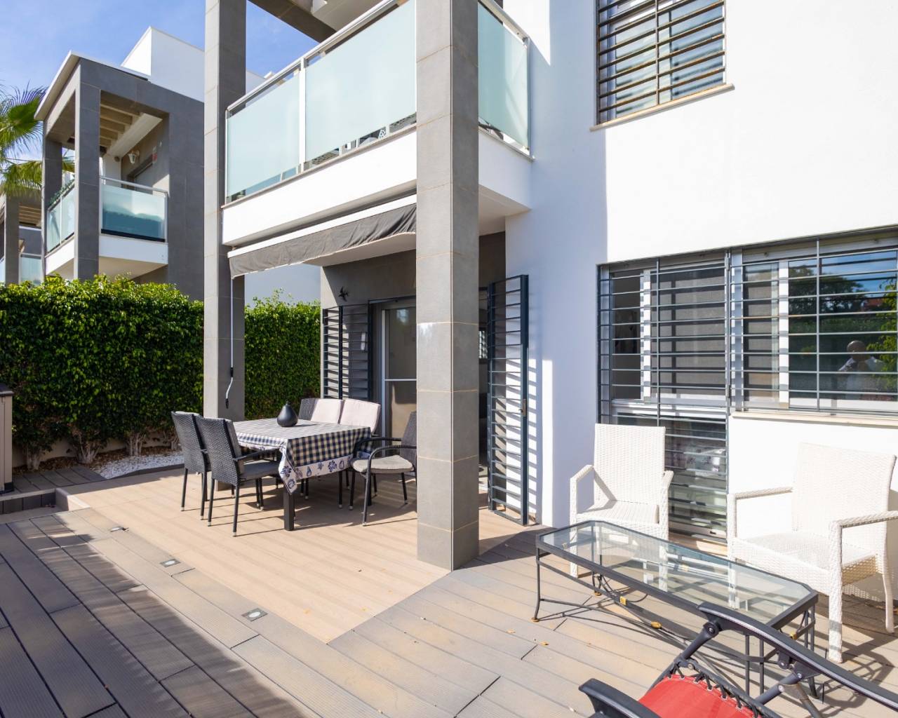¡PRECIO REDUCIDO! SPAIN ESTATE ofrece en exclusiva este moderno apartamento en planta baja con jardín , situado en un complejo residencial cerrado con piscina comunitaria y plaza de aparcamiento exterior privada , en Punta Prima , una de las zonas más cotizadas del sur de la Costa Blanca . La propiedad cuenta con 67 m² de superficie habitable y un jardín privado de 52 m² , perfecto para disfrutar del estilo de vida mediterráneo durante todo el año. Características principales: Superficie construida: 67 m² Jardín privado: 52 m² Urbanización cerrada con piscina comunitaria. Plaza de aparcamiento privada al aire libre Distribución: luminoso salón-comedor con moderna cocina de planta abierta. Dormitorios: 2 Baños: 2 (uno en suite) Orientación: sureste Vistas: agradables vistas a un hermoso parque. Este apartamento de estilo contemporáneo ofrece una distribución luminosa, funcional y elegante. La sala de estar de planta abierta crea un ambiente amplio y acogedor. El dormitorio principal cuenta con baño privado, mientras que el segundo dormitorio es ideal para invitados o como despacho. Ubicación privilegiada Situado a pocos pasos del centro comercial Punta Marina , con supermercados, restaurantes, cafeterías, farmacias y todo tipo de servicios. Su ubicación es ideal , entre Torrevieja y Orihuela Costa , en una zona tranquila pero bien comunicada. Distancias: A 10 minutos a pie de la playa de Punta Prima. A 5 minutos en coche de Playa Flamenca , La Zenia y Cala Piteras. A 8 minutos del centro comercial Zenia Boulevard. 10-15 minutos a los campos de golf de Villamartín , Las Ramblas y Campoamor Ideal para vivir o como inversión. Gracias a su orientación sureste , el apartamento disfruta de luz solar durante la mayor parte del día. El jardín privado es perfecto para comer al aire libre o relajarse. Este moderno apartamento en planta baja es una excelente inversión inmobiliaria en la Costa Blanca , ideal como residencia permanente , casa de vacaciones o propiedad para alquilar .