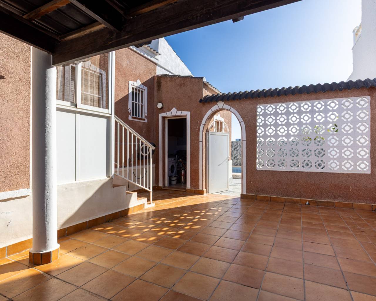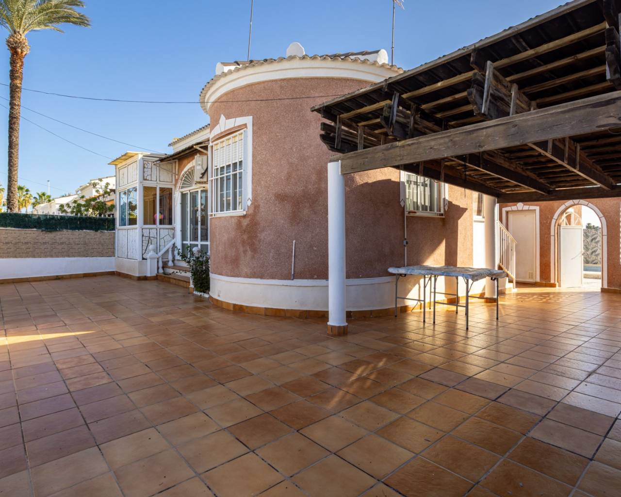 Descubra esta encantadora villa independiente, ubicada en una tranquila y agradable zona residencial de Torrevieja, perfecta para quienes buscan privacidad, comodidad y una alta calidad de vida cerca del mar. La propiedad se encuentra en una espaciosa parcela de 300 m² y ofrece amplios espacios exteriores para disfrutar del clima mediterráneo durante todo el año. La propiedad cuenta con 60 m² de espacio habitable, con una distribución práctica y funcional. En el interior, encontrará tres luminosos dormitorios, dos de ellos con armarios empotrados, y dos baños completos, ideales para una familia o para recibir invitados. La cocina independiente está totalmente equipada con electrodomésticos y cuenta con un lavadero junto a la cocina para mayor comodidad y espacio de almacenamiento. La villa se encuentra en buen estado y se vende amueblada, lista para entrar a vivir. El salón está equipado con aire acondicionado, lo que garantiza comodidad en cualquier época del año. En el exterior, la propiedad cuenta con una hermosa y práctica zona de recreo con piscina privada, perfecta para relajarse y disfrutar del tiempo con familiares y amigos. También incluye una terraza totalmente alicatada, ideal para comer al aire libre, un trastero/lavadero y una plaza de aparcamiento privada. Su orientación oeste garantiza hermosas puestas de sol y abundante luz natural por la tarde. Ubicación y distancias:Playa: 15 minutosZonas de ocio, restaurantes y tiendas: 5 minutosCampo de golf: 10 minutosAeropuerto: 40 minutos Una propiedad ideal como residencia permanente, casa de vacaciones o inversión, que combina privacidad, espacios al aire libre y una ubicación privilegiada en la Costa Blanca.