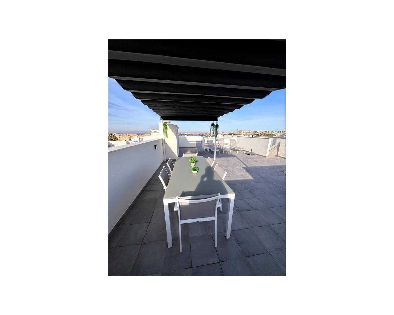 Precioso ático moderno totalmente amueblado en venta con gran terraza in la azotea en uitzicht op los Lagos Salados. Ideaal als omkering voor een tweede residentie/alquiler vakantie. Dit is erg waardevol met onze slaapzalen, een kamer met een eigen badkamer en een andere met een onafhankelijke badkamer. De calorieën worden verbrand door een stralende werking. De keuken is volledig uitgerust met een combinatie van hoorn, keramiek, koelkast, congelador, lavadora en lavavajillas. De airconditioning en de calefacción zijn gecontroleerd door het scheiden van uw dagelijkse gewoonte. De salon, met een overvloed aan natuur, biedt uitzicht op een terras met uitzicht op de zwembaden, een kinderlijk kind. U beschikt over elektrische perslucht, interfono, veiligheidsingang, airconditioning, ventilatie en alarm. Este ático cuenta con una amplia terraza en la azotea con toldo, barbacoa, salón, ducha exterior, trastero, tumbonas y mesa de comedor. En resumen, todo lo necesario para disfrutar de las hermosas vistas desde el salón con un delicioso cóctel, unas deliciosas tapas en la gran mesa de comedor bajo la pérgola o desde las tumbonas bajo la sombrilla. El ático dispone de plaza de parking privada. La residencia es un complejo cerrado con 40 apartamentos y es un edificio de poca altura ubicado en una colina en una hermosa zona residencial. Las numerosas y hermosas playas están a menos de 10 minutos en coche. Por supuesto, también hay tiendas, restaurantes, bares y supermercados locales a poca distancia a pie de su casa. Se tarda poco más de cinco minutos en coche en llegar al centro comercial La Zenia Boulevard, que ofrece 80.000 m² de tiendas, supermercados, restaurantes y terrazas. Aquí no se aburrirá. Esta propiedad se encuentra a cinco minutos del campo de golf de Villamartín y a menos de 5 km encontrará otros dos desafiantes campos de golf de 18 hoyos: Real Club de Golf de Campoamor y Las Ramblas Golf. ¡Perfecto para propiedad de inversión y inmediatamente alquilable!