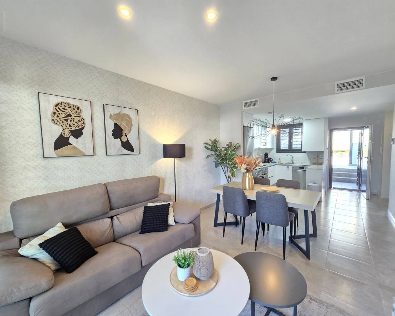 Descubra este precioso y moderno apartamento de solo 2 años de antigüedad, situado en una de las urbanizaciones más bonitas de Villamartín, Orihuela Costa. Este espacioso apartamento en planta baja ofrece el equilibrio perfecto entre comodidad, estilo y lujo. La vivienda cuenta con 2 dormitorios y 2 modernos cuartos de baño, uno de ellos en suite. La cocina abierta está totalmente equipada y se integra a la perfección en el luminoso salón, con acceso directo a la amplia terraza. Desde aquí se disfruta de acceso directo al bonito jardín comunitario, con piscina y jacuzzi, ideal para relajarse y disfrutar del clima mediterráneo. La urbanización es moderna, está muy bien cuidada y rodeada de mucha vegetación y plantas, lo que crea un ambiente tranquilo y agradable. Además, el apartamento dispone de una plaza de garaje subterránea, lo que ofrece mayor comodidad y seguridad. Situado en una ubicación privilegiada en Villamartín, a poca distancia de tiendas, restaurantes, campos de golf y las playas de Orihuela Costa, este apartamento es ideal como residencia permanente, vivienda vacacional o inversión. ¡No lo dude y reserve una visita rápidamente! Suma: Por asignar. Gastos de comunidad: 1484 euros/año.