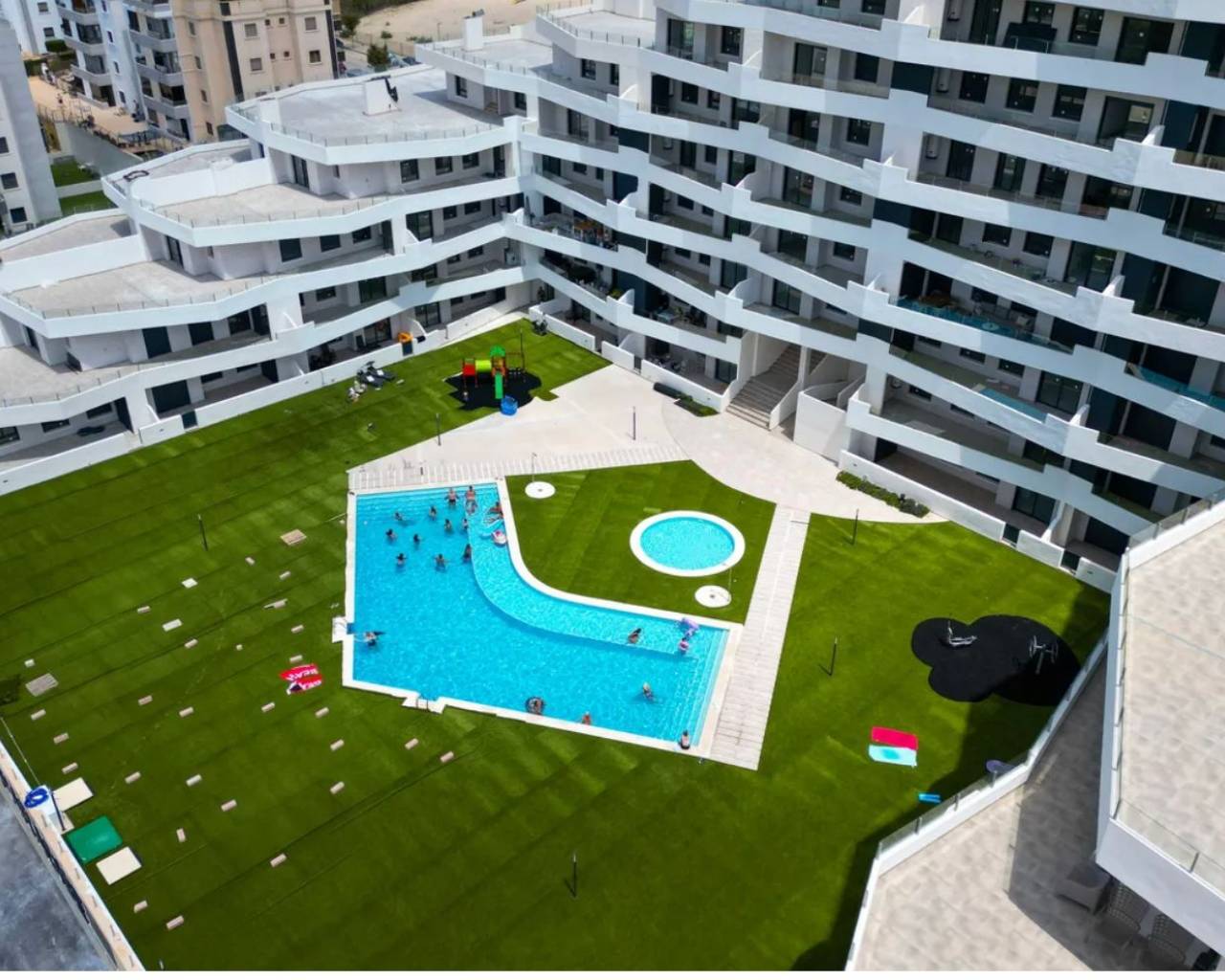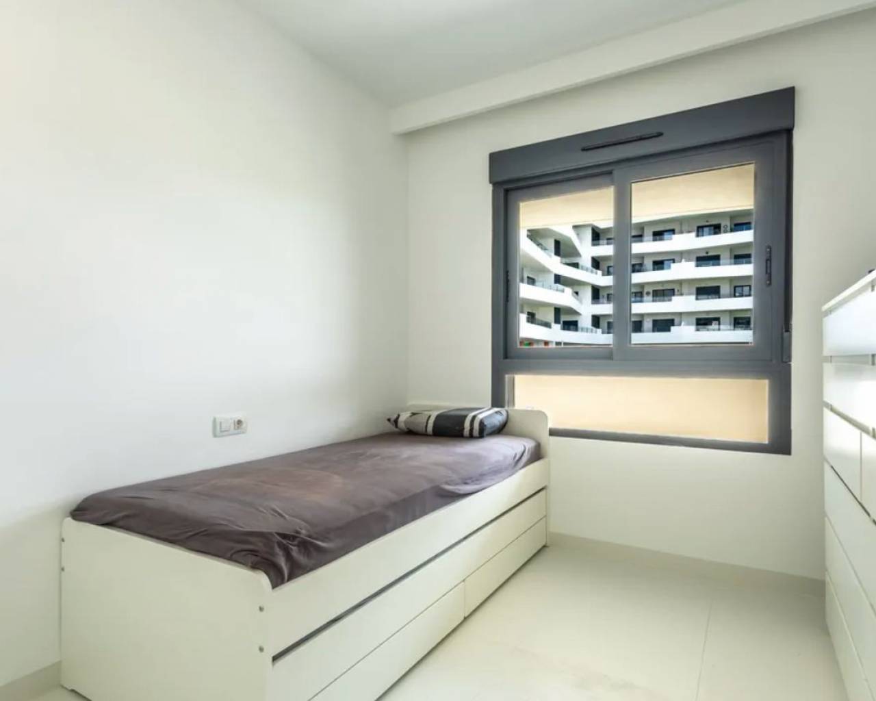 Un Refugio Moderno en San Miguel de Salinas Descubra este encantador bungalow ubicado en la soleada San Miguel de Salinas, una joya de la provincia de Alicante que combina la tranquilidad del entorno residencial con la comodidad de la vida moderna. Este hogar es perfecto para aquellos que buscan un estilo de vida relajado, rodeado de naturaleza y con fácil acceso a las comodidades urbanas. Diseño y Distribución Con un diseño moderno y funcional, esta propiedad cuenta con dos amplias habitaciones y dos baños, ofreciendo un espacio ideal para parejas, familias pequeñas o como residencia vacacional. La distribución abierta maximiza la luminosidad y el flujo entre los espacios, creando una atmósfera acogedora y confortable. Cocina Americana y Comodidades La cocina americana integrada es un punto focal del hogar, perfecta para disfrutar de momentos culinarios y sociales, mientras que el salón ofrece un acceso directo a una terraza de 33 m², ideal para relajarse al aire libre o para recibir visitas. Esta terraza también se convierte en el lugar perfecto para disfrutar de las suaves brisas del sureste, permitiendo disfrutar de maravillosas vistas y de la calidez del sol. Entre las comodidades adicionales se incluyen el aire acondicionado y la calefacción por split, asegurando que su hogar se mantenga acogedor durante todo el año. Este bungalow también cuenta con ventanas de doble acristalamiento y una puerta de seguridad, brindando tranquilidad y eficiencia en el consumo energético. Áreas Comunes y Estilo de Vida Los residentes tienen acceso a una piscina comunitaria, perfecta para disfrutar los días soleados y socializar con los vecinos. El bungalow está situado en una comunidad cerrada, lo que garantiza privacidad y seguridad, facilitando un estilo de vida relajado y despreocupado. San Miguel de Salinas es conocida por su entorno natural y tranquilo, así como por contar con buenas comunicaciones que facilitan el acceso a otros puntos de interés en la Costa Blanca. Aquí, podrá disfrutar de una mezcla de cultura local, actividades al aire libre y la proximidad a las impresionantes playas que caracterizan la región. Un Espacio Listo para Habitar Este bungalow se encuentra amueblado y listo para mudarse, lo que le permitirá disfrutar de su nuevo hogar desde el primer día. Con un ambiente luminoso y cálido que invita a relajarse, este espacio es ideal para aquellos que buscan un refugio acogedor en un entorno privilegiado. No pierda la oportunidad de vivir en este encantador bungalow en San Miguel de Salinas, donde cada rincón está diseñado para su confort y bienestar. ¡Contáctenos hoy para más detalles y descubra su próxima aventura en la costa!