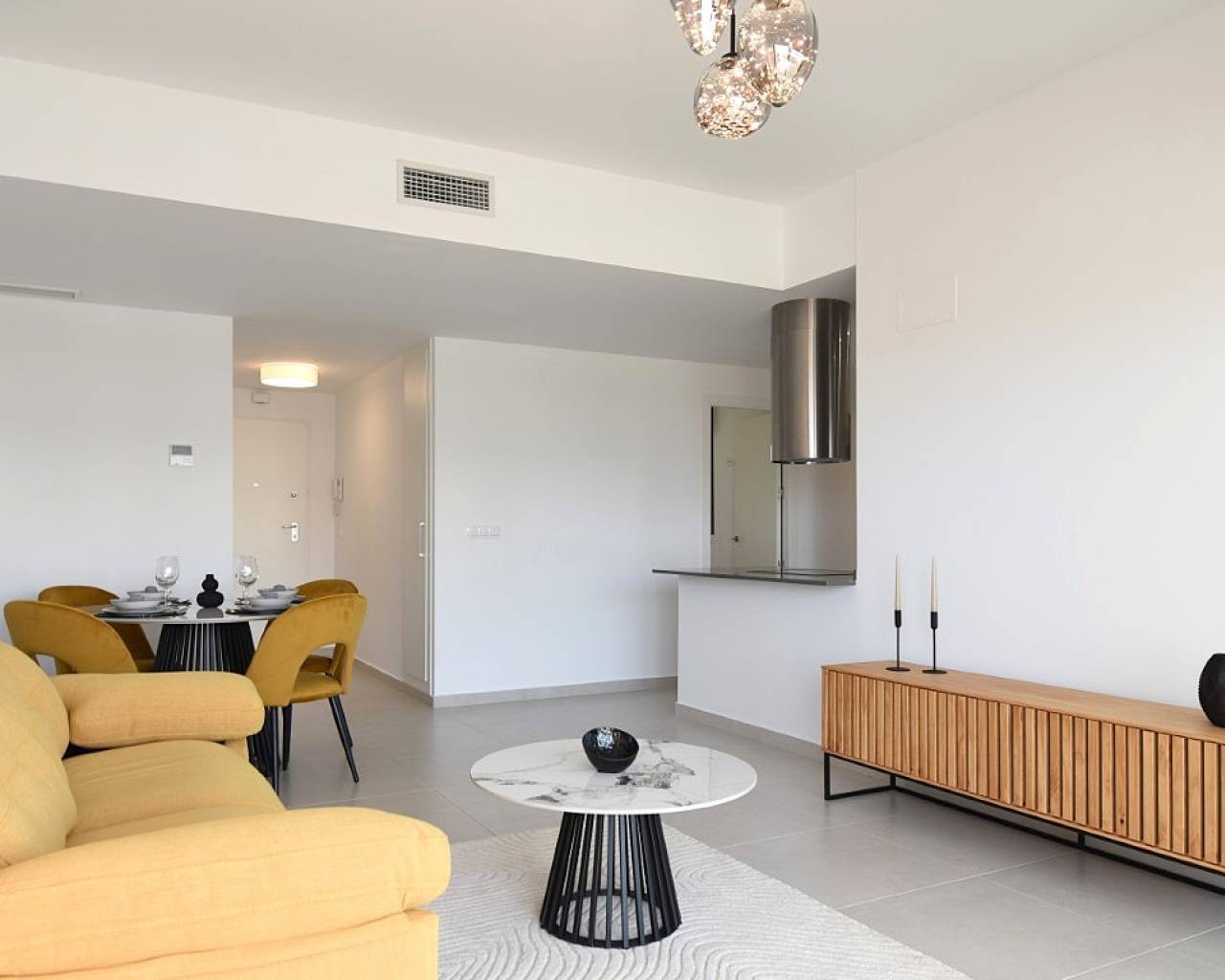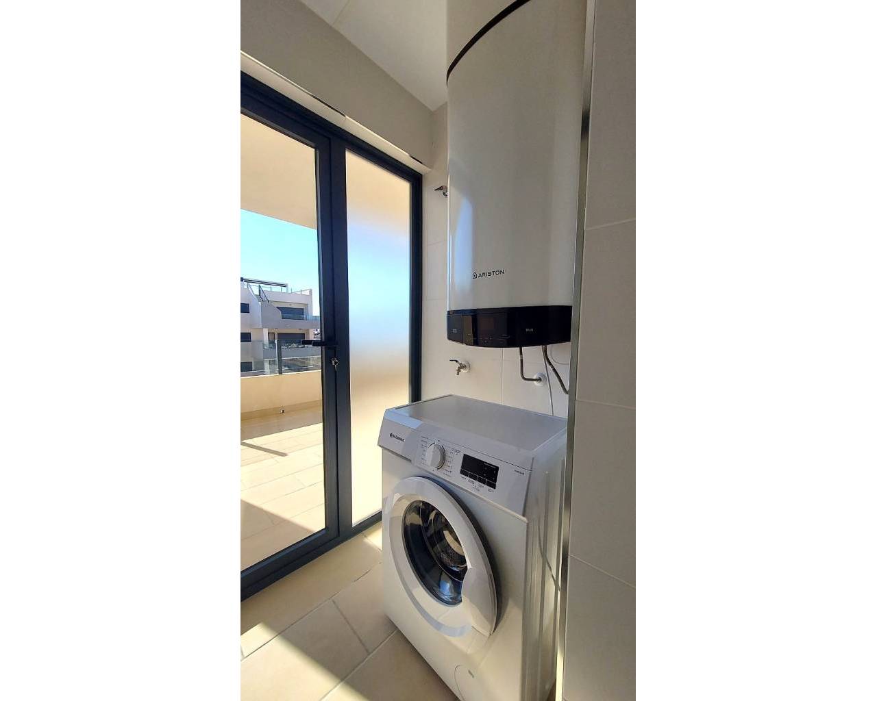 Descripción del Apartamento Descubra la comodidad y el estilo en este moderno apartamento situado en la soleada San Miguel de Salinas, una joya en la provincia de Alicante. Este espacio, diseñado para ofrecer bienestar y funcionalidad, cuenta con 73.22 m² construidos, incluidos dos acogedores dormitorios y dos baños, perfectos para familias o para quienes buscan un refugio junto al mar. Espacios Interiores Al entrar, se encontrará con una distribución optimizada que maximiza cada rincón. La cocina americana, elegante y moderna, se integra de manera fluida con el salón, creando un ambiente ideal para recibir familiares y amigos. Los grandes ventanales permiten que la luz natural inunde el espacio, realzando la sensación de amplitud y calidez. Las habitaciones son un verdadero remanso de paz, equipadas con armarios empotrados y ventanales que ofrecen vistas al exterior. Los baños, contemporáneos y funcionales, proporcionan un toque de elegancia, asegurando que cada momento de su rutina diaria sea un placer. Comodidades y Equipamiento Este apartamento no solo se destaca por su diseño, sino que también ofrece una serie de características que aseguran comodidad y seguridad. El aire acondicionado por conductos y la calefacción, también por conductos, garantizan un clima agradable durante todo el año. La propiedad cuenta con una puerta de seguridad y doble acristalamiento, lo que añade una capa extra de tranquilidad. Además, incluye un garaje, plaza de aparcamiento, un trastero y, el atractivo extra de una terraza de 20.75 m², perfecta para disfrutar de largas veladas al aire libre, aperitivos bajo el sol y momentos de relajación. Áreas Comunes y Ubicación Los residentes de este apartamento tienen acceso a una encantadora piscina comunitaria, ideal para refrescarse durante los cálidos días de verano. La orientación sur del apartamento asegura que podrá disfrutar del sol durante gran parte del día. Ubicado en un área bien comunicada de San Miguel de Salinas, este hogar cercano a todos los servicios, permitirá un estilo de vida cómodo y práctico, con supermercados, restaurantes y centros de ocio a solo unos minutos. Su cercanía a las hermosas playas de la Costa Blanca añade un atractivo adicional, brindando un equilibrio perfecto entre la vida urbana y la serenidad costera. En suma, este apartamento es una opción ideal para aquellos que buscan un hogar donde la modernidad y la comodidad se fusionen en un entorno vibrante y acogedor. No pierda la oportunidad de vivir en este maravilloso espacio que está listo para ser disfrutado.