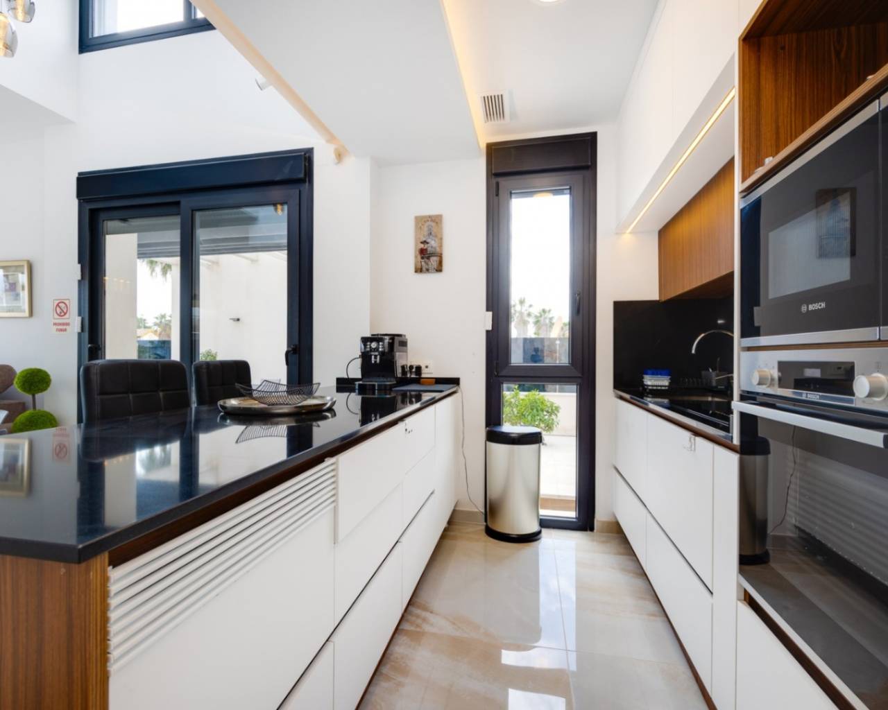 Encanto y Modernidad en Lomas de Cabo Roig Descubra una extraordinaria villa en el prestigioso barrio de Lomas de Cabo Roig, en Orihuela, Alicante. Esta propiedad representa la fusión perfecta entre el diseño moderno y la comodidad cotidiana, ofreciendo un estilo de vida excepcional en una de las zonas más solicitadas de la Costa Blanca. Distribución Espaciosa La villa cuenta con tres habitaciones que proporcionan un amplio espacio para el descanso y la intimidad familiar. Con cuatro baños, cada uno de ellos diseñado con atención al detalle, asegura comodidad y privacidad para todos los residentes. Este diseño inteligente maximiza los espacios útiles de la propiedad, que se extiende a 193 m² útiles. Características Modernas Equipado con aire acondicionado y calefacción por conductos, este hogar se mantiene acogedor en cualquier estación del año. La cocina americana, abierta y totalmente equipada, fomenta la convivencia y la interacción familiar, creando el ambiente ideal para momentos compartidos. Exteriores y Ocio El encantador jardín que rodea la villa invita a disfrutar de la luz del sol y a relajarse. La propiedad está diseñada para proporcionar un estilo de vida que incorpora el aire libre, con una piscina privada perfecta para refrescarse durante los cálidos días de verano. La orientación sur garantiza que su hogar reciba abundante luz natural durante todo el día, creando un ambiente luminoso y alegre. Comodidades Adicionales Esta villa ofrece numerosas ventajas, incluyendo un aparcamiento privado, un trastero y un sistema de doble acristalamiento para mayor confort y seguridad. La puerta de seguridad y el terreno cerrado brindan tranquilidad adicional, asegurando que su familia se sienta protegida en su nuevo hogar. Ubicación Ideal Lomas de Cabo Roig no solo se destaca por sus residencias de calidad, sino también por su excelente conexión con otras áreas y servicios. Con una variedad de comercios, restaurantes y actividades recreativas a la vuelta de la esquina, esta ubicación es ideal para quienes buscan un estilo de vida vibrante en la costa. Esta villa en Orihuela se presenta como una oportunidad única para los que desean combinar confort, estilo y practicidad en una de las zonas más atractivas de la Costa Blanca. No pierda la oportunidad de transformar esta hermosa propiedad en su nuevo hogar.