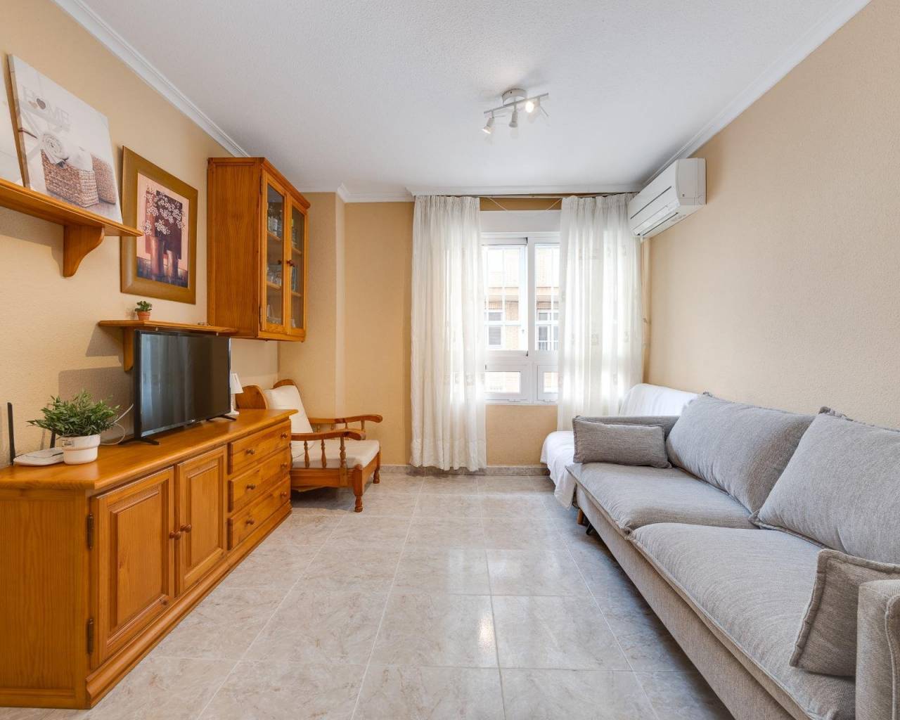 Descripción del Apartamento Ubicado en el vibrante centro de Torrevieja, este encantador apartamento combina comodidad y conveniencia en un solo paquete. Con una superficie construida de 60 m² y un área útil de 55 m², este hogar ofrece un espacio acogedor ideal para disfrutar de la vida mediterránea. Distribución y Confort El apartamento cuenta con dos acogedoras habitaciones, perfectas para relajarse después de un día explorando las maravillas de la Costa Blanca. El moderno baño está diseñado para aportar funcionalidad y confort, adaptándose a las necesidades del día a día. Comodidades y Equipamiento Equipado con aire acondicionado y calefacción por sistema de split, el apartamento asegura un ambiente agradable durante todo el año, sea cual sea la estación. Cada rincón de esta propiedad ha sido pensado para tu máximo bienestar, destacando ventilación natural y abundante luz exterior gracias a su orientación sur. La cocina, aunque no especificada en el detalle, brinda la oportunidad de personalizar el espacio a tu gusto, creando un lugar ideal para las reuniones. Entre las características adicionales, tendrás acceso a una terraza cubierta que permitirá disfrutar del aire libre en un entorno privado y tranquilo. Servicios y Accesibilidad El edificio se beneficia de una excelente conectividad, garantizando un fácil acceso a servicios y transportes públicos, lo que lo convierte en una opción perfecta tanto para vivir como para invertir. La propiedad también cuenta con servicios adicionales, como ascensor, sistema de seguridad en la puerta y doble acristalamiento, que añaden una capa extra de confort y seguridad. Una Oportunidad Única Este apartamento en el corazón de Torrevieja es un refugio que combina la comodidad moderna con el encanto de la vida costera. Aprovecha esta oportunidad para vivir en un lugar donde cada día puedes disfrutar de la calidez del sol y la proximidad a las encantadoras playas y servicios de la ciudad.