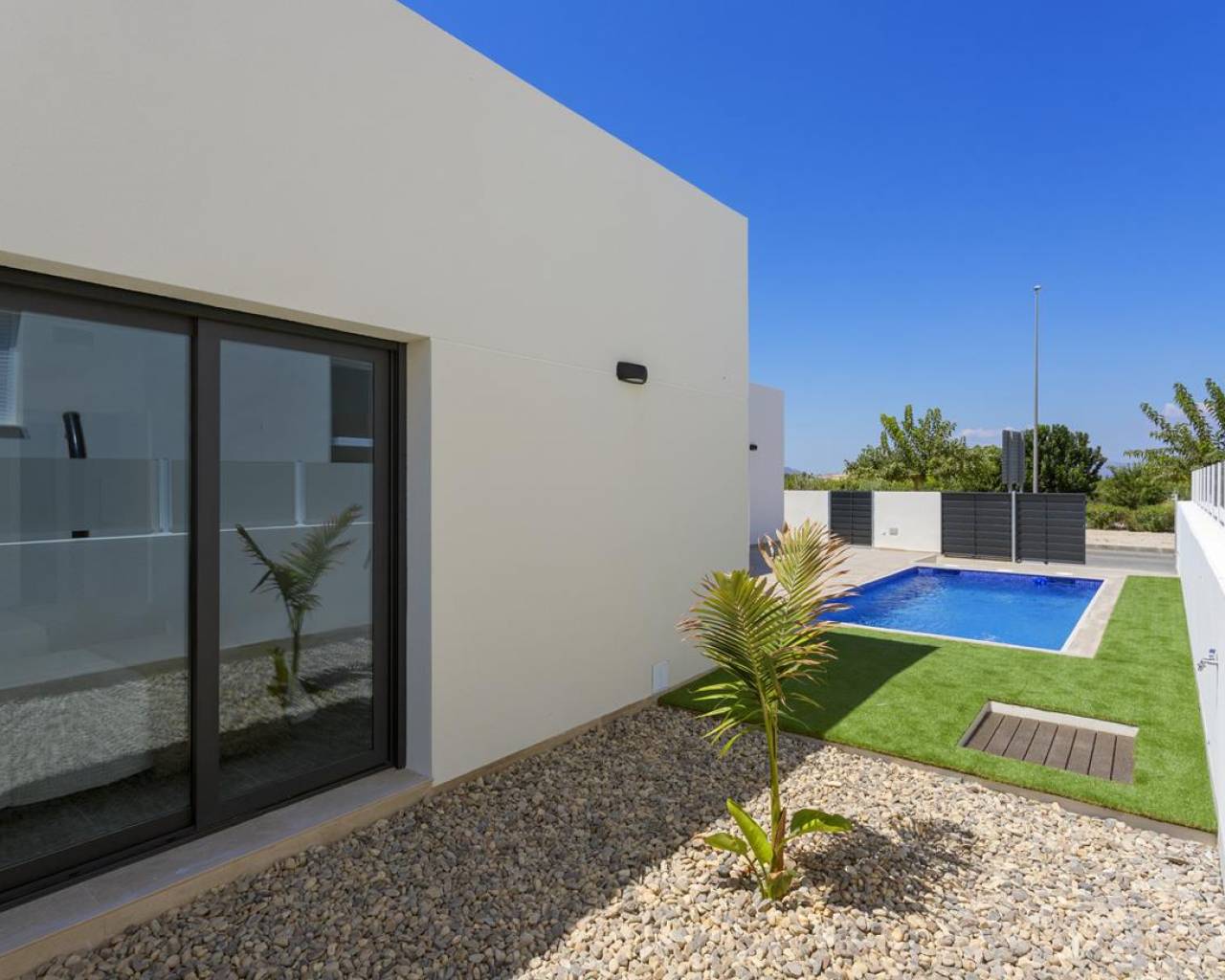 Maravillosa Villa Semi Adosada en venta en Daya Nueva, municipio de la Comunidad Valenciana situado en un entorno natural y cerca de otras grandes ciudades como Almoradi, San Fulgencio, Rojales, etc. La vivienda se encuentra en un entorno natural y tranquilo alejado del trafico, a tan solo 600m del centro cívico de la Daya con todos los servicios básicos que una ciudad puede ofrecer, tales como tiendas, supermercados, bares y restaurantes. A 14km encontrarás las Maravillosas playas de Guardamar del Segura. Villa de una sola planta situada en una parcela de 249.00m² con bonitas zonas verdes ajardinadas, plaza de aparcamiento descubierta y una gran piscina privada. Interior de la vivienda con 105.98m que se distribuyen en un amplio salón comedor unido a una bonita cocina americana con barra desayunadora en península, tres dormitorios dobles, uno de ellos en suite con baño y vestidor incorporados, un baño independiente y un amplio lavadero.