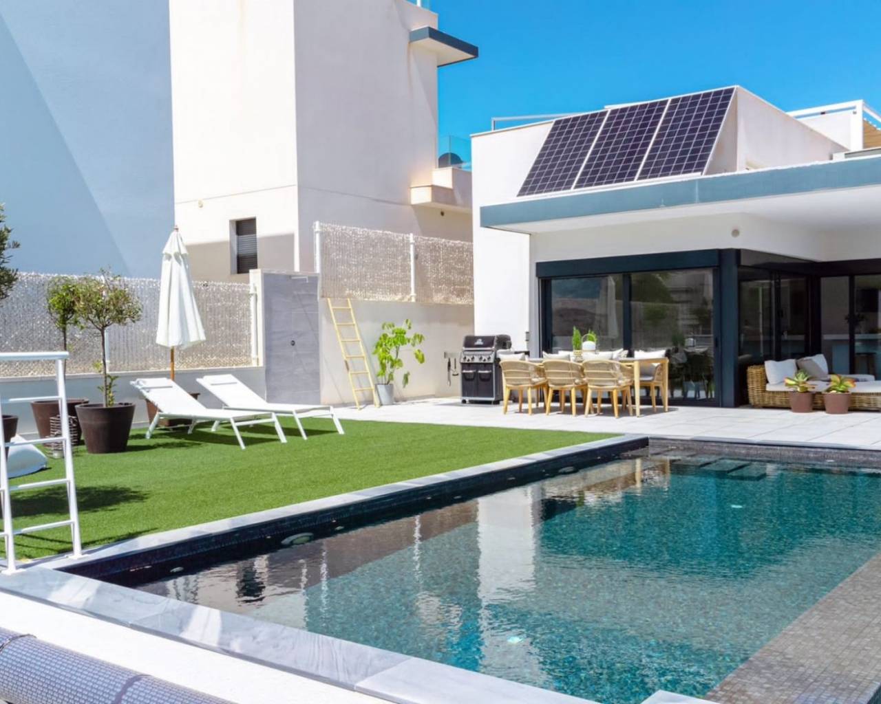 Maravillosa Villa de Lujo en venta en San Miguel de Salinas. A 6km de las playas más bonitas de la Costa Blanca, con todos los servicios básicos que una ciudad puede ofrecer a menos de 10 minutos andando, farmacias, supermercados, tiendas, bares, restaurantes, etc. Lugar ideal para disfrutar de tus vacaciones o vivir en el durante todo el año, puesto que tienes a tu disposición un gran abanico de actividades: Los mejores campos de Golf, (Villamartín Golf), paseos a caballo, todos los deportes acuáticos que puedas imaginar, centros comerciales llenos de diversión y entretenimiento, gran variedad de bares y restaurantes donde podrás disfrutar de la mejor experiencia gastronómica mediterránea. Vivienda de 274m² distribuidos en dos plantas, en la primera planta dos dormitorios ,uno de ellos en suite con baño y un baño para invitados, así como un vestidor, salón comedor unido a una espectacular cocina americana con barra desayunadora .La villa está equipada con un amplio garaje con espacio para 2 coches, dos cocinas totalmente equipadas. El sótano tiene su propia entrada independiente, así como una distribución versátil, con tres dormitorios, dos de ellos en suite con baño , una oficina y lavadero, así como acceso directo al garaje.