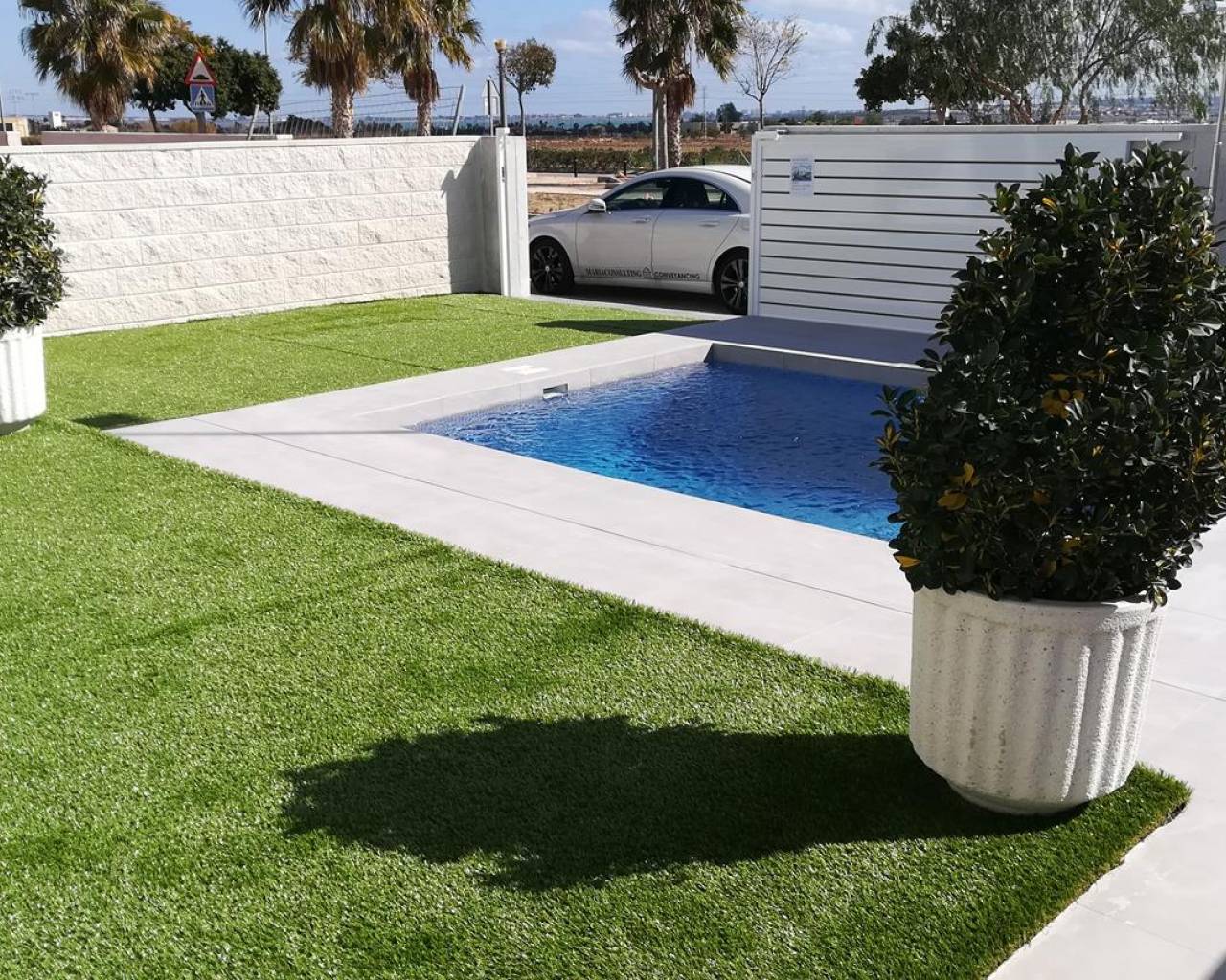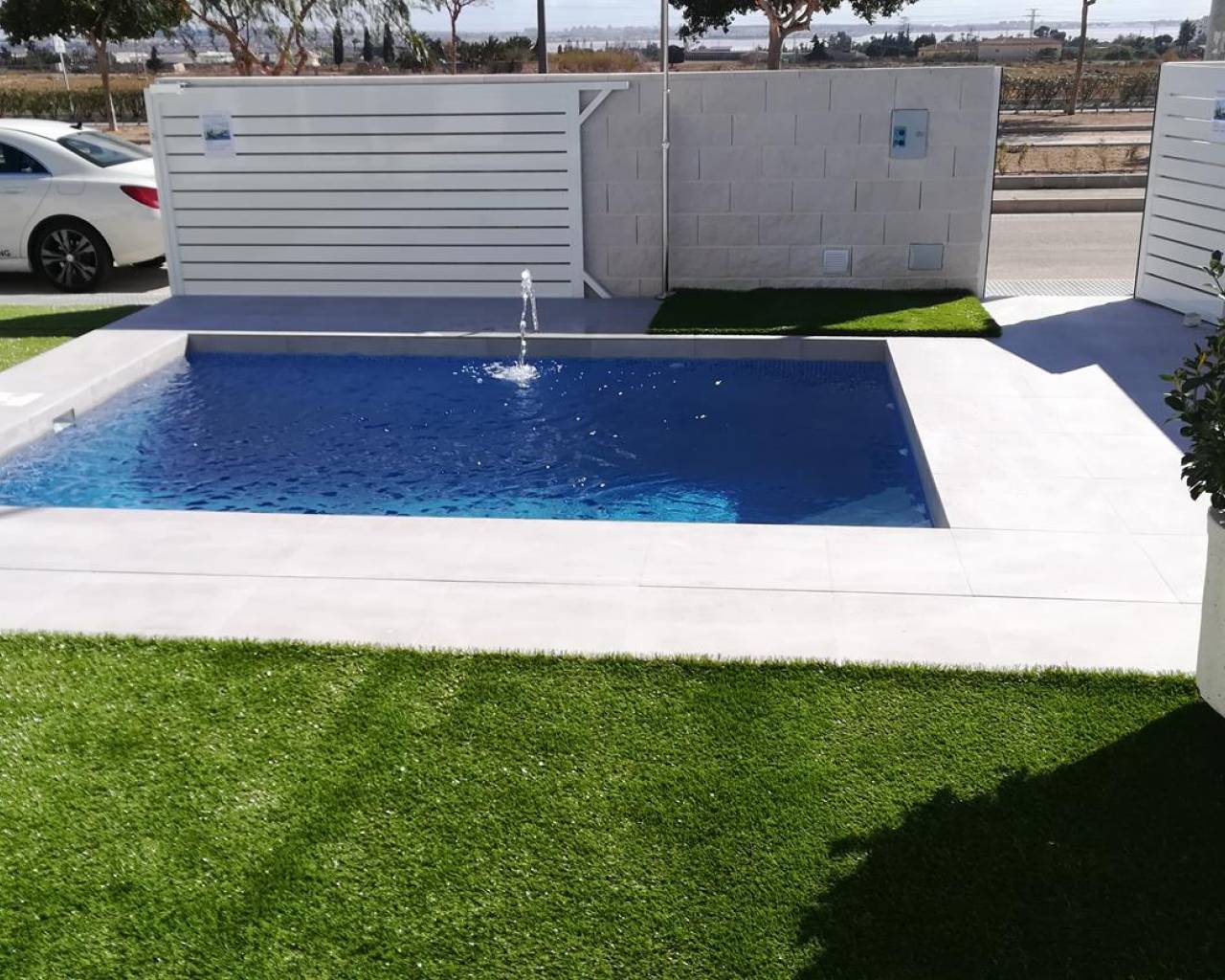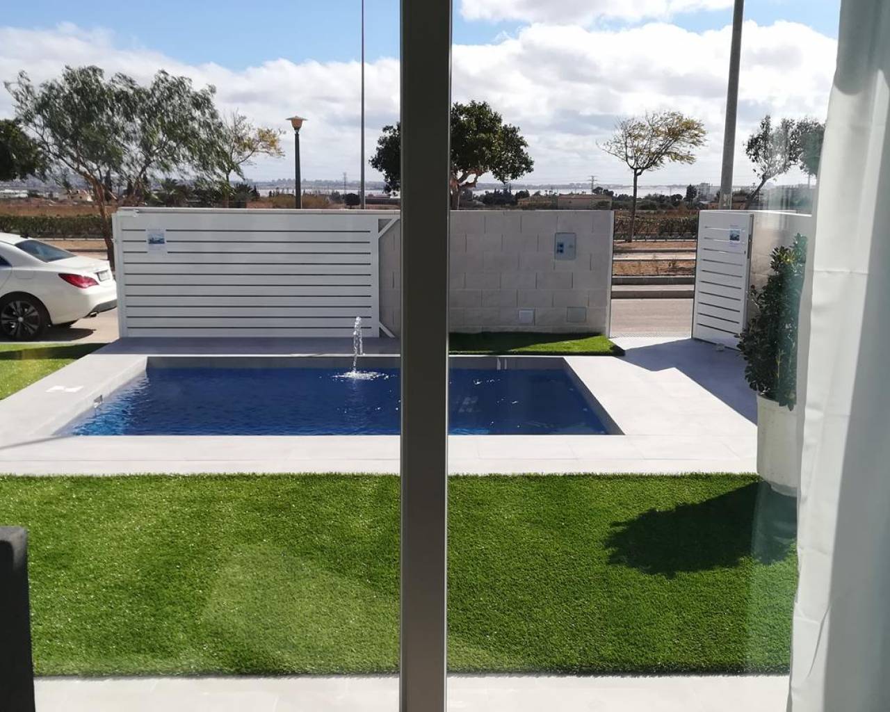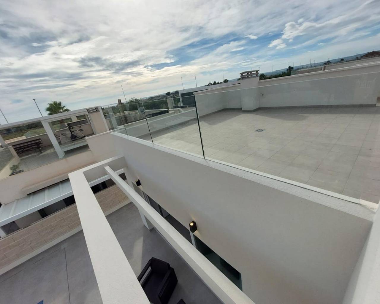 Fantástica Villa Semi Adosada en venta en La Herrada, Los Montesinos, en una zona residencial muy tranquila sin prescindir de los servicios básicos que una ciudad puede ofrecer. A menos de 200m hay un supermercado grande, farmacias, etc. A menos de 1km encontraras el centro cívico de Los Montesinos con gran variedad en restaurantes y bares, donde podrás disfrutar de la mejor experiencia gastronómica. A 10km de las mejores playas de Torrevieja, con su chiringuitos, su feria y variedad en actividades de ocio que no permitirán que te aburras. Villa de una sola planta con solárium, situada en una parcela de 165.99m² con una bonita piscina privada en el jardín y plaza de aparcamiento descubierta. Interior de la vivienda de 85.65m² construidos que se distribuyen en un amplio salón comedor unido a una bonita cocina americana completamente equipada, dos dormitorios dobles, uno de ellos en suite con baño incorporado, un dormitorio sencillo, un baño independiente y acceso a las maravillosas terrazas exteriores. Planta cubierta con un gran solarium de 80.00m2 con vistas a La Laguna.