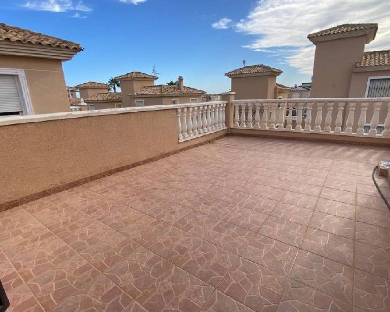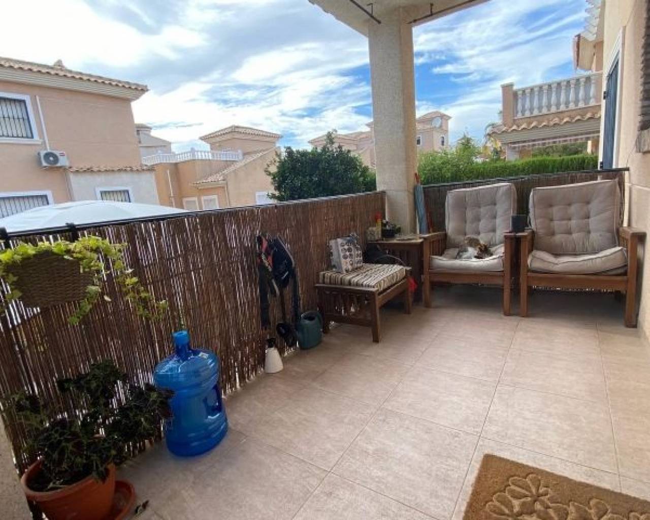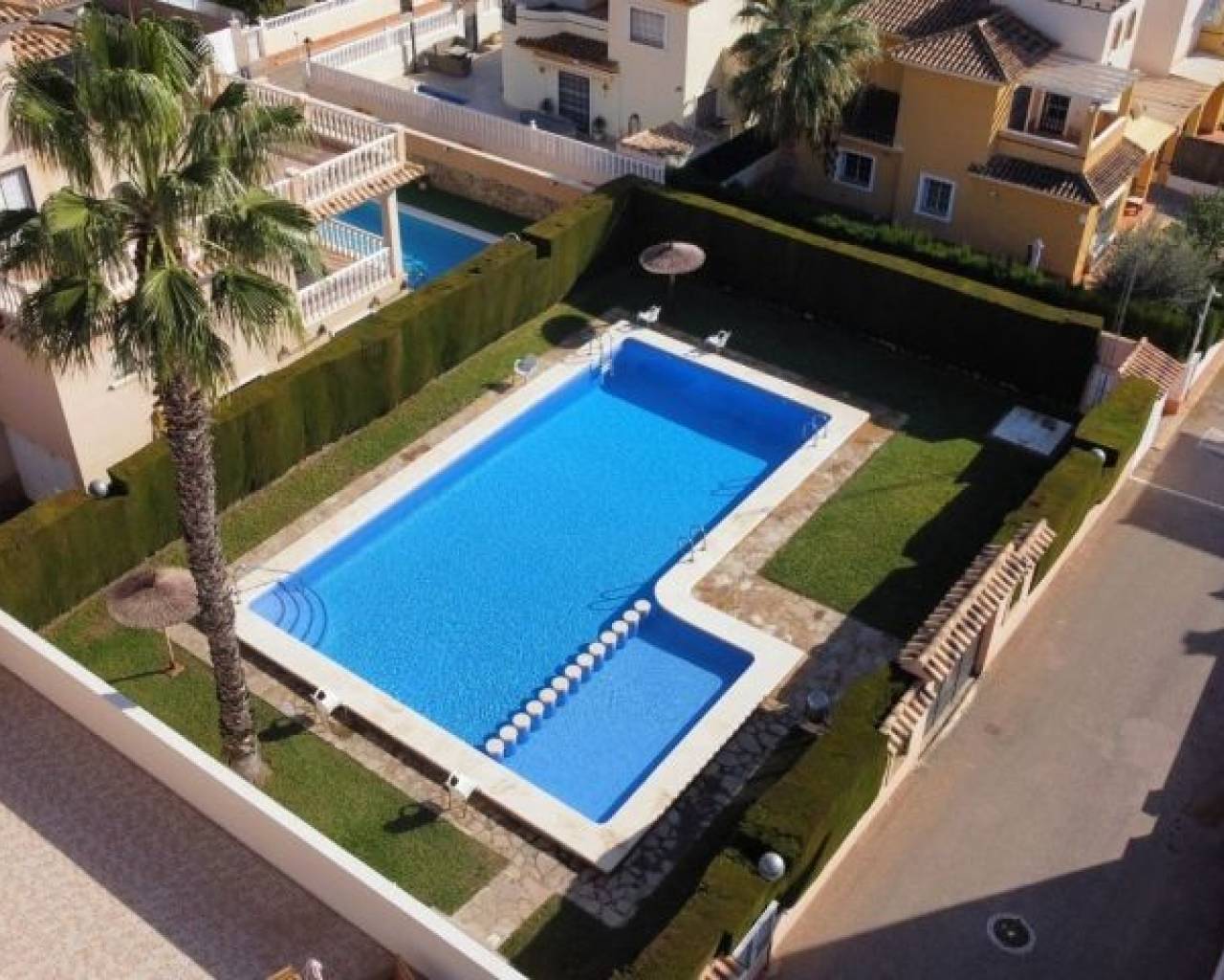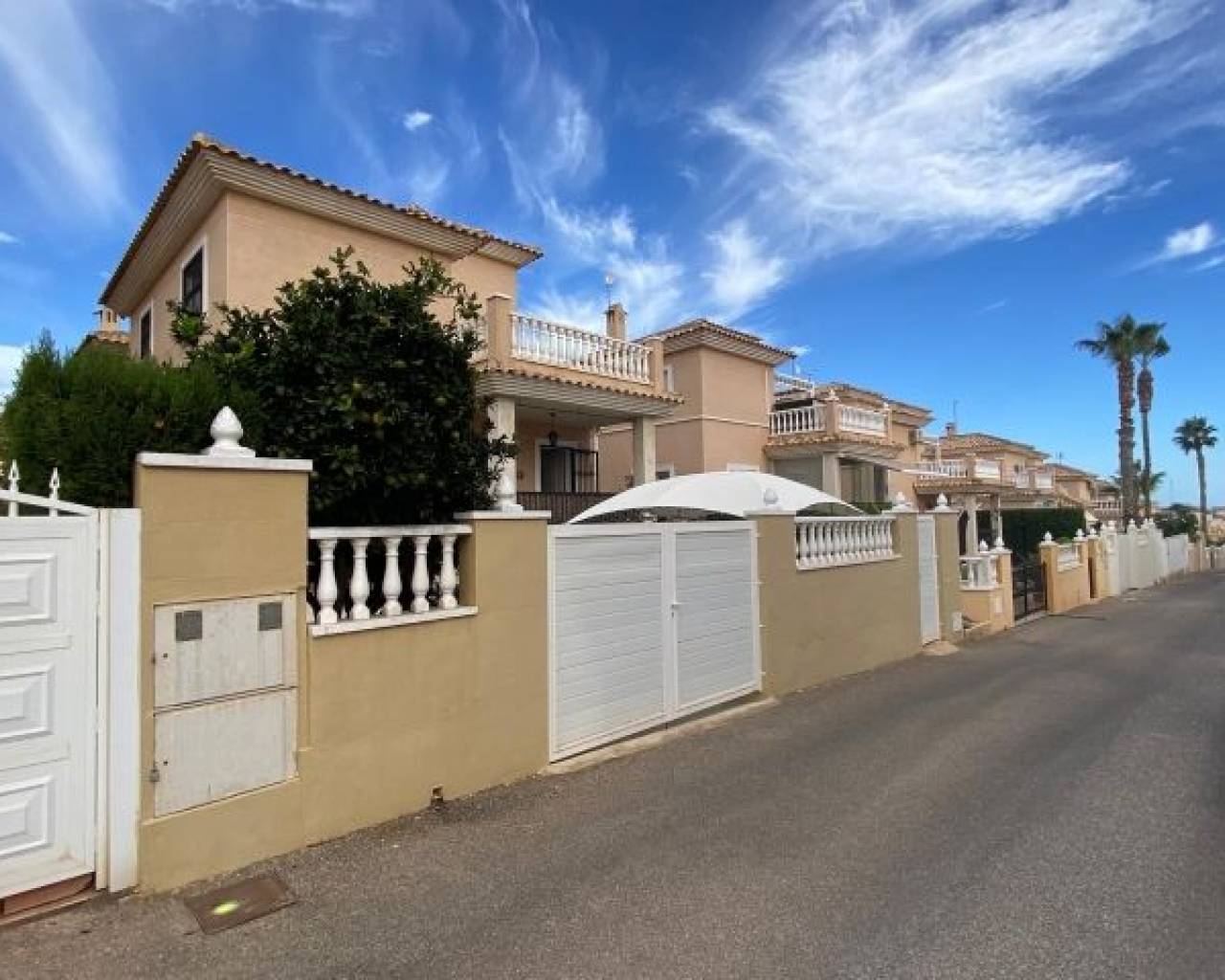 Villa individuelle orientée sud avec garage, grande terrasse, piscine commune, communauté fermée et prestations exceptionnelles Découvrez cette magnifique villa indépendante de 3 chambres et 2 salles de bains, conçue pour vous offrir un maximum de confort et de style. Située dans une résidence fermée, cette propriété dispose de son propre garage en sous-sol, offrant confort et sécurité. Profitez de la terrasse et du solarium, parfaits pour vous détendre tout en profitant de l'impressionnante orientation sud qui garantit la lumière naturelle tout au long de la journée. La villa offre un accès à une piscine commune, idéale pour se rafraîchir lors des chaudes journées d'été. Son emplacement est imbattable : à quelques pas du magasin Consum et à seulement 2 km de la plage, où vous pourrez profiter du soleil et de la mer. De plus, les amateurs de golf seront ravis de savoir qu'il y a des terrains de golf à seulement 4 km. Il est vendu entièrement meublé, prêt à vous emménager et à commencer immédiatement à profiter de votre nouvelle maison. Cette villa est la retraite de rêve qui allie luxe, confort et proximité des meilleures attractions de la région. Ne manquez pas l'opportunité d'acquérir ce joyau dans un environnement privilégié. Votre nouvelle maison vous attend !