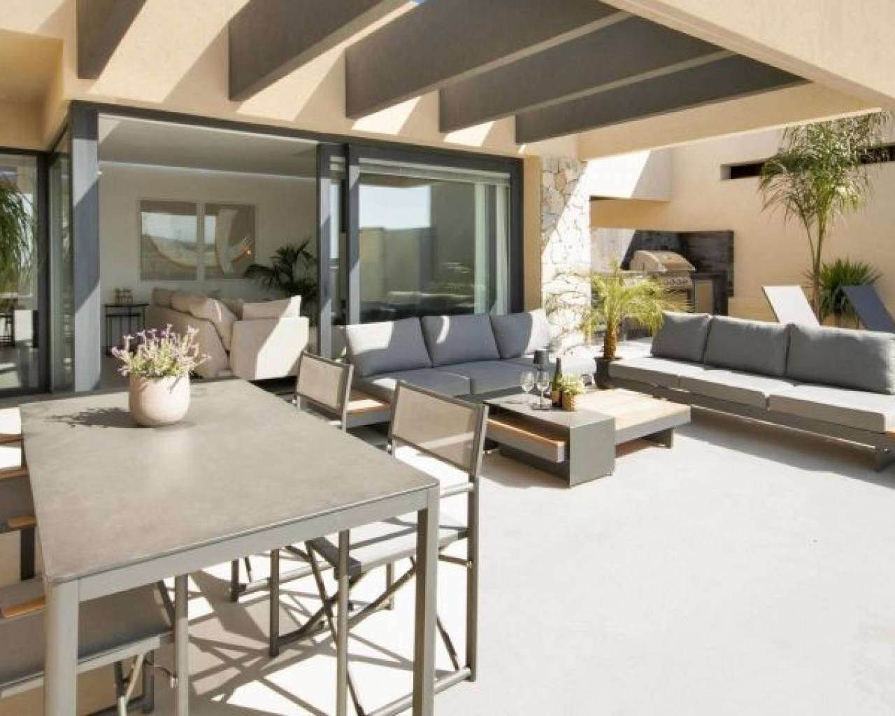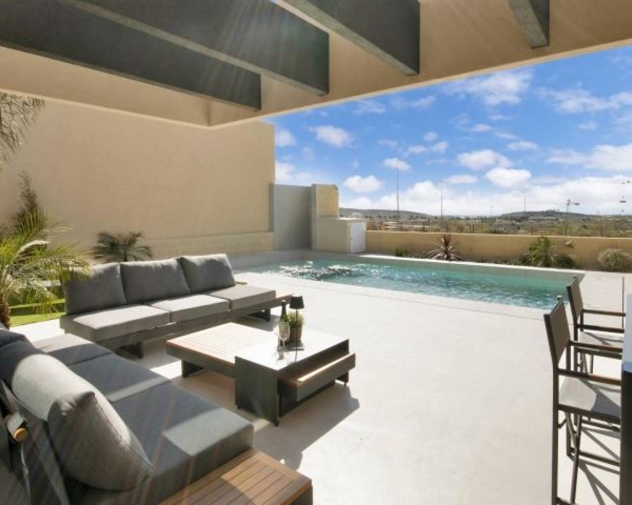 VILLAS DE NOUVELLE CONSTRUCTION À ALTOANA GOLF RESORT, MURCIE Nouvelle construction résidentielle de belles villas à Altaona Golf resort, Murcia. La villa comprend 3 chambres à coucher, 2 salles de bains, une cuisine ouverte sur le salon et un accès direct au jardin avec piscine privée et parking. Les villas sont conçues spécifiquement pour offrir des vues infinies sur le terrain de golf, les lacs et la campagne lointaine, de l'intérieur ou de l'extérieur. Les jardins et les terrasses orientés au sud vous permettent de profiter de la chaleur du soleil d'hiver, et les grandes baies vitrées offrent des vues supplémentaires sur la région depuis le confort de l'intérieur. Les villas ont été conçues pour maximiser le confort, l'intimité et l'efficacité. Des plantes indigènes ont été placées sur les toits pour créer la sensation d'un autre espace naturel. Situé dans un environnement privilégié où l'on peut vivre tranquillement, en contact avec la nature et les montagnes, on obtient qualité de vie, air frais et espaces ouverts. Cette résidence exclusive de nouvelle construction est située à Altaona Golf, à seulement 15 minutes en voiture du centre de la capitale de Murcie et à 15 minutes des plages. Vous pourrez profiter de la tranquillité et de la sécurité offertes par le terrain de golf de 18 trous et du confort de vivre à proximité de tous les services. Le complexe spacieux comprend toutes sortes de services tels qu'un centre commercial, des courts de tennis, de paddle et de basket. La porte d'entrée est toujours gardée, ce qui fait d'Altaona un endroit où les enfants peuvent jouer dehors en toute sécurité. Au total, quelque 500 maisons s'ajoutent pour constituer le complexe Altaona, réparties sur une superficie de 3,6 millions de m2. Voici quelques points forts de la région : - Centre de Murcie : 15 minutes. - Plage : 20 minutes. - Aéroport de Corvera : 20 minutes. - Aéroport d'Alicante : 45 minutes. - Centre commercial (La Alberca) : 8 minutes. - Hôpital : 10 minutes