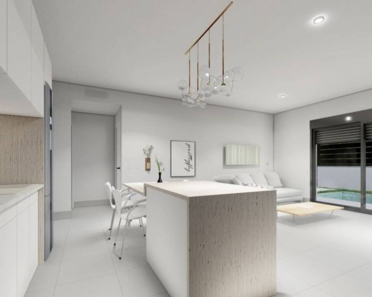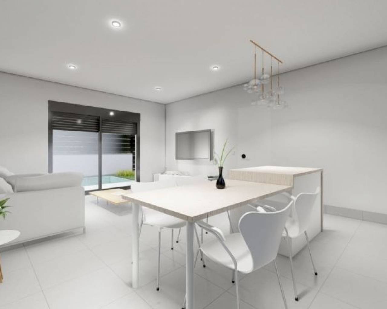 VILLAS NEUVES À ROLDAN Villas de luxe en construction neuve de 2 niveaux à Roldan, Murcia. Villas construites sur des parcelles de près de 600 M2 chacune, avec piscine privée de 30 M2, zone de jardin et grand solarium sur le toit. Chaque propriété dispose de 4 chambres à coucher et 3 salles de bains équipées et ont été conçues avec un style contemporain et un concept planifié ouvert, composé d'une cuisine entièrement équipée et d'un salon-salle à manger. Le projet est situé à Roldán (Murcia), dans un complexe fermé et contrôlé, inclus dans un plan partiel de 300 000 m2, entouré de tous les services, d'installations sportives et à proximité de plusieurs terrains de golf. La propriété répondra aux normes les plus élevées et sera équipée de : Piscine privée de 30 M2 avec douche solaire. Pré-installation pour pompe chauffante. Cuisine entièrement meublée et équipée d'un four surélevé, d'un micro-ondes intégré, d'un lave-vaisselle intégré, d'un réfrigérateur et d'une hotte aspirante. Zone d'îlot dans la cuisine. Éclairage LED : à l'intérieur de la propriété (salle à manger, cuisine, couloirs et salles de bains), ainsi que dans les espaces extérieurs. Armoires doublées avec tiroirs. Salles de bains entièrement équipées avec meuble-lavabo suspendu et toilettes suspendues, miroir avec lumière, douche avec "effet pluie" et écrans de douche. Pré-installation de la climatisation par conduits. Cuisine d'été avec portes coulissantes dans le solarium. Pré-installation pour machine à laver et prise pour réfrigérateur. Panneau solaire. Parking sur le terrain. Roldan est une ville traditionnelle avec toutes les commodités locales dont vous aurez besoin, y compris les supermarchés, les restaurants, les bars, la clinique, la pharmacie, le poste de police, la station-service, les mécaniciens, les dentistes, les médecins et plus encore. Les stations de golf voisines de La Torre et Terrazas sont facilement accessibles, l'aéroport de Corvera est à 15 minutes et les plages de la Mar Menor à 20 minutes en voiture.