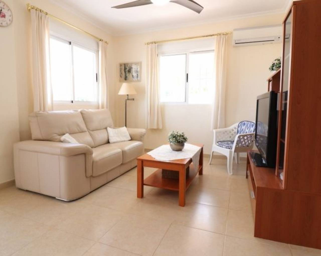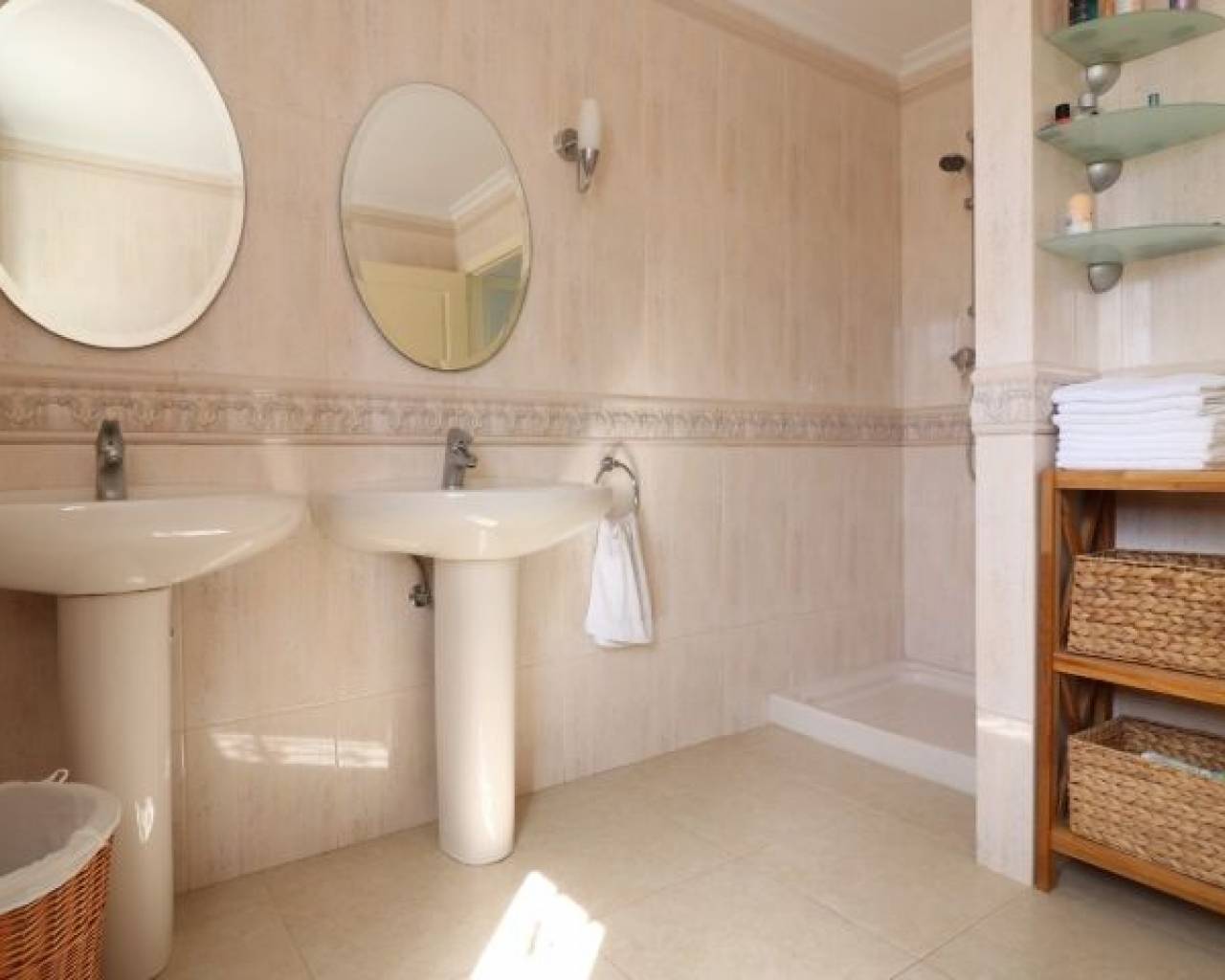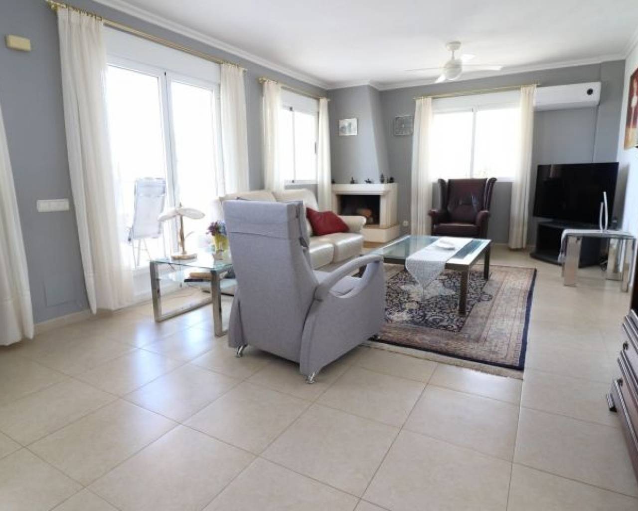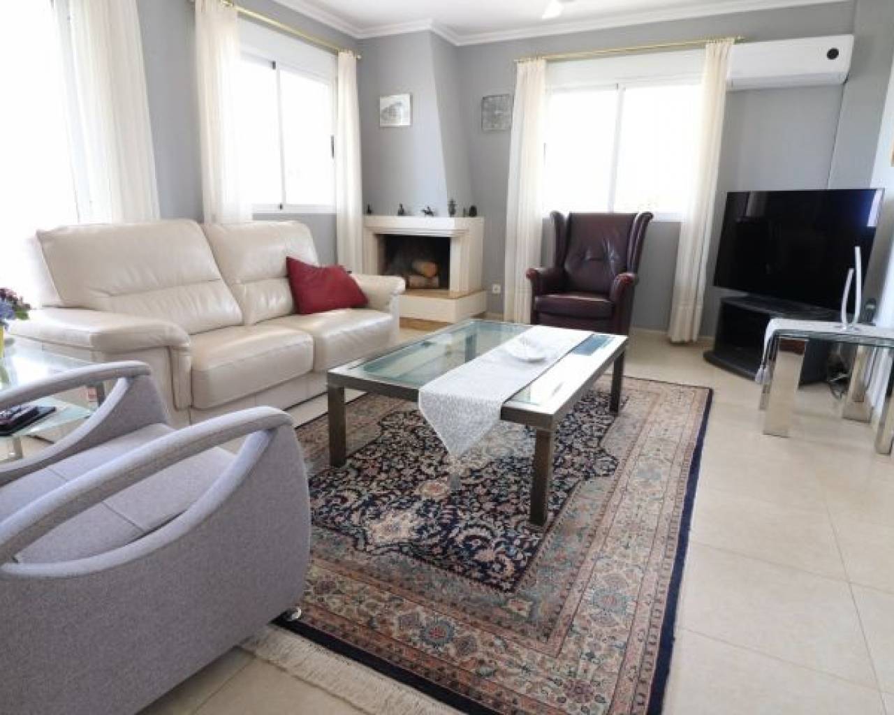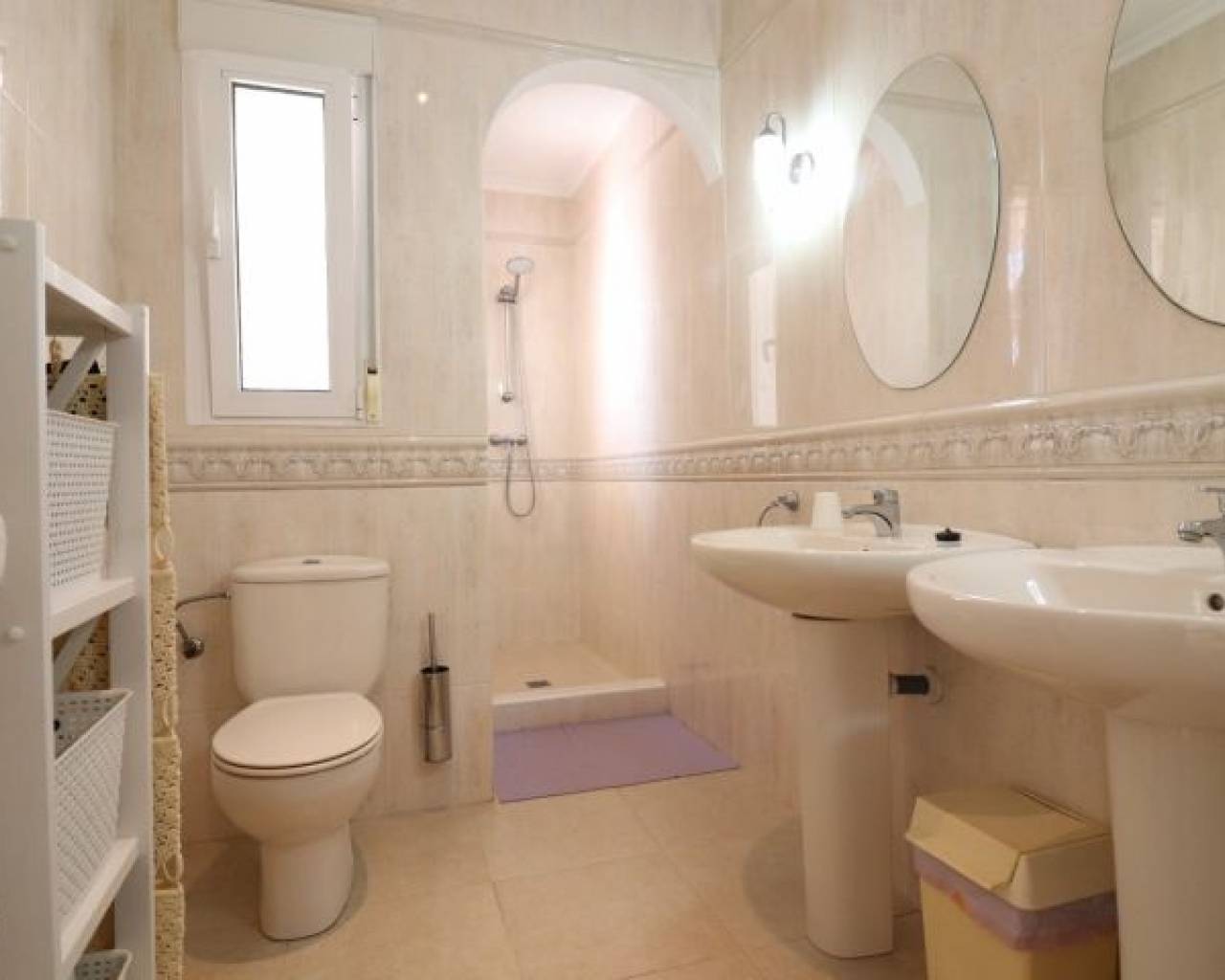 Cette imposante villa individuelle de trois chambres de 191 m2 à Lomas de La Juliana est située dans un quartier résidentiel très recherché, avec un club de tennis à l'entrée et l'hôtel La Finca 5*, un spa et un parcours de golf juste à côté, où vous pourrez vous trouverez également une variété de restaurants et de magasins. Les principales chaînes de supermarchés se trouvent à Almoradi et Benijofar, à seulement 5 minutes en voiture. Les plages du littoral sont à environ 20 minutes en voiture. Cette maison exceptionnelle occupe un terrain paysager privé de 1220 m2 avec les vues les plus étendues que vous trouverez dans la région. Le salon principal de la villa est accessible par un escalier extérieur à une terrasse couverte en forme de L, qui donne ensuite accès au joli salon lumineux, doté d'un ensemble de portes coulissantes et de trois ensembles de fenêtres, dotés d'une cheminée à foyer ouvert ; incroyable cuisine équipée/salle de petit-déjeuner ; chambre double et une salle de douche familiale. Le rez-de-chaussée de la propriété est accessible par l'extérieur et comprend un salon, une arcade menant à la cuisine équipée, une salle de bains et deux chambres doubles. Le jardin est en galets et carrelage avec une longue allée menant à deux garages ; la piscine est entourée de carrelage et il y a beaucoup d'arbres matures, de buissons et de palmiers autour. Les extras comprennent le chauffage au sol dans tout le rez-de-chaussée, la climatisation, des armoires encastrées dans toutes les chambres et un système d'irrigation.
