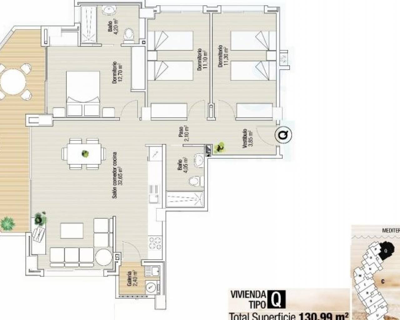 NOUVEAU COMPLEXE RÉSIDENTIEL À LA MANGA Ce nouveau complexe résidentiel est situé dans un endroit unique et spécial, entre deux mers, dans un endroit privilégié et avec tous les services dont vous pouvez avoir besoin à portée de main dans la région de Murcie, belle côte avec les plages d'eaux transparentes et peu profondes. Dans ce complexe résidentiel, les appartements ont été conçus pour tirer le meilleur parti des moindres recoins de la propriété, ainsi que de l'environnement. le choix des matériaux et la conception des logements. Vivez un monde de sensations et de moments agréables avec tous les services et activités que vous souhaitez à portée de main. Installations - Climatisation : Système de climatisation par gaines, pour le chaud et le froid, dans toute la maison (sauf dans les distributeurs et les salles de bains) et géré par une console centrale. Appareils électriques : Four en acier inoxydable. Plaque de cuisson en céramique noire avec trois brûleurs. Réfrigérateur en acier inoxydable. Hotte aspirante intégrée dans le meuble. Lave-vaisselle intégré. Espaces communs : Accès à l'immeuble par une porte en PVC blanc et double vitrage avec chambre d'air. Halls d'entrée et marches d'escalier spécialement décorés avec du marbre national. Main courante en aluminium thermo laqué blanc sur les escaliers intérieurs. Eclairage par détection de présence au sous-sol et dans les parties communes intérieures. Porte d'accès au garage sectionnelle motorisée blanche. Garde-corps d'urbanisation en acier inoxydable. Système de vidéo-porte. Parabole satellite avec chaînes européennes. Piscine avec solarium paysager. La Manga del Mar Menor est une bande de terre naturelle entourée de deux mers, la Mar Menor et la Méditerranée. À cette rareté s'ajoutent les multiples possibilités de loisirs et de temps libre, restaurants, supermarchés, censeurs médicaux, pharmacies, censeurs de sports nautiques, terrains de golf. La Manga est située sur la côte nord de la Costa Calida et est une destination de vacances très prisée des touristes. L'étroite bande de terre qui sépare la lagune chaude de la mer plus froide présente un microclimat unique. C'est l'une des régions les plus exotiques d'Espagne. L'aéroport de Corvera se trouve à environ 1 heure de route et celui d'Alicante à environ 2 heures.