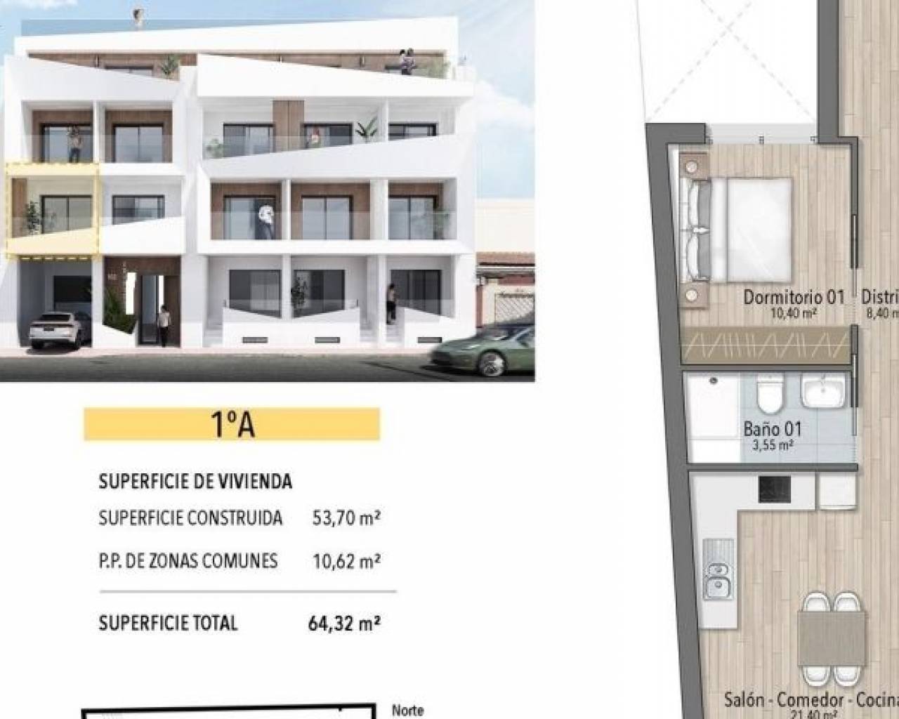 Appartements modernes à 250 m de la plage d'El Cura à Torrevieja Nouveau développement dans un emplacement de choix Ce nouvel immeuble d'appartements est situé à seulement 250 mètres de la célèbre plage d'El Cura à Torrevieja, offrant aux résidents un accès facile à l'une des plages les plus populaires de la région. L'immeuble se compose de 17 unités, comprenant des appartements de 1 et 2 chambres à coucher, chacun avec 1 ou 2 salles de bains. En outre, des penthouses sont disponibles avec des solariums privés et des vues imprenables sur la mer, parfaits pour profiter du style de vie méditerranéen. Des équipements haut de gamme pour se détendre Les résidents peuvent profiter de la piscine communautaire et du solarium sur le toit, idéal pour se détendre après une journée à la plage. L'immeuble propose également des places de parking souterrain et des salles de stockage en option, moyennant un coût supplémentaire, ce qui offre plus de commodité et de sécurité aux résidents. La vie urbaine animée de Torrevieja Torrevieja est une ville animée, connue pour ses activités culturelles et récréatives tout au long de l'année, ce qui en fait une destination idéale pour les résidents permanents et les vacanciers. Avec un climat doux et plus de 300 jours de soleil par an, la région est parfaite pour ceux qui aiment les activités de plein air et la vie à la plage. Emplacement idéal avec accès facile aux points d'intérêt Cette propriété est idéalement située à proximité de tous les services essentiels, y compris les supermarchés, les restaurants et les lieux de divertissement. Les principaux centres d'intérêt sont facilement accessibles : L'aéroport d'Alicante se trouve à 45 km. Plusieurs terrains de golf se trouvent à 7-10 km. Le centre commercial Zenia Boulevard est à seulement 8 km. Le port de Torrevieja se trouve à 2 km de l'immeuble. Profitez d'une vie moderne en bord de mer dans un quartier animé et bien desservi, où tout ce dont vous avez besoin se trouve à une courte distance.