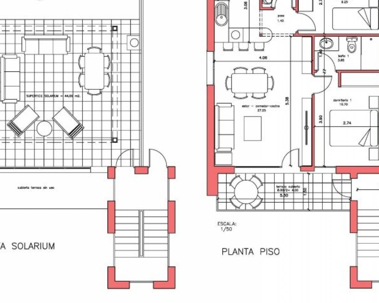 BUNGALOWS NEUFS À FUENTE ALAMO, MURCIA Nouvelle construction résidentielle d'appartements de plain-pied à Fuente Alamo, Murcie. Bungalows au rez-de-chaussée avec jardin privé et bungalows au dernier étage avec solarium privé. Cet emplacement offre un cadre naturel exceptionnel, loin de l'agitation des grandes villes et de la pression touristique de la côte. De plus, nous nous engageons à travailler dans une perspective de développement durable, en minimisant notre impact sur l'environnement et en maximisant l'intégration avec la communauté locale. Ici, vos rêves d'un mode de vie paisible et durable deviennent réalité. Imaginez que vous vous réveillez chaque matin dans un cadre naturel époustouflant, entouré de paysages sereins et de la beauté unique de la campagne de Murcie. Les projets de construction neuve privilégient l'efficacité énergétique, l'utilisation de matériaux respectueux de l'environnement et l'intégration harmonieuse dans l'environnement rural. De la conception de la propriété à la planification du développement, nous nous efforçons de réduire notre empreinte carbone et de promouvoir des pratiques responsables dans toutes nos activités. Développement donnant la priorité à l'efficacité énergétique et à l'intégration communautaire pour créer des logements de haute qualité en harmonie avec l'environnement naturel. Pré-installation d'un système d'air conditionné canalisé, chaud/froid, installation de machines dans les options. Système d'interphone vidéo. Porte d'accès de sécurité laquée en couleur, avec serrure et accessoires de sécurité anti-vandalisme. Penderies avec coffre, doublées à l'intérieur, laquées en blanc. Les meubles de cuisine ne sont pas inclus (en option) : - Meublée d'éléments hauts et bas. Entièrement équipée. Possibilité de tout type de modification par le client. - Plan de travail en pierre. - Évier en acier inoxydable, avec robinetterie Roca ou similaire. - Plaque vitrocéramique, hotte aspirante et four électrique, en acier inoxydable. Balay ou similaire. Système de panneaux solaires photovoltaïques, avec réservoir d'accumulation. Pré-installation d'un système d'air conditionné canalisé, chaud/froid, installation de machines en option. Possibilité d'apporter des modifications à la propriété, sous réserve d'une évaluation préalable approuvée par les deux parties. Fuente Álamo de Murcia est une ville et une municipalité de la région de Murcie, dans le sud de l'Espagne. Elle est située à 22 km au nord-ouest de Carthagène et à 35 km au sud-ouest de Murcie. La ville se trouve dans le bassin de la Mar Menor, entourée des montagnes d'Algarrobo, Los Gómez, Los Victorias et du Carrascoy. L'eau de ces montagnes s'écoule dans la Rambla de Fuente Álamo, puis dans la Mar Menor. Fuente Álamo se trouve à 30 minutes de l'aéroport de Murcie-Corvera.