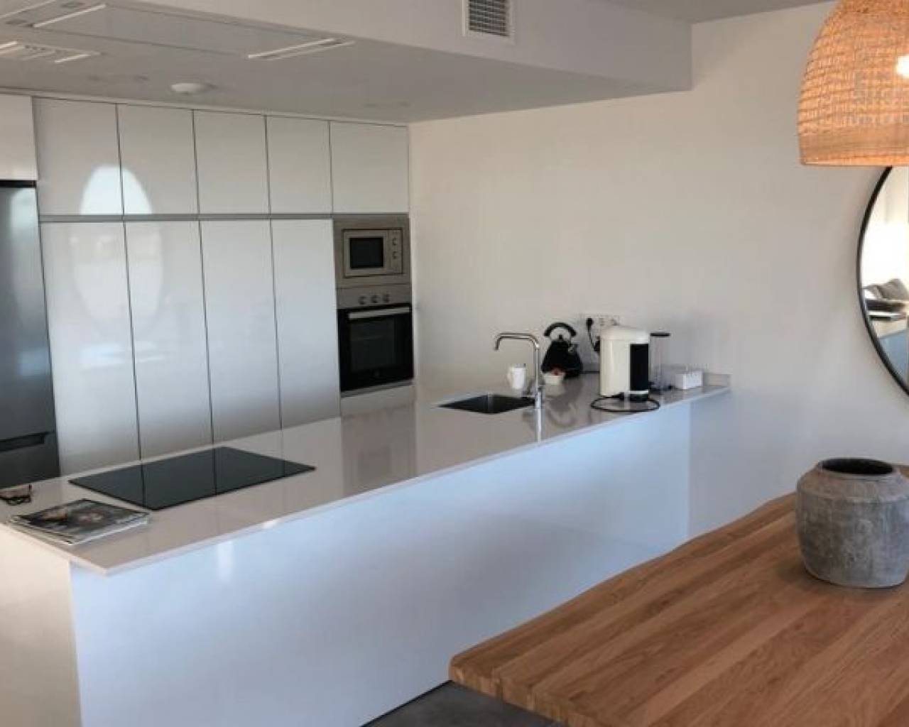 Cette belle villa, achevée en 2020, est située dans l'urbanisation très recherchée Seascape à Finestrat. Avec son design d'inspiration méditerranéenne, la propriété comprend deux étages, un rez-de-chaussée et un demi sous-sol, tous deux avec accès direct aux espaces extérieurs. L'aménagement a été soigneusement conçu pour maximiser la lumière naturelle, créant ainsi une atmosphère lumineuse et accueillante. Rez-de-chaussée : où style et confort se conjuguent Le rez-de-chaussée offre un spacieux salon et salle à manger décloisonné de 40 m² avec une cuisine moderne, le tout parfaitement relié à la piscine privée et à la terrasse du jardin. Cet étage comprend également trois chambres et deux salles de bains, la chambre principale ayant sa propre salle de bains. Demi sous-sol : espace supplémentaire, possibilités infinies L'espace en demi sous-sol de 100 m² offre de nombreuses possibilités et comprend : Une grande chambre avec sa propre salle de bain et dressing. Un espace de vie polyvalent pouvant être transformé en home cinéma, salle de sport ou salle de jeux. Un espace prêt à l'emploi, idéal pour y installer une kitchenette ou du rangement. De là, vous sortez dans un jardin tranquille de 33 m², une évasion privée paisible. Principales caractéristiques Conçue pour le confort et la commodité, cette villa offre : Air climatisé (chaud et froid) aux deux étages. Volets électriques dans le séjour et la chambre parentale. Stores manuels dans les autres chambres. Appareils de cuisine de qualité supérieure de Balay. Classe d'efficacité énergétique : A. La vie en plein air à son meilleur Les espaces extérieurs sont parfaits pour profiter du style de vie méditerranéen, avec une grande terrasse (22 m² couverte) et une piscine privée qui vous invite à la détente et au repos. La propriété comprend également son propre espace de stationnement privé, avec un parking commun supplémentaire disponible au sein de l'urbanisation. Commodités de style complexe Vivre à Seascape signifie accéder à de fantastiques équipements communautaires, notamment : Plusieurs piscines communes pour se rafraîchir aux beaux jours. Une salle de sport entièrement équipée pour les amateurs de fitness. Aires de jeux où les enfants peuvent s'amuser. Un court de paddle-tennis et un jacuzzi offrent un luxe supplémentaire. Un environnement sécurisé et sécurisé avec une sécurité privée pour une totale tranquillité d'esprit. C'est plus qu'une simple maison, c'est un style de vie. Que vous recherchiez la maison de vos rêves ou un investissement solide, cette villa à Seascape offre tout. Ne laissez pas passer cette opportunité !