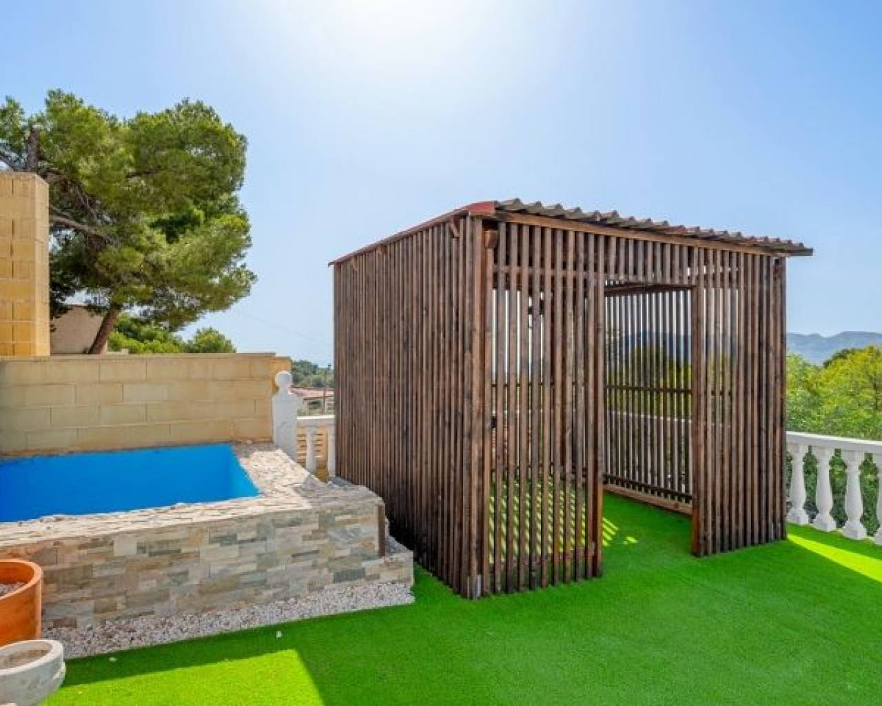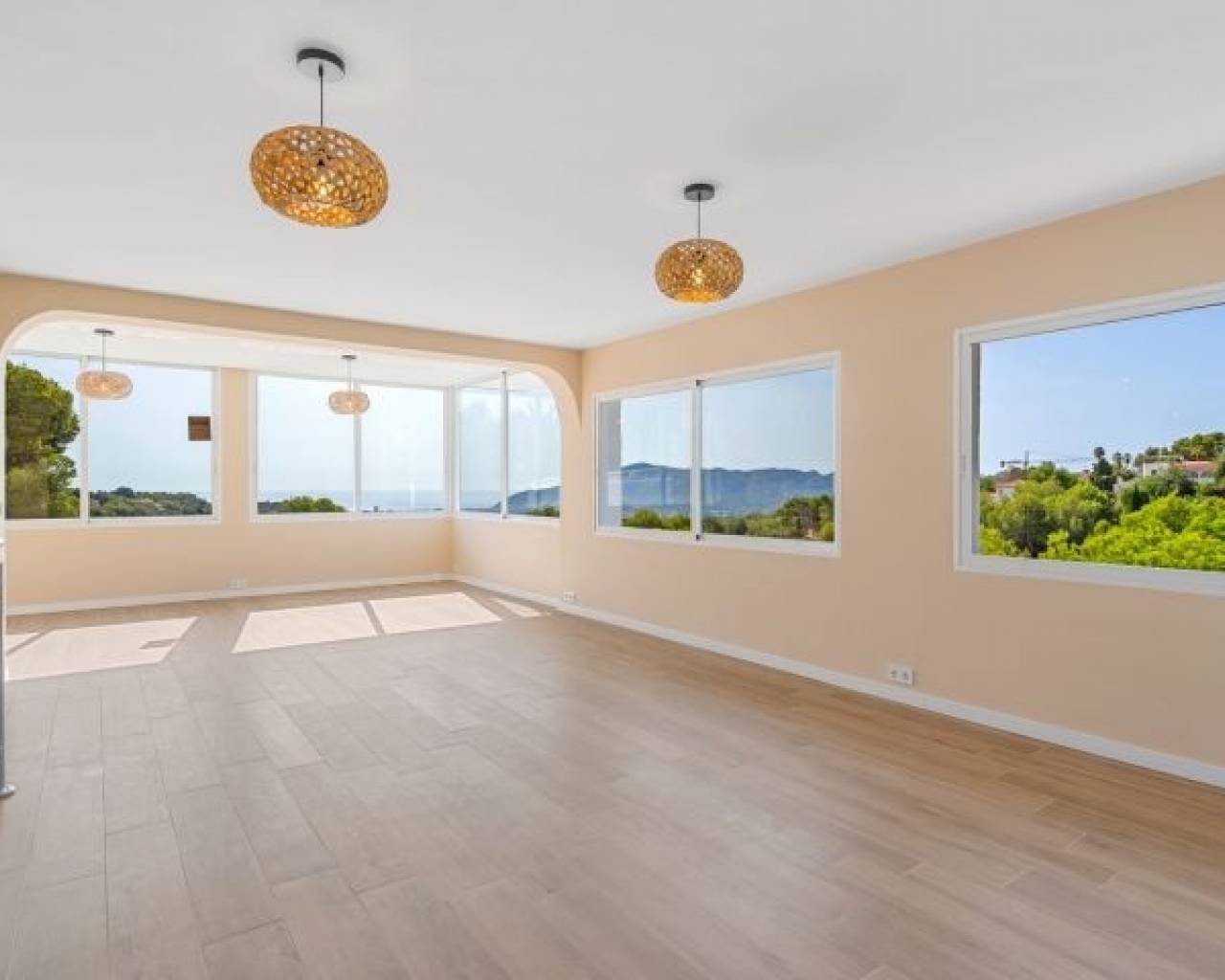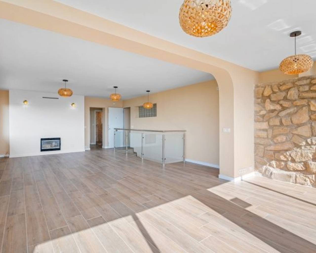 Cette superbe villa ensoleillée et lumineuse, entièrement rénovée en 2025, allie confort, espace et style méditerranéen dans un environnement calme mais bien desservi, avec de belles vues dégagées sur la mer et le paysage naturel. Avec 216 m² construits sur un terrain de 1 268 m² selon le registre, elle offre cinq grandes chambres, deux salles de bain complètes et un WC, ainsi que plusieurs espaces extérieurs conçus pour profiter du climat de la Costa Blanca toute l’année. L’étage principal, au niveau de la rue, comprend un vaste salon-salle à manger lumineux avec cheminée et vue dégagée, une cuisine indépendante entièrement équipée, une terrasse avec accès direct à la zone barbecue et piscine, une chambre double et un WC invités. On trouve également un grand hall pouvant servir de bureau, un garage fermé pour un véhicule et un local de rangement/buanderie. Au rez-de-chaussée se trouvent quatre chambres doubles, dont deux avec accès direct au jardin, deux salles de bain complètes et un grand espace détente « chill-out » idéal pour se relaxer. Depuis ce niveau, on accède directement à la piscine privée de 36 m², entourée d’un solarium et complétée par un bar couvert avec raccordements électriques et d’eau, un barbecue et un four à pizza traditionnel, ainsi qu’un porche en bois et une rampe traversant le jardin. La propriété se distingue par son orientation ensoleillée, ses finitions modernes issues d’une rénovation complète et sa conception pensée pour un mode de vie intérieur-extérieur confortable.
