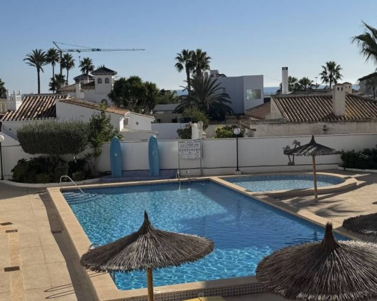 Charmant appartement dans la résidence Flores, située dans le quartier prisé de Playa Flamenca, l'un des plus recherchés d'Orihuela Costa. Situé au premier étage, cet appartement de 65 m² comprend un séjour/salle à manger avec cuisine équipée, deux chambres, une salle de bains, une buanderie et une agréable terrasse offrant une vue dégagée sur l'accès à la résidence. La résidence est réputée pour son calme et son emplacement idéal, à quelques minutes seulement des centres commerciaux, restaurants, commodités et des plus belles plages de la région. Une opportunité parfaite pour une résidence secondaire ou un investissement.