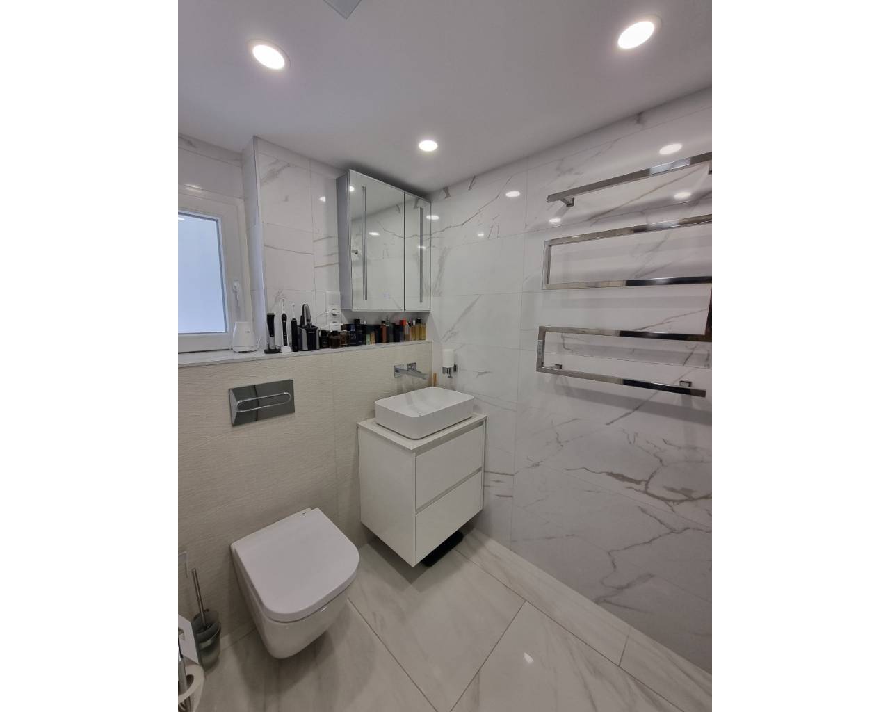 Appartement de luxe exclusif au cœur de Torrevieja ! Un choix idéal pour les clients en quête d'un style de vie moderne, élégant et contemporain, avec toutes les commodités, à proximité de la plage et en plein centre-ville. Situé au premier étage d'un immeuble avec ascenseur, cet appartement de 95 m² a été entièrement rénové en 2023 avec des matériaux de qualité. Il comprend 2 chambres, 2 salles de bains, un salon spacieux avec une cuisine ouverte et une terrasse offrant une vue imprenable sur la mer, le nouveau centre d'affaires et le manoir. Cet appartement est doté d'équipements de pointe : chauffage au sol, ventilation et climatisation contrôlées par Wi-Fi, porte de sécurité avec caméra et télécommande, système de filtration d'eau, mobilier moderne et appareils électroménagers multifonctionnels. La technologie intelligente allie haute fonctionnalité et design élégant. Nos grilles de ventilation haut de gamme, qui offrent une qualité d'air acoustique et thermique supérieure, sont équipées de fonctions intelligentes et automatiques qui vous permettront de profiter d'une vie plus confortable et adaptée au climat. Le complexe se compose de studios spacieux et bien équipés, dotés d'un mobilier moderne pour un style de vie confortable et raffiné. Vous pouvez également acheter des places de parking individuelles dans le garage souterrain. Pour plus d'informations, veuillez contacter Ozero au +34 635 130 717.