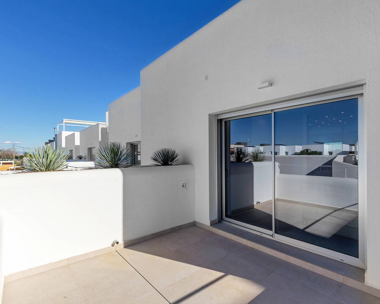 Au cœur de la Costa Blanca où le bleu intense du ciel se confond avec la mer Méditerranée, vous trouverez cet ensemble exclusif de maisons conçues pour ceux qui recherchent un style de vie pas comme les autres. Chef-d’œuvre de design et de confort, chaque maison offre des espaces lumineux, des finitions de première classe et la plus grande attention aux détails. Dans chaque maison, les terrasses et les espaces extérieurs fusionnent pour créer le cadre parfait pour vivre des moments inoubliables. Conçu pour maximiser l’entrée de la lumière naturelle et assurer une ventilation optimale. Les terrasses deviennent une extension avec de l’intimité qui vous invite au repos et à la déconnexion. Bungalow au premier étage de 90,80m² répartis en trois chambres doubles, dont une en suite avec salle de bain attenante, et une salle de bain séparée, grand salon avec accès à une belle terrasse  d’environ 13,75m²  et  une belle cuisine américaine. La maison dispose également d’un beau solarium de 66,70m² où vous pourrez profiter des journées ensoleillées qu’offre la Méditerranée. La propriété comprend un garage et un débarras.