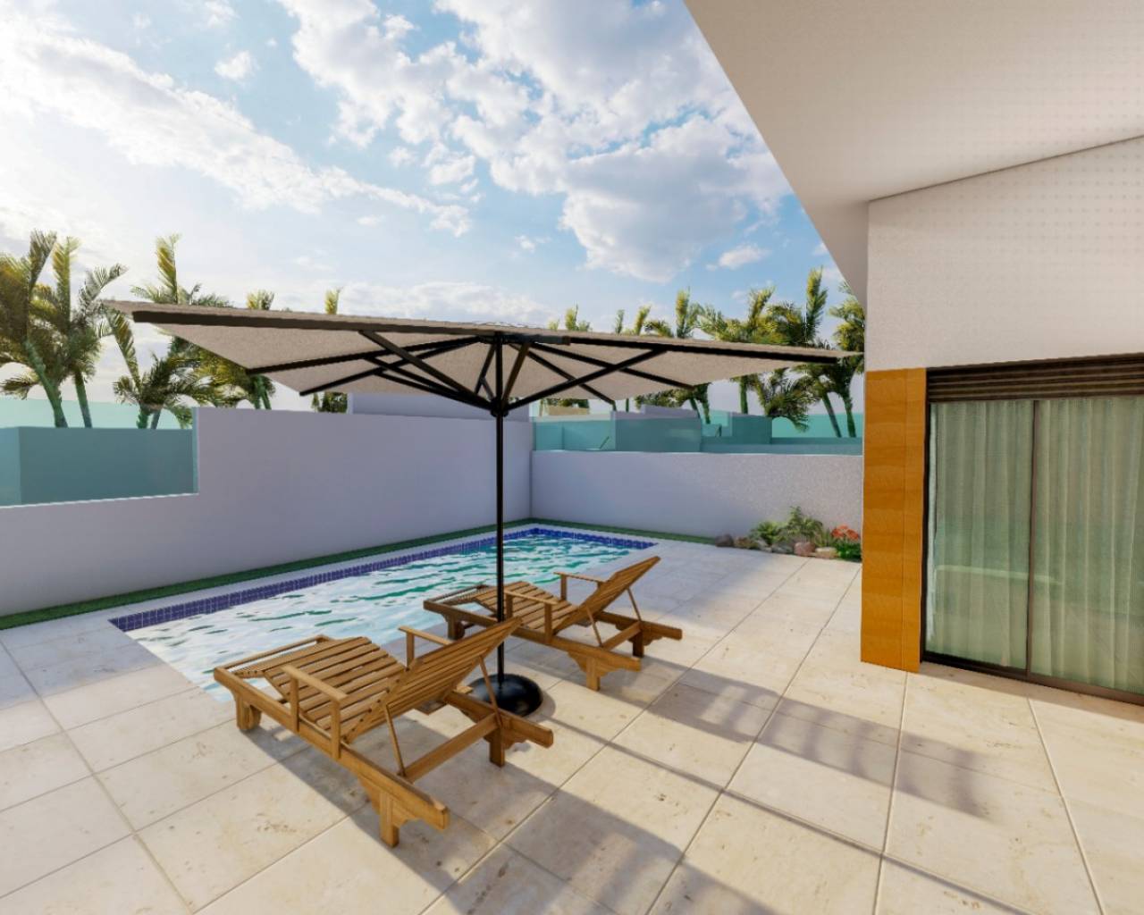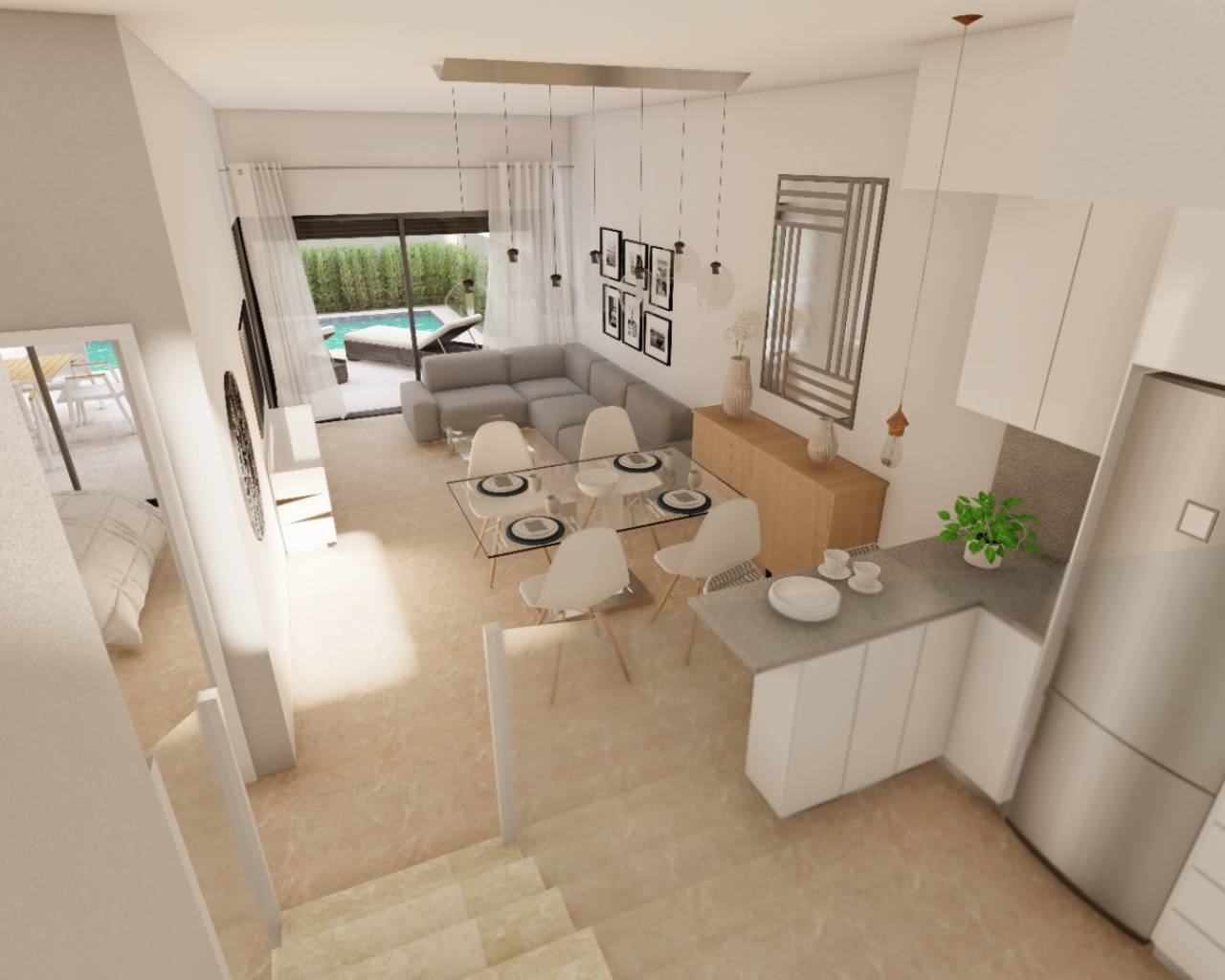 Spectaculaire villa individuelle à vendre, à la périphérie de Bigastro, une municipalité située au cœur de la Vega Baja, avec tous les services de base qu’une ville peut offrir, tels que des magasins, des supermarchés, un centre médical, des pharmacies, des écoles, des bars et des restaurants. La maison est située dans un quartier résidentiel très calme à 200m de l’école San José de Calasanz et à 300m des commerces, bars et restaurants. Bonne communication avec l’autoroute nationale CV - 95 qui vous permet de vous déplacer facilement vers d’autres grandes villes telles que Orihuela, Torrevieja, etc. Spacieuse villa de deux étages située sur un terrain de 161,87m² avec de beaux espaces verts paysagers, un espace de parking non couvert et une magnifique piscine privée. L’intérieur est distribué au rez-de-chaussée avec  un salon spacieux attenant à une cuisine américaine, une chambre double et une salle de bain séparée avec douche. À l’étage supérieur, il y a deux chambres doubles, toutes deux avec salle de bains privative avec douche.  La villa dispose d’armoires encastrées dans toutes les pièces.