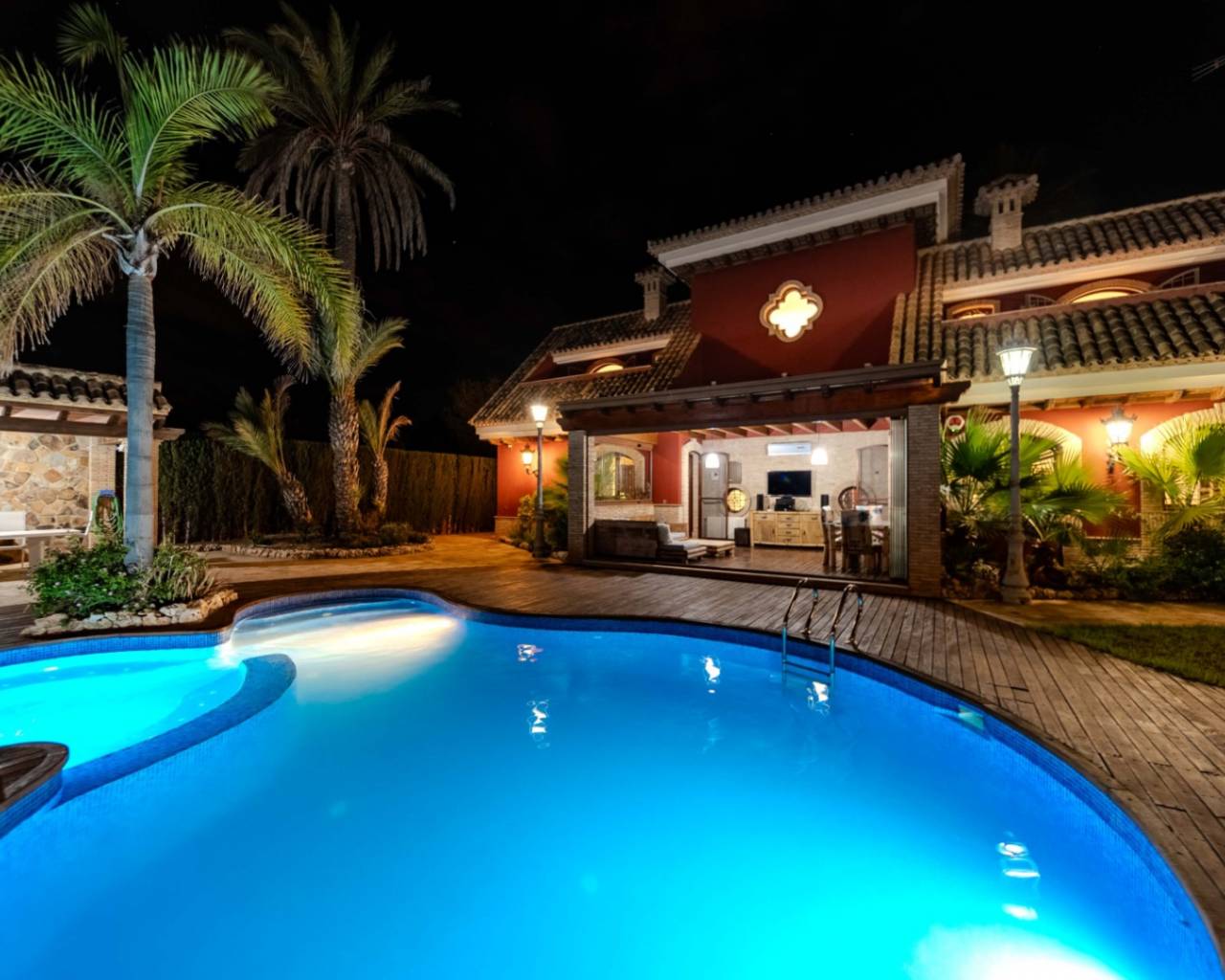 Découvrez Votre Refuge à Orihuela Située dans le magnifique Campoamor, au sein de la vibrante ville d'Orihuela dans la province d'Alicante, cette impressionnante villa de luxe offre un style de vie enviable. Avec un généreux espace de 490 m² construits et 1200 m² de parcelle, cette maison se distingue non seulement par sa superficie, mais aussi par son élégance et son confort. Distribution Exquise Le logement comprend 5 chambres soigneusement conçues pour offrir tranquillité et intimité, accompagnées de 4 salles de bains qui ajoutent fonctionnalité et confort. Chaque coin a été pensé pour maximiser l'espace et la lumière naturelle, créant une ambiance accueillante et relaxante. La cuisine américaine est le cœur de la maison, idéale pour profiter de moments en famille et entre amis. Chaleur et Confort Cette villa ne fait pas de compromis sur les commodités. Équipée de climatisation par conduits et de chauffage par conduits, chaque saison de l'année devient une expérience agréable. Pour ceux qui cherchent à se détendre, la piscine privée est l'endroit parfait pour se rafraîchir et profiter du soleil méditerranéen dans toute sa splendeur. De plus, le jacuzzi exclusif offre un espace idéal pour se déconnecter et se revitaliser. Caractéristiques Supplémentaires La propriété comprend également un garage et un stationnement pour garantir le confort de chaque visite. Entièrement meublée, elle permet de profiter d'un déménagement sans complications. La villa dispose d'un dépôt qui fournit un espace supplémentaire pour le stockage des affaires, ainsi qu'un ascenseur qui facilite l'accès aux différents niveaux. La porte de sécurité et le système d'alarme ajoutent un niveau supplémentaire de tranquillité, offrant sécurité et paix d'esprit pour toute la famille. Environnement Privilégié L'emplacement de Campoamor est connu pour sa proximité avec des plages spectaculaires et des terrains de golf ; idéal pour ceux qui aiment le sport en plein air et la vie côtière. La villa est située dans un terrain clos, offrant un environnement sûr et privé pour profiter pleinement de chaque recoin de cette propriété. De plus, l'orientation de la maison permet de maximiser la lumière naturelle pendant la journée. Cette villa à Orihuela est plus qu'une simple habitation ; c'est un style de vie qui embrasse l'élégance et le confort dans un environnement naturel incomparable. Une opportunité unique pour ceux qui recherchent un foyer alliant luxe, confort et exclusivité.