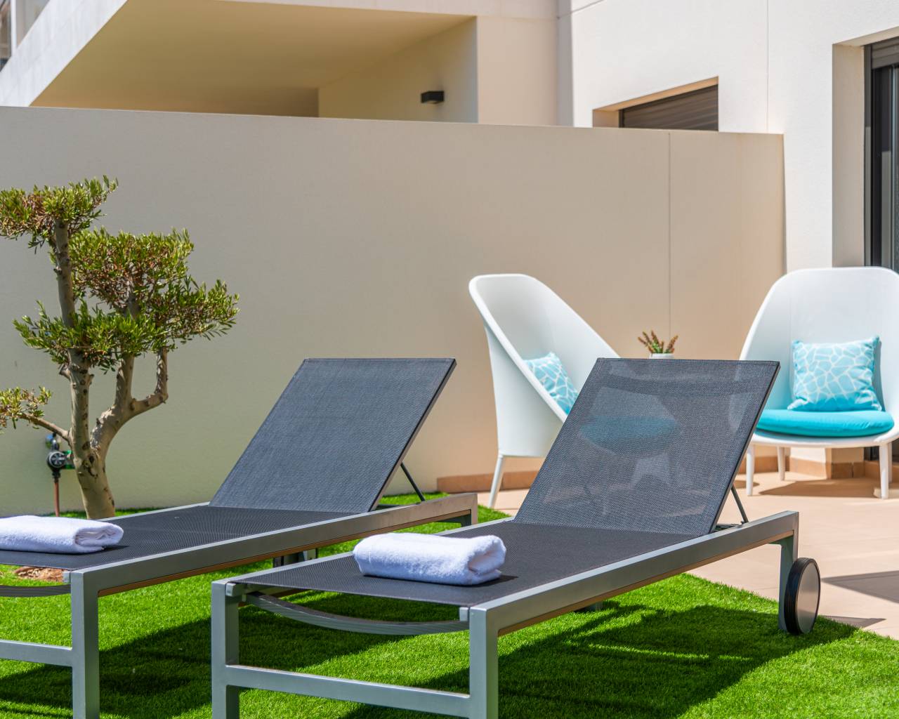 Magnifique appartement au rez-de-chaussée situé dans une élégante urbanisation de haute qualité, qui se distingue par son design, sa tranquillité et sa situation privilégiée. La propriété dispose de 2 chambres, 2 salles de bains, un salon-salle à manger spacieux et une cuisine équipée, ainsi qu'un jardin privé idéal pour profiter du temps tout au long de l'année grâce à son orientation sud. Elle dispose également d'une place de parking privée et d'une salle de stockage. L'ensemble offre des espaces communs spectaculaires : Des jardins japonais soigneusement conçus pour la détente. Piscines communes, dont l'une est chauffée, parfaites pour en profiter à tout moment de l'année. Environnement calme et sûr, idéal pour déconnecter. L'emplacement est imbattable : À quelques minutes du centre commercial La Zenia Boulevard. Proche des meilleures plages de la région. Proche de prestigieux terrains de golf tels que Villamartin, Las Ramblas, Campoamor et Las Colinas. Une propriété unique pour ceux qui recherchent la qualité de vie, l'exclusivité et la tranquillité, parfaite comme résidence permanente ou comme investissement.