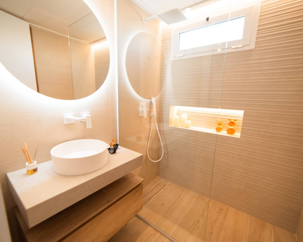 Bungalow de 73,75m² au rez-de-chaussée avec deux chambres et deux salles de bains, dont une en suite et une salle de bain séparée. Un grand salon attenant à une cuisine ouverte avec bar pour le petit-déjeuner sur la péninsule. Et une belle terrasse de 27,00m².  Ce beau bungalow dispose également d’une piscine commune et de beaux espaces verts paysagers avec espace de détente. Ce bungalow est idéal pour les vacances et l’investissement.