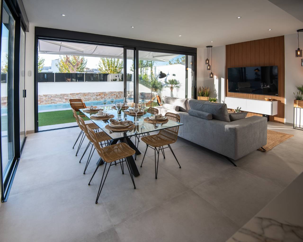 Fantastique villa à vendre à Santiago de la Ribera, San Javier, Murcie. À seulement 900 m des meilleures plages de la région, qui au total ont plus de 4 km de parcours, certifié par le Q pour la qualité touristique. San Javier est situé dans la partie nord de La Manga del Mar Menor, et se caractérise, comme d’autres villes de la région, pour être la pêche. Cela signifie que les fruits de mer que vous trouverez dans les magasins, les poissonniers et les restaurants seront de la plus haute qualité. En plus de la gastronomie, cette région est connue pour ses eaux calmes qui permettent une variété de sports nautiques, tels que la plongée en apnée, la plongée, le kayak et bien plus encore. Propriété située à proximité de tous les services de base qu’une ville peut offrir, tels que pharmacies, magasins, supermarchés, écoles, bars, restaurants, etc. Et à proximité de l’aéroport international de San Javier. Villa de deux étages avec place de parking privée non couverte, une grande piscine, de beaux jardins et un solarium à l’étage couvert. Rez-de-chaussée avec un salon spacieux attenant à une cuisine ouverte avec bar pour le petit-déjeuner sur la péninsule, une chambre double avec armoire intégrée, une salle de bains séparée et une buanderie. Étage supérieur avec deux chambres doubles, toutes deux en suite avec salle de bain et dressing, toutes deux avec accès à une grande terrasse de 28,00m². Sol couvert avec un solarium de 48,60m² où vous pourrez installer votre cuisine d’été avec barbecue et douche.