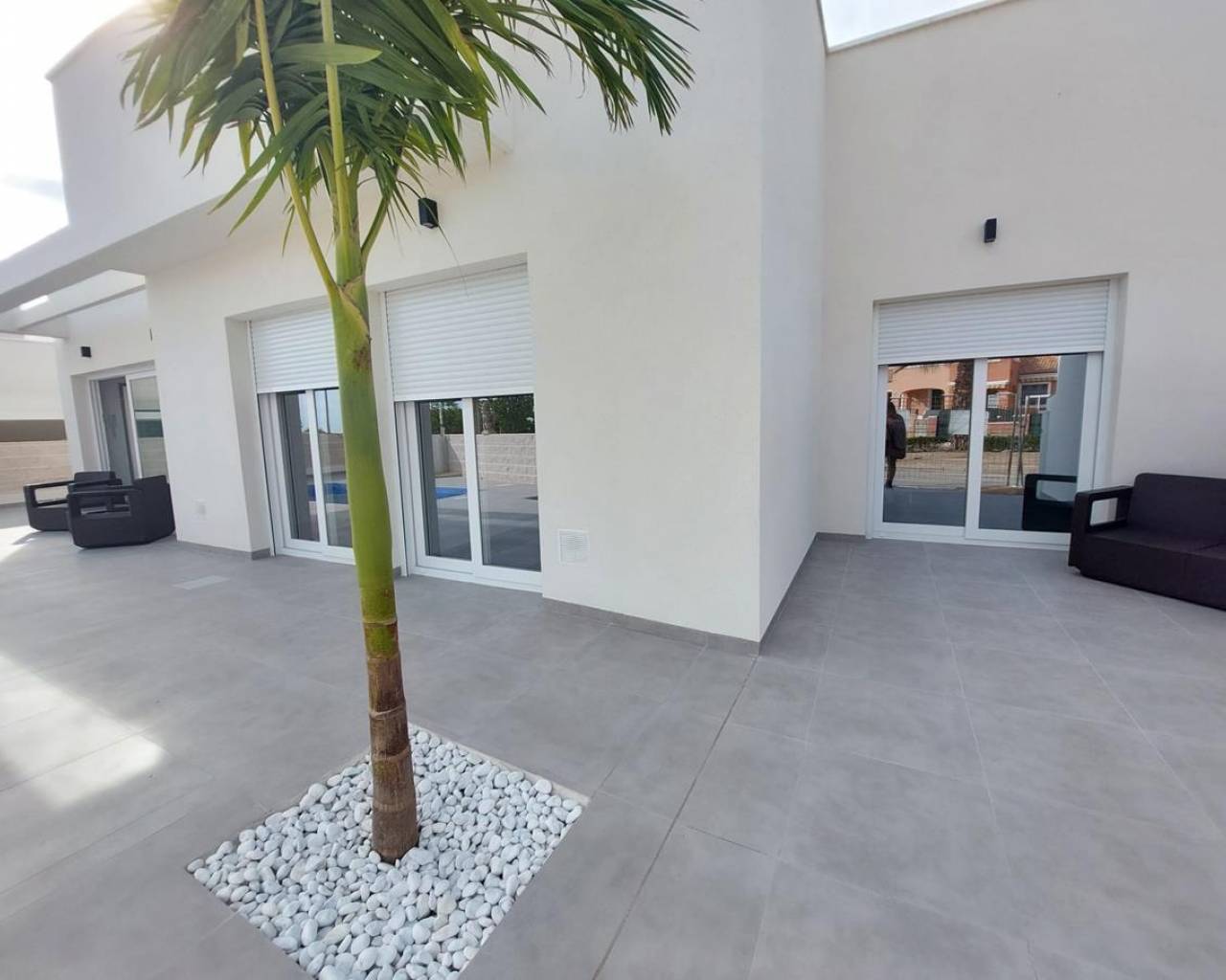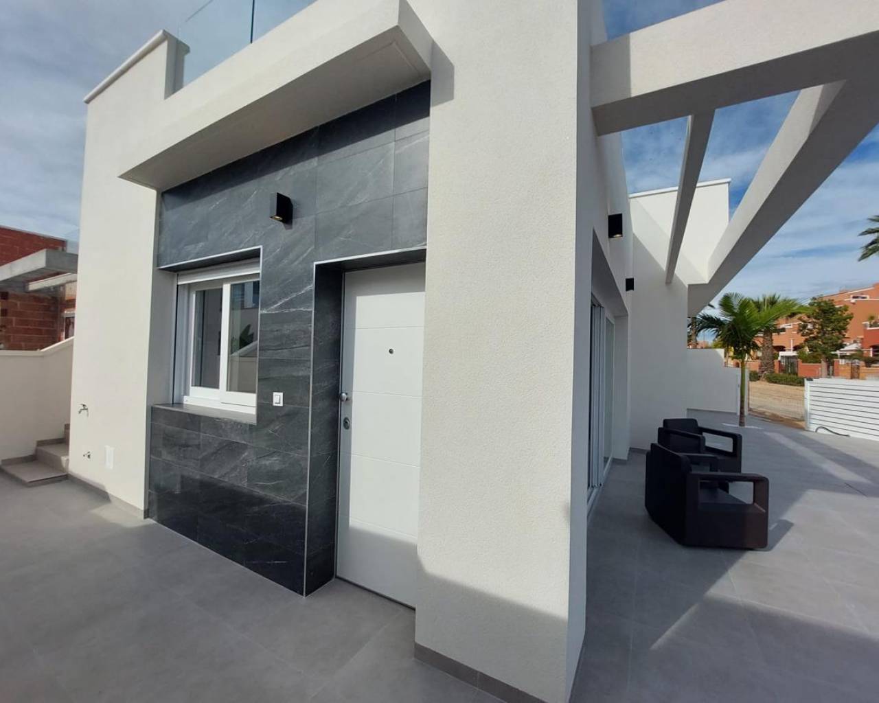 Fantastique villa jumelée à vendre à La Herrada, Los Montesinos, dans un quartier résidentiel très calme sans renoncer aux services de base qu’une ville peut offrir. À moins de 200 m, il y a un grand supermarché, des pharmacies, etc. À moins de 1 km, vous trouverez le centre civique de Los Montesinos avec une grande variété de restaurants et de bars, où vous pourrez profiter de la meilleure expérience gastronomique. À 10 km des meilleures plages de Torrevieja, avec ses bars de plage, sa foire et une variété d’activités de loisirs qui ne vous permettront pas de vous ennuyer. Villa de plain-pied avec solarium, située sur un terrain de 165,99m² avec une belle piscine privée dans le jardin et une place de parking non couverte. Intérieur de la maison de 85,65m² construits qui sont répartis dans un salon spacieux attenant à une belle cuisine américaine entièrement équipée, deux chambres doubles, dont une en suite avec salle de bain attenante, une chambre simple, une salle de bain séparée et l’accès aux magnifiques terrasses extérieures. Sol couvert avec un grand solarium de 80.00m2 donnant sur La Laguna.