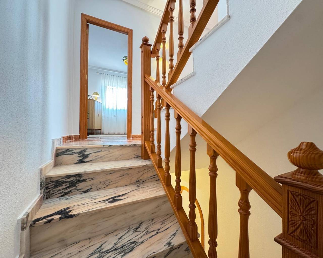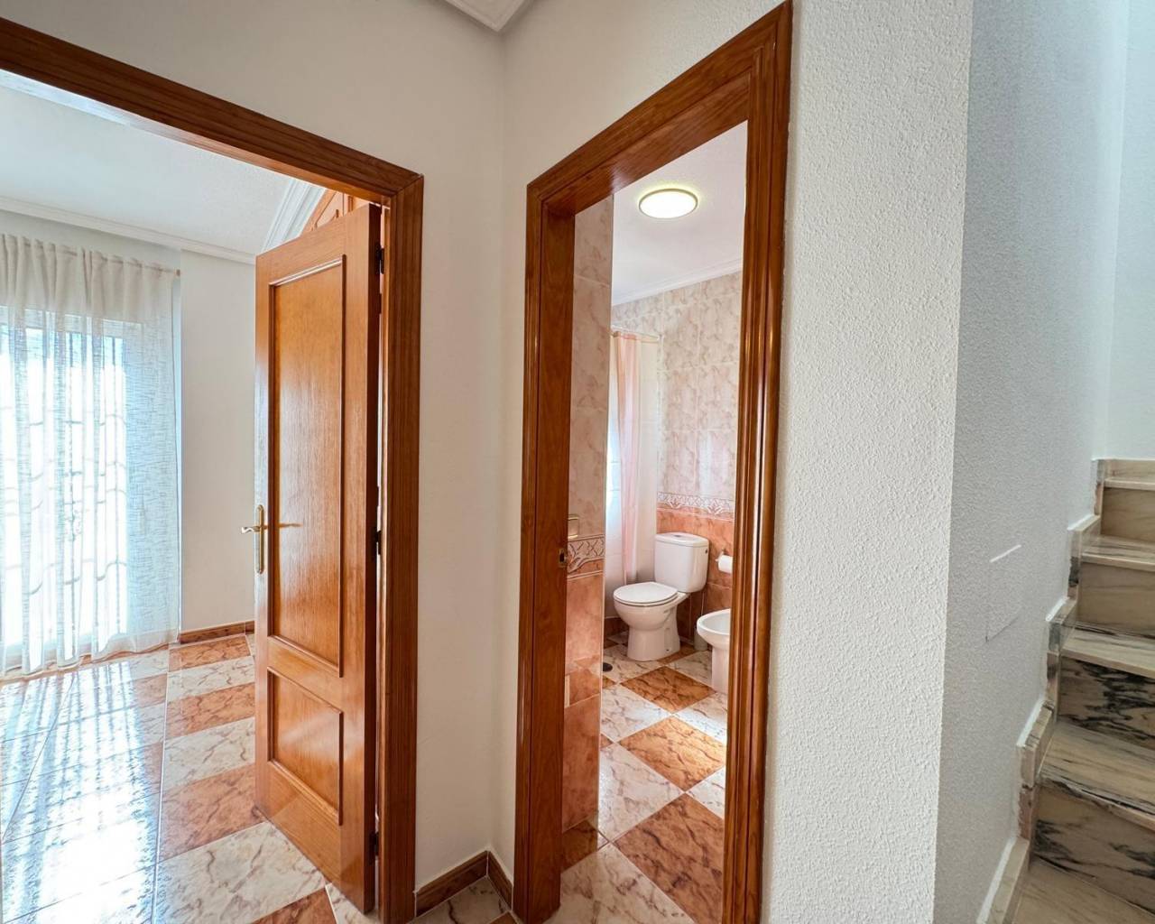 Description de la Propriété Découvrez cette magnifique maison mitoyenne située dans le quartier prisé de Lomas de Cabo Roig, dans la ville d'Orihuela, Alicante. Cette propriété, d'une superficie de 92 m², vous offre un espace accueillant et bien agencé, idéal pour profiter de la vie méditerranéenne. Distribution et Design Avec deux grandes chambres et une salle de bain, cette maison est parfaite pour les couples ou les petites familles en quête de confort et de fonctionnalité. Le design de la maison comprend une cuisine américaine, permettant une connexion fluide entre les espaces, idéale pour ceux qui aiment cuisiner et partager des moments conviviaux. Commodités et Caractéristiques La propriété est équipée de climatisation et de chauffage par systèmes de split, assurant votre confort tout au long de l'année. Son orientation sud-ouest procure une luminosité naturelle qui éclaire chaque recoin de la maison. De plus, elle dispose d'un parking privé et d'un cave, offrant des solutions pratiques pour votre quotidien. Espace Extérieur et Commun L'espace extérieur de 40 m² est une invitation à profiter de l'air libre, parfait pour se détendre ou partager des moments en famille et entre amis. Les résidents peuvent également profiter d'une piscine communautaire, idéale pour les chauds jours d'été. La maison se trouve dans une parcelle close, ce qui offre un sentiment de sécurité et de vie privée. Caractéristiques Supplémentaires Cette propriété est en bon état et présente un double vitrage et une porte de sécurité, garantissant tranquillité et isolation. La bonne communication avec les principales voies permet un accès rapide aux services, aux plages et aux zones commerciales, faisant de cette maison une excellente option pour ceux qui apprécient à la fois la tranquillité et la facilité d'accès. Classe Énergétique La propriété a une classe énergétique de E et des émissions de D, reflétant un engagement envers l'efficacité et la durabilité. En résumé, cette maison mitoyenne à Lomas de Cabo Roig n'est pas seulement un foyer, mais un style de vie qui allie confort, commodité et excellente localisation. Ne manquez pas l'opportunité de faire de cet espace votre nouveau chez-vous.