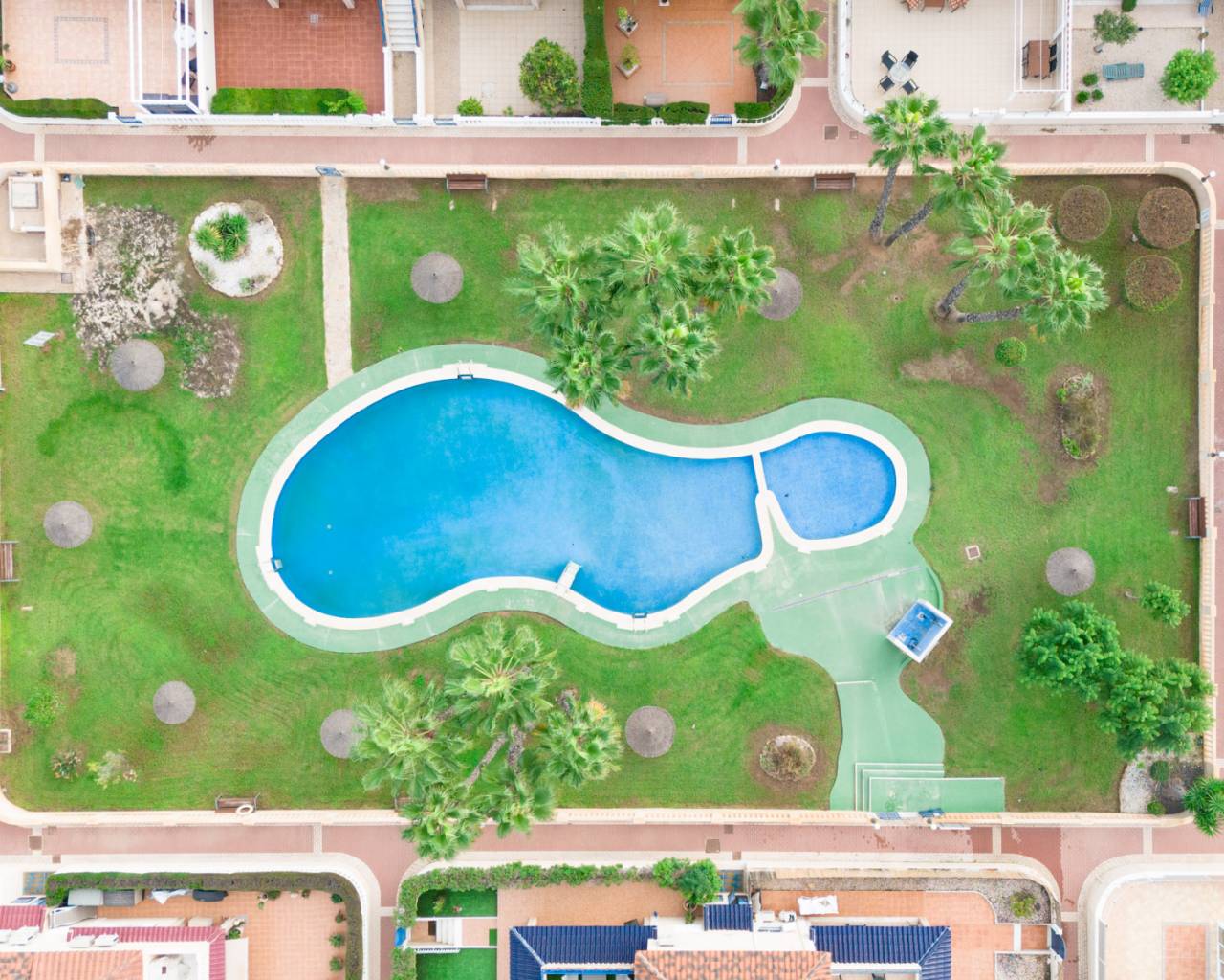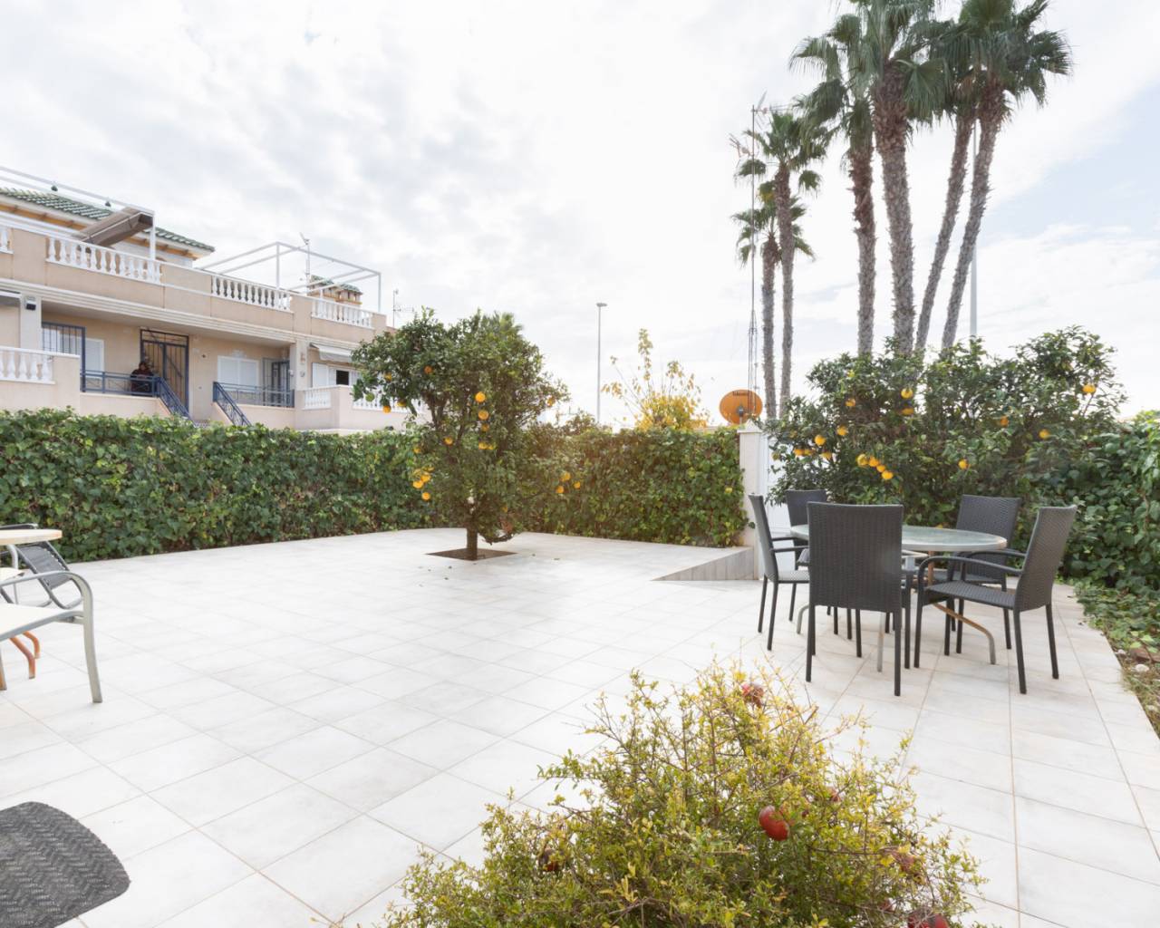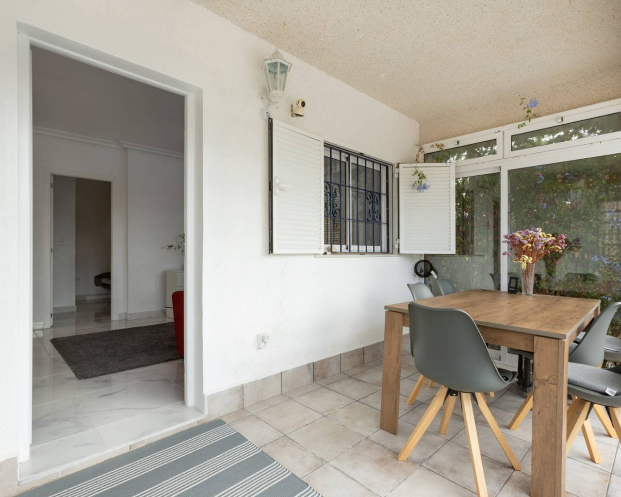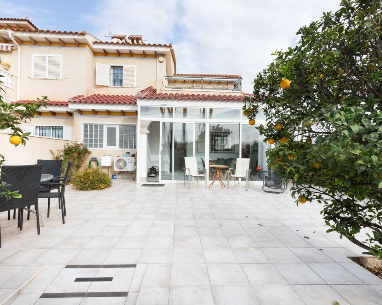This stylish and spacious end-unit townhouse is located in the popular La Florida area of Orihuela Costa. Built in 2001, this two-story home offers room layouts and amenities designed to meet the needs of both families and couples. The home features three bedrooms—one on the ground floor and two upstairs—as well as two bathrooms, one on each floor. The ground floor has been updated in a modern Scandinavian style: light marble tiles on the floors and a striking open-plan kitchen create a light and airy ambiance that perfectly complements the home’s overall look. The glazed, air-conditioned terrace by the entrance serves as an additional year-round living space and is currently set up as a dining area. The south-facing solarium on the upper floor is an ideal spot to enjoy warm days and the sunshine. The home offers ample storage space—with large wardrobes in each bedroom and two storage areas on the ground floor. Three air-conditioning units ensure a comfortable temperature year-round in all spaces. The property also includes a large, fenced south-facing garden, providing both privacy and peace. It’s an ideal space for relaxation or for gathering with friends and family, and the secure, fenced area offers a safe play area for children. The location is excellent in terms of nearby services: the nearest restaurant area is only about 250 meters away, the Lidl supermarket is 900 meters away, and the largest shopping center in the area, Zenia Boulevard, is just 1.6 kilometers away. Playa Flamenca’s beautiful sandy beach is only about 2 kilometers away. This home combines a modern aesthetic, spaciousness, and a perfect location—an ideal choice for high-quality living in Orihuela Costa! Property tax 217.87 euros / year and community fees 589.75 euros / year.