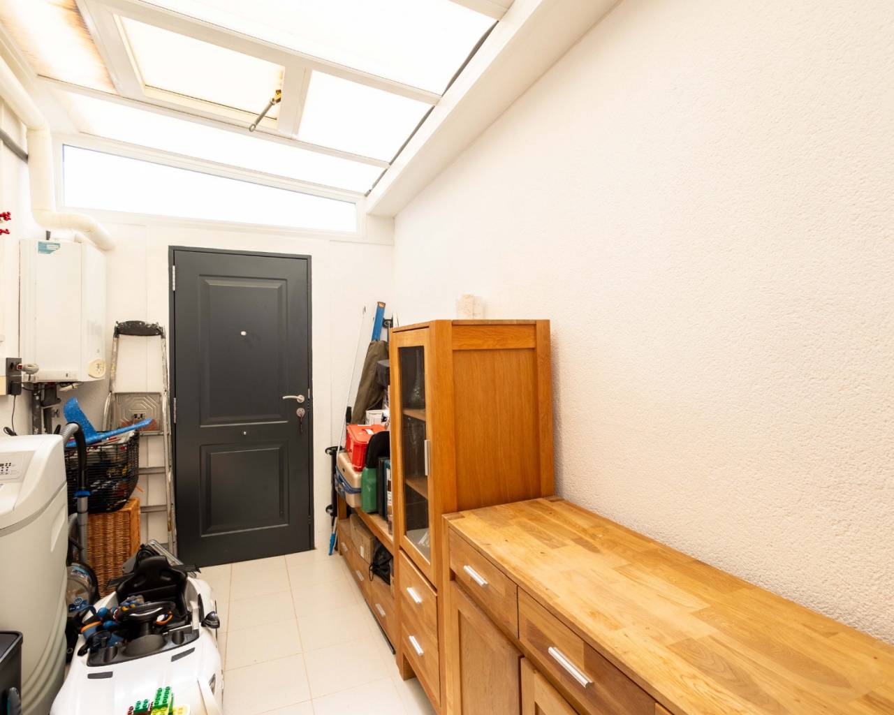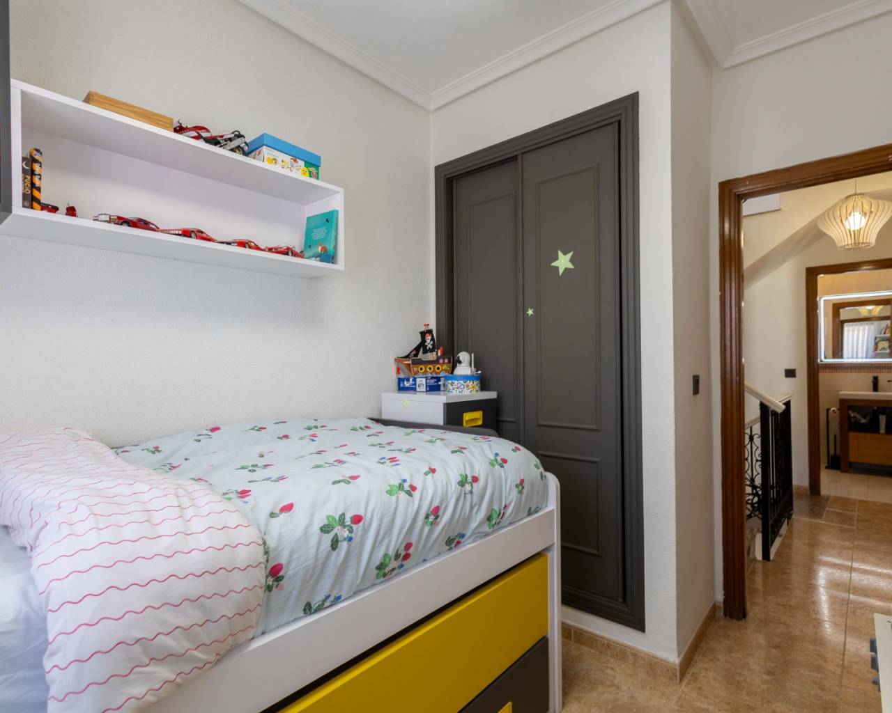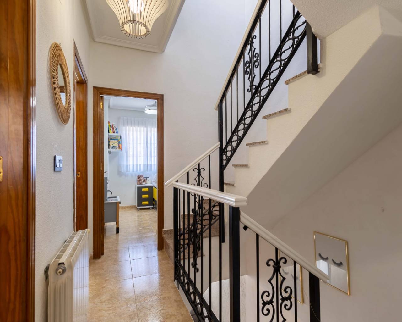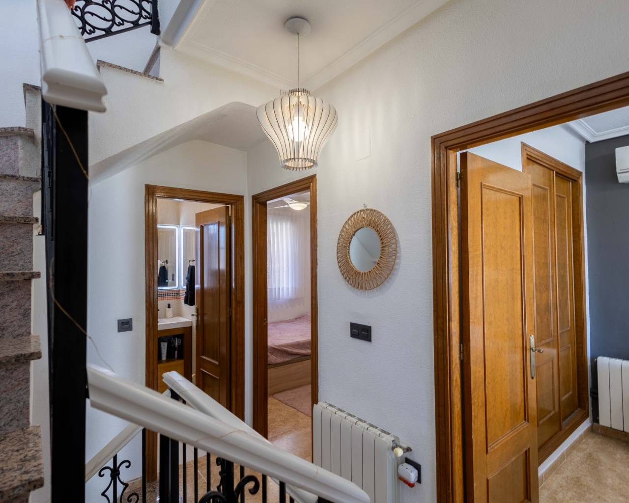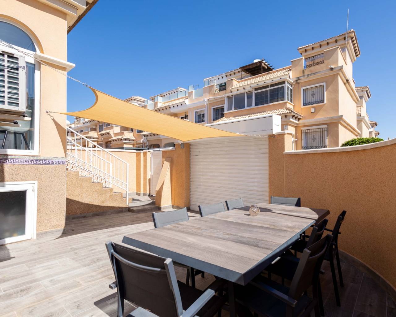 Opportunity to acquire a beautiful corner house with garden and parking on the plot. The property consists of 3 bedrooms and 2 bathrooms, as well as a covered porch, a covered gallery and a storage room. It also has a balcony with magnificent views and a private roof terrace, perfect for sunbathing. This house is ideally located in Villamartin, just 5 km from the sea and close to the Villa Martín golf course. It is sold fully furnished and equipped with all necessary appliances. It is part of a residential complex with a communal swimming pool. This property is ideal for families looking for a holiday home or for those looking for permanent residence. The proximity to supermarkets, shops, bars and schools makes it a very convenient option. The area is quiet and safe, perfect for a relaxed lifestyle. Don't miss the chance to visit this beautiful house!