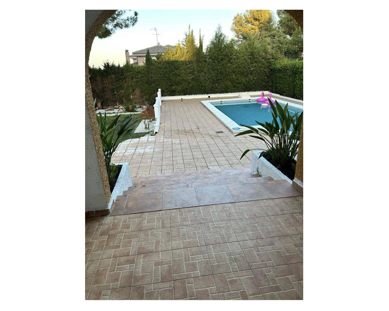 4 bed Villa for sale in Picassent - BM-00-1285-GH Located in the prestigious "Urbanización Sierramar," considered the finest residential area in the region, this villa offers an exceptional lifestyle with 24-hour security, garden maintenance, and garbage collection services. The golf club is just 5 km away, making it an ideal spot for both leisure and year-round living. This single-storey detached home spans 300 m² and sits on a 1,000 m² plot. Inside, it features a spacious living room with a fireplace, a dining area with parquet flooring, and a modern island-style kitchen/gallery fully equipped with appliances. The main house offers four air-conditioned bedrooms and two full bathrooms, one of which includes a jacuzzi for added comfort. The villa also includes a guest house complete with its own fireplace and barbecue area, alongside an impressive swimming pool surrounded by landscaped gardens. The property has a 50 m² open terrace, perfect for enjoying the outdoors, and comes with a private parking space included in the price. Additional amenities include central heating, built-in wardrobes, storage space, a south-east orientation for natural light, and an automatic doorman. While the overall structure is in good condition, only the entrance is adapted for people with reduced mobility. The home is sold unfurnished, ready for the new owners to personalize to their taste. Distribution: 50 m2 open terrace the house has: automatic doorman. Detached house 1 floor 300 m² built 4 bedrooms 2 bathrooms Plot of 1,000 m² Terrace Parking space included in the price Existing construction/in good condition Built-in wardrobes Storage space Orientation south, east Central heating Only the entrance is adapted for people with reduced mobility Air conditioning Swimming pool Gardens