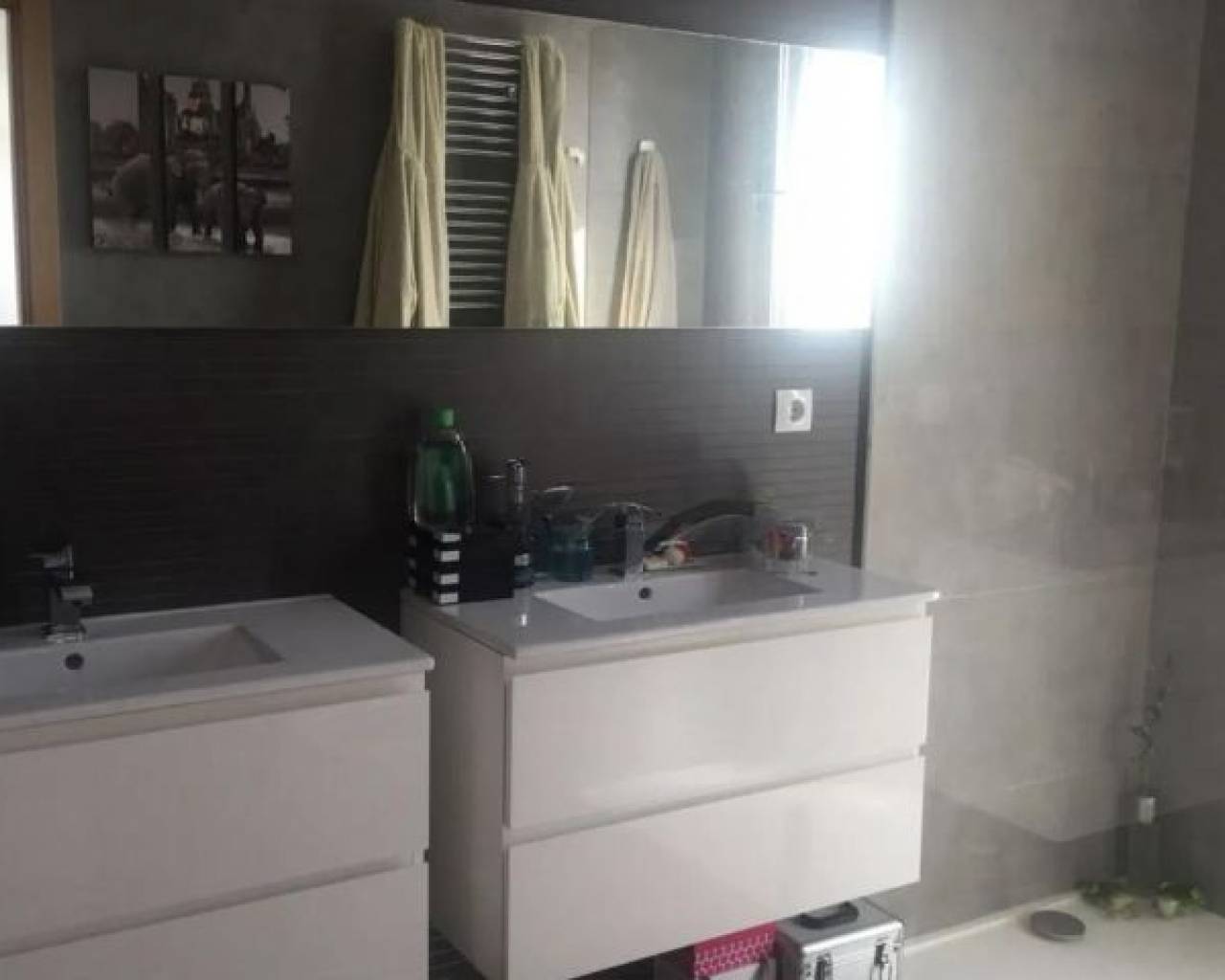 4 bed Villa for sale in Alzira - BM-00-1472-AH This beautiful designer semi-detached house is located in a very quiet neighborhood surrounded by expansive green areas. Bright and spacious, the home offers stunning mountain views and a modern interior featuring laminate flooring, newly renovated designer bathrooms, and a terrace with elegant limestone flooring. The property includes a total of four bedrooms and three bathrooms, with two of the bathrooms en suite. It boasts multiple outdoor spaces, including two main terraces—one of 35 m² facing the street and another of 80 m² at the rear, complete with a 10 m x 2.5 m swimming pool and garden. Two additional smaller terraces are located on the upper floor in the bedroom area. Built in 2007, the home is spread over two floors and offers a total built area of 285 m². It also includes a garage with space for two vehicles, plus an additional room currently used as an office or spa area. Other features include a laundry room with a dedicated shoe closet, five built-in wardrobes, air-conditioning, individual natural gas heating, and a storage room. Ready to move into, this property requires no renovation and includes a parking space in the price. Semi-detached house 2 floors 285 m² built 4 bedrooms 3 bathrooms Terrace and balcony Parking space included in the price Second hand/good condition Built-in wardrobes Storage room Built in 2007 Individual heating: Natural gas Air-conditioning Pool Garden