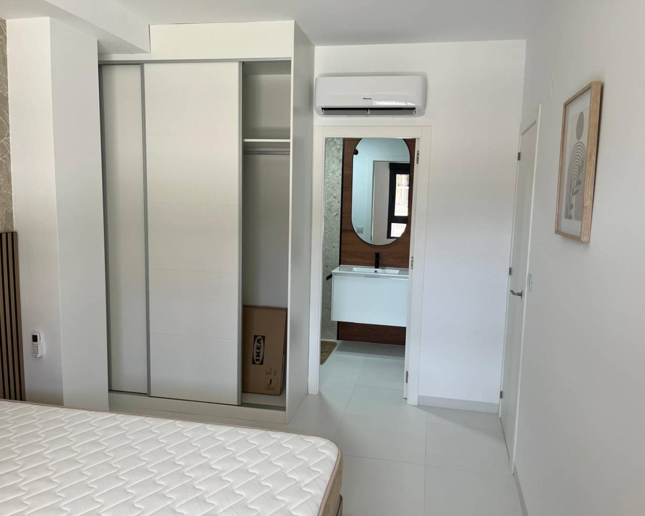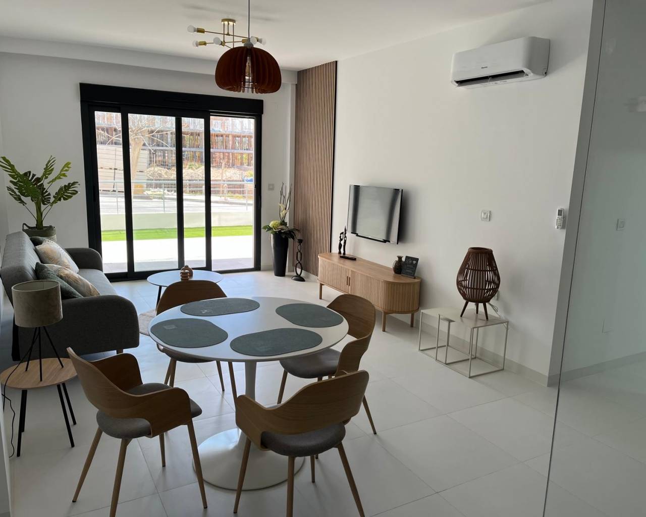 This modern 2 bedroom, 2 bathroom apartment is located in San Miguel de Salinas, in an excellent location close to all amenities and leisure areas. With a built area of 75 m², the house features a fully equipped open-plan kitchen, a bright living room and two bedrooms, and access to a private veranda and a private garden overlooking a covered terrace of 30 m² and a spacious garden of 40 m². Highlights: 2 built-in wardrobes Furnished Equipment included Air conditioning and pre-installation for air conditioning Secure door and intercom Located on the ground floor with easy access Ideal location: Only 15 minutes from the beach 40 minutes from the airport 10 minutes from the golf course 10 minutes from recreational areas and amenities Perfect for both permanent living and holidays. Move-in ready!
