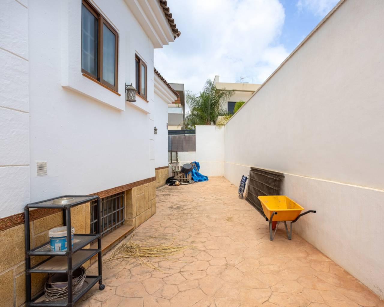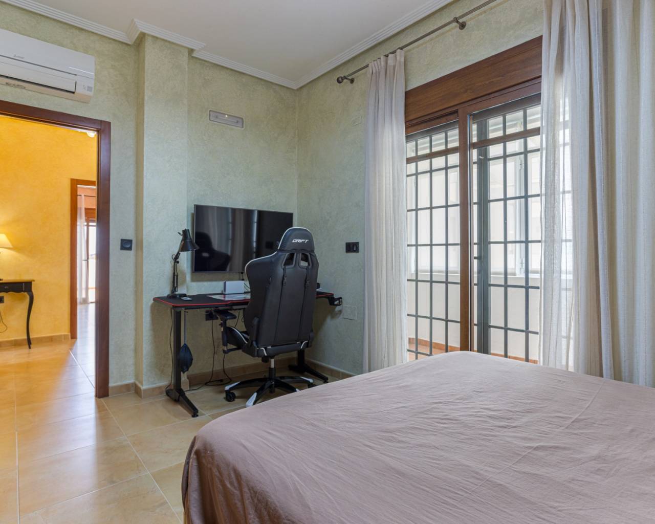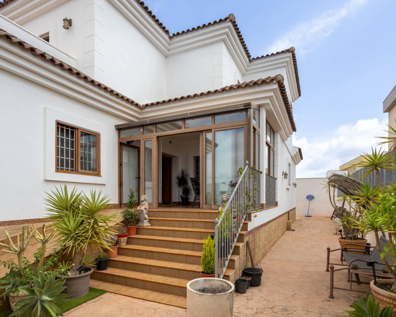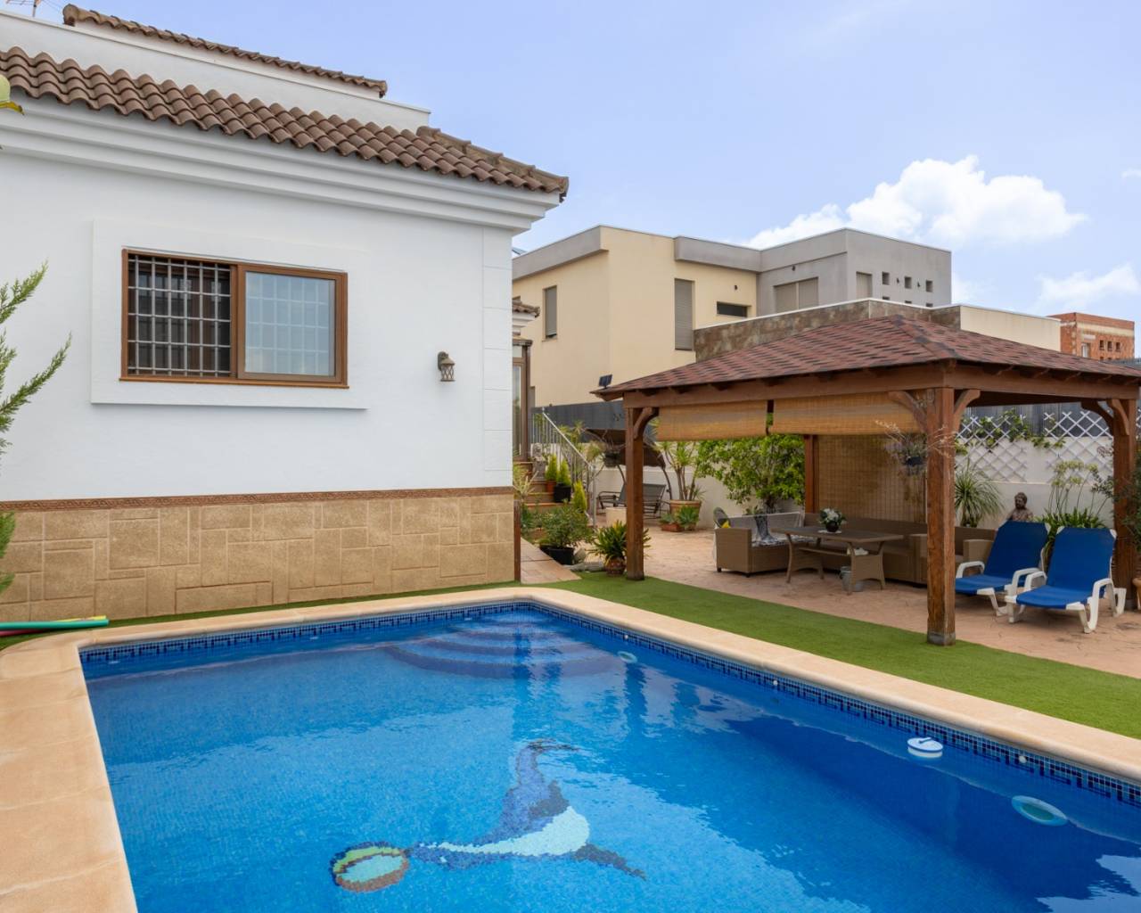 Exclusive detached villa in Los Montesinos – Space, comfort and Mediterranean style We present this beautiful home, situated in a quiet residential area of Los Montesinos, an ideal location for those seeking quality of life, privacy, and proximity to all essential amenities. With a built area of 417 square meters on a generous 532 square meter plot, this property is designed to offer space, functionality, and comfort in every corner. Upon entering, we are greeted by a well-maintained Mediterranean garden that surrounds the entire house, with spacious outdoor areas inviting you to relax and enjoy the year-round sunny climate. The private pool, perfectly integrated into the surroundings, is the ideal place to cool off in the summer or relax on the shaded terrace and gardens. The interior of the house stands out for its practical and bright layout. On the ground floor, there's a spacious living/dining room with a fireplace, perfect for family gatherings or cozy evenings. From here, there's direct access to the covered veranda and terrace, creating a natural connection between indoors and outdoors. The kitchen is separate, spacious, and fully equipped with modern appliances, designed for everyday use or for those who enjoy cooking at home. The house has four bedrooms, all bright and airy, ideal for families or those looking for guest rooms, offices, or multifunctional spaces. The three bathrooms are designed with high-quality finishes, combining style and functionality. The large basement offers a versatile space that could be used as a games room, private gym, wine cellar, or even a separate living area. The property also includes a private, enclosed garage with space for one car and additional storage. The house is fully furnished, with air conditioning in several rooms, a security door, and an intercom. It's move-in ready without renovation. Its southwest orientation guarantees natural light most of the day, creating a warm and pleasant atmosphere in every room. Located just a 15-minute drive from the beaches of the Costa Blanca, 40 minutes from Alicante Airport and just minutes from supermarkets, restaurants, leisure centres and golf courses, this property has everything it takes to become the perfect home or an excellent investment for tourist or holiday rentals. If you are looking for an exclusive home full of character and ready to enjoy from the first moment, then this villa in Los Montesinos is undoubtedly an opportunity not to be missed.