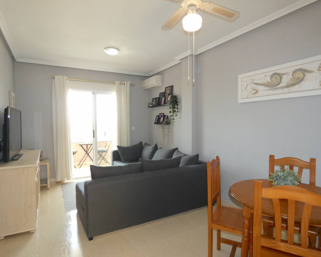 Top-Floor Apartment with Spectacular Views in Secure Residencial CeciliaLocated in the sought-after gated community of Residencial Cecilia, this well-presented top-floor apartment offers comfort, convenience, and breathtaking surroundings. Boasting 2 bedrooms and a renovated bathroom, this home is ideal as a permanent residence, holiday escape, or investment property.This West facing apartment is equipped with hot and cold air-conditioning, ensuring year-round comfort. A standout feature is the versatile balcony with the option of glazed-in or unglazed, perfect for enjoying the panoramic views of the Callosa mountain range and the iconic Ermita church in all seasons with lovely aftenoon sun and outstanding sunsets. Enjoy your own private solarium, a peaceful space ideal for sunbathing, relaxing, or entertaining while taking in the stunning scenery. The well-maintained community offers access to a lovely communal pool, perfect for cooling off on warm Mediterranean days.Situated within walking distance to local amenities, such as shops, bars & restaurants, pharmacy, medical centre, and municipal pool... the apartment is perfectly placed for daily living. Golf lovers will appreciate being just 5 minutes from the renowned La Finca Golf Resort, while the award-winning beaches of the Costa Blanca are only 15 minutes away. Alicante Airport is easily accessible in just 35 minutes.This is a rare opportunity to own a beautiful property in a peaceful and friendly community, with everything you need close at hand.