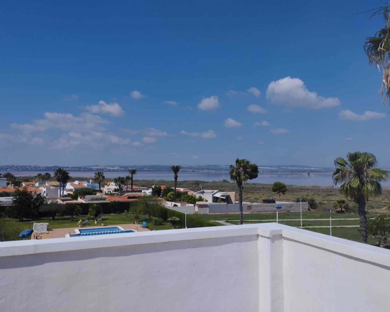 Magnificent Villa with Breathtaking Location in Torrevieja Overlooking the Salt Lakes and Mountains Welcome to this impressive and spacious villa located in Torrevieja with spectacular views over the salt lakes and mountains. The villa has access to a large communal pool. This large villa offers a generous 375 m2 and is ideal for a large family or as a luxurious holiday home. Spread across 2 floors and a spacious basement, the house boasts 6 large bedrooms, 5 bathrooms, a living room, dining room, and a large kitchen-dining area connected to the living room and the villa's laundry room. The kitchen is well-equipped with tiles on all the walls and has an open connection to one of the courtyards. There is also a large double bedroom on the ground floor. On the first floor, you'll find 5 bedrooms, including the master bedroom with a jacuzzi and walk-in closet. Wake up to the stunning views over the salt lakes and mountains from the spacious master bedroom. There is also another large bathroom with a jacuzzi on this floor. All bedrooms in the villa have built-in closets. The basement, which spans an impressive 135 m2, contains 2 rooms and a bathroom with high ceilings. On the second floor, there is a loft area with access to the large rooftop terrace, offering a unique 360-degree view. Enjoy Costa Blanca's many hours of sunshine and an impressive sunset from the rooftop terrace. The villa is situated in a quiet area close to nature. The impressive 600 m2 plot is tiled and easy to maintain. The garden features several terrace areas and garden spaces, with the possibility of installing a private pool on the plot. This villa is truly something special with its fantastic location, ample rooms, and large plot. A rare opportunity to acquire this Mediterranean gem.
