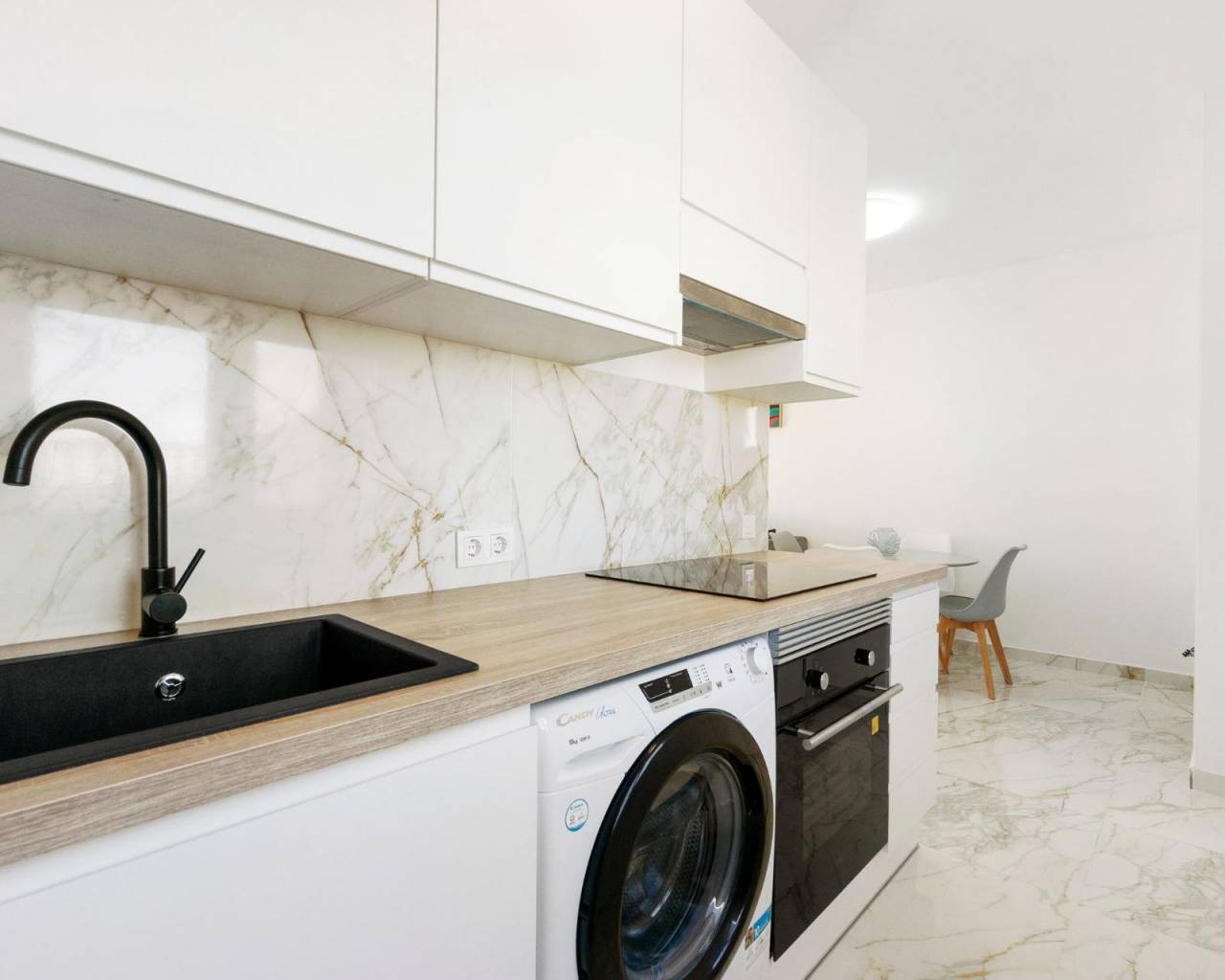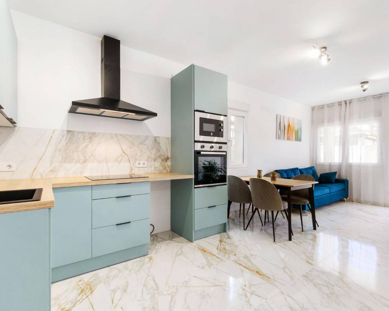 Newly renovated semi-detached villa in El Chaparra, located within a short drive of shops, bars, restaurants, supermarkets and the city of Torrevieja. It is separated into two houses with independent access. On the ground floor we have a house of 54m2 of area, consisting of 2 bedrooms, a bathroom, living-dining room, open-plan kitchen. On the first floor an apartment with its independent entrance, of about 35m2, consisting of 1 double bedroom, living room, has its own kitchen and bathroom; with a large terrace with views of the surroundings. The comprehensive reform was recently carried out with quality materials and modern interior design. Underfloor heating in the bathrooms. Sold with brand new furniture and appliances. Parking space for the car on the plot.This villa offers a harmonious combination of comfort and style.