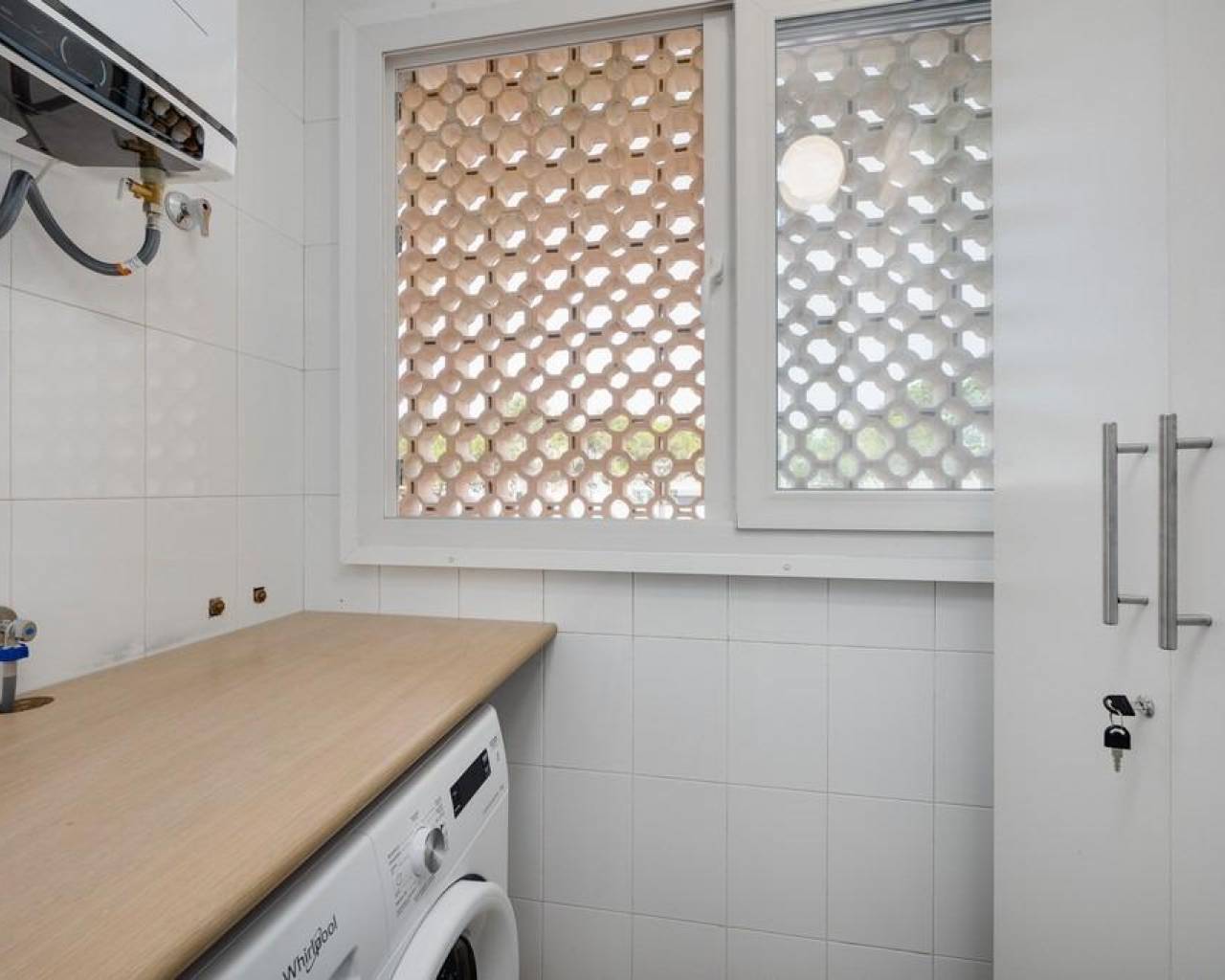 We present this modern, fully renovated apartment. Located in one of the most well-known residential areas of Dehesa de Campoamor, in the Aguamarina area, just 300 meters from the beach. Very bright, the apartment consists of two bedrooms, one bathroom, a separate kitchen, and a large terrace overlooking the green areas of the complex. Ideal for enjoying a vacation or living year-round.~Fully furnished, with brand new furniture. The separate kitchen has new appliances. It has air conditioning in all rooms and parquet floors, providing warmth and comfort year-round.~The south-facing terrace is perfect for watching the sunrise over the sea or relaxing in the afternoon with the sea breeze.~Located in a quiet and exclusive area, surrounded by nature and Mediterranean vegetation, with all services within walking distance: cafes, restaurants, supermarkets, shops, and a modern marina, providing comfort and quality of life.~