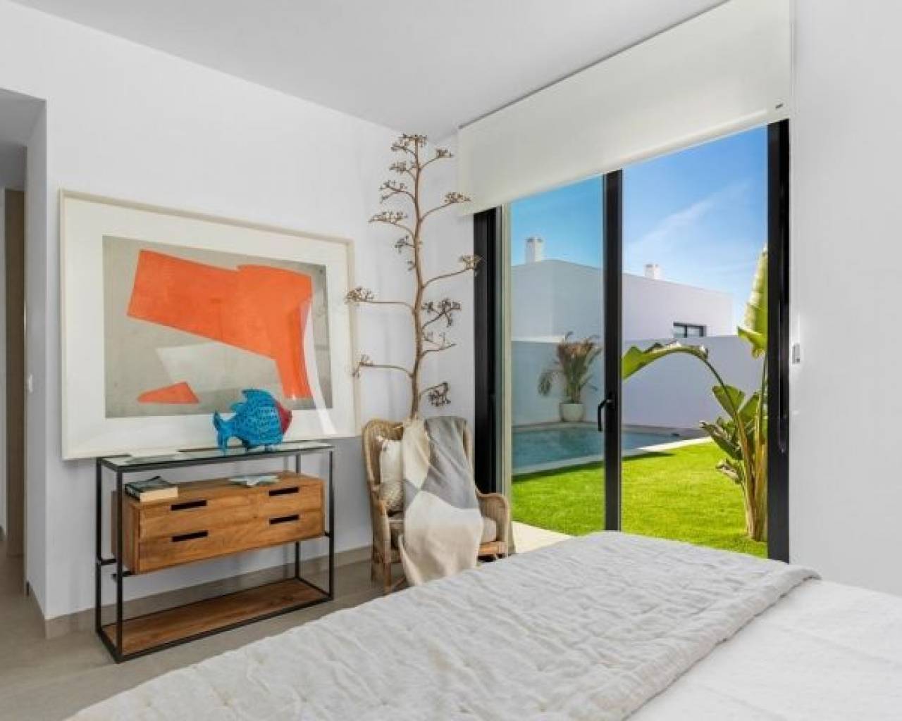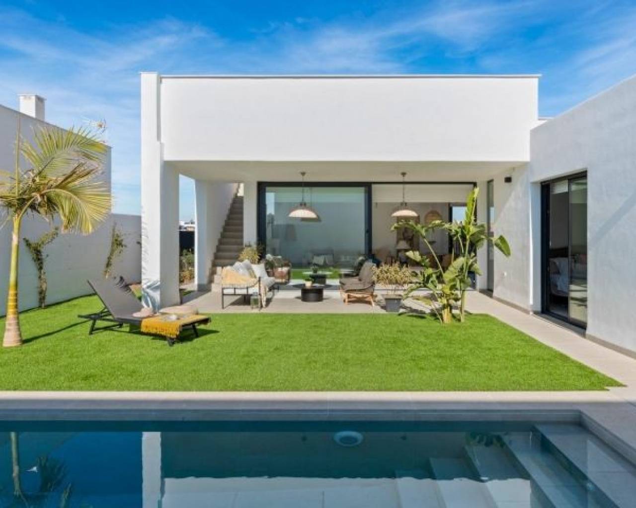 NEW BUILD VILLAS IN MAR DE CRISTAL New Build one level villa with 3 bedrooms, 2 bathrooms and private solarium at 500 meters from the Mar De Cristal beaches. Villas has modern open plan kitchen with the living room, where high sliding windows has access to the garden with private swimming pool and parking space. Mar De Cristal is a coastal town in the middle of beautiful nature and nature parks of which you find photo’s added. This is one of the most beautiful places in Spain and the whole world. In Mar De Cristal you will find some nice restaurants and a supermarket. The nice restaurants of Los Belones are only 2 km’s away, The 36 km beaches of La Manga are a 5 minutes drive. Magical Cabo De Palos and Portman is only a 5 minutes drive. The big shopping centre of Cartagena is less than a 10 minutes drive. Murcia Corvera airport is 30 minutes away, Alicante airport 55 minutes.