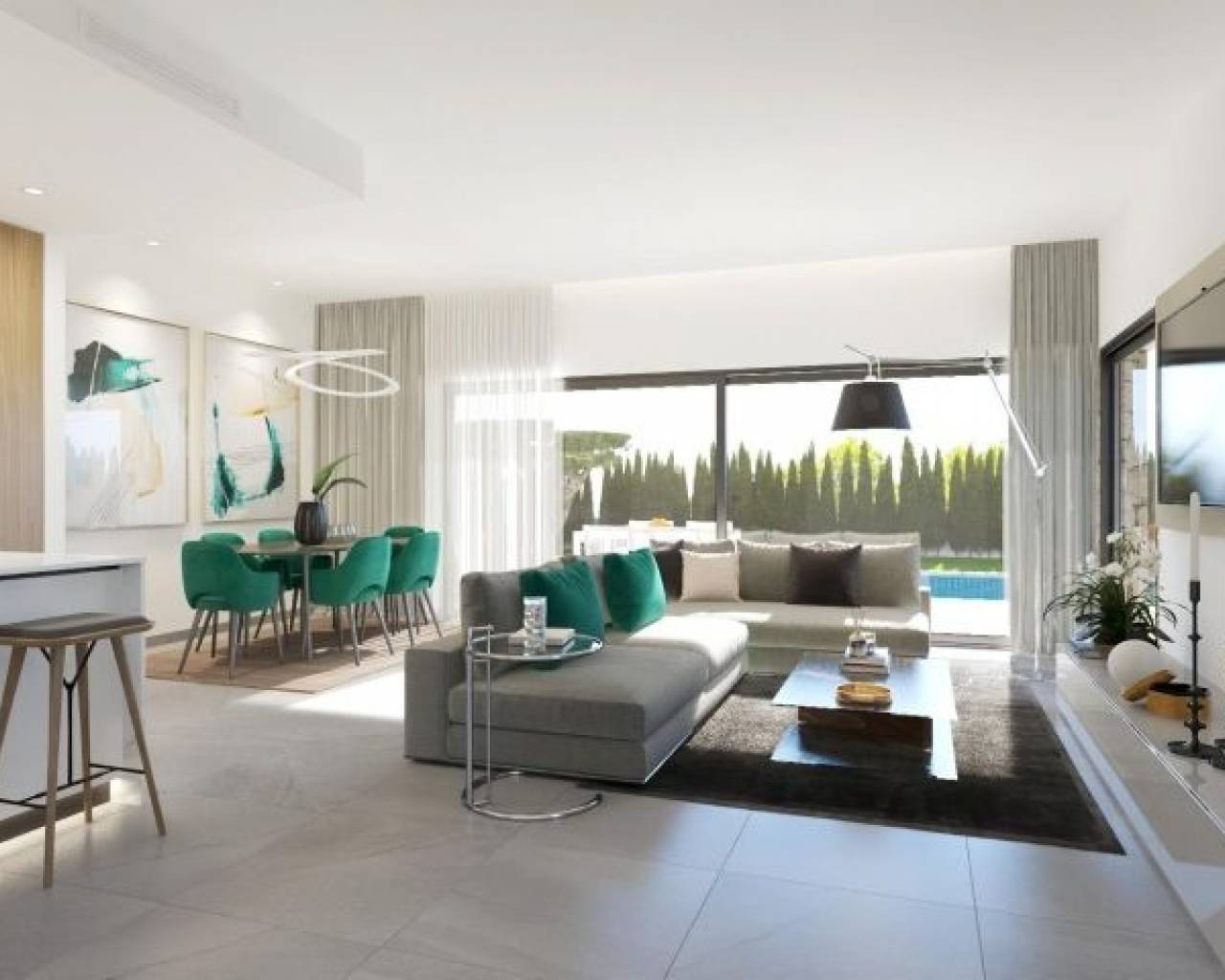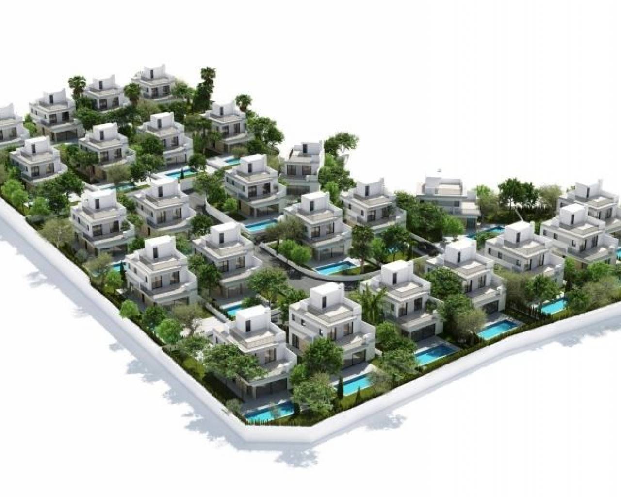 NEW BUILD VILLAS IN SAN MIGUEL DE SALINAS New Build exclusive residential complex offers luxury villas with plots of 400 m2 and a stunning 8x3,5m swimming pool. These modern homes offer 3 bedrooms, 3 bathrooms, a spacious living-dining room and a fully equipped kitchen, as well as a garden, solarium and swimming pool. The villas stand out for their bright and open spaces, which offer exceptional views and a layout that optimises every corner of the home to the maximum. High quality finishes and interiors merge into a contemporary concept of luxury, combining the elegance, comfort and refinement that buyers desire. The design and construction of this residential complex has taken into account fundamental aspects such as energy efficiency and the use of top quality materials, thus guaranteeing a sustainable and long-lasting lifestyle. San Miguel de Salinas is a municipality in the Valencian Community, Spain. Located in the south of the province of Alicante, in the region of Vega Baja del Segura near the Region of Murcia. San Miguel de Salinas located close to the Las Colinas and Campoamor golf courses, offers exceptional views of the Torrevieja and La Mata lagoons. Alicante airport located 35 minutes drive away and Murcias Corvera airport is about 1 hour drive away.