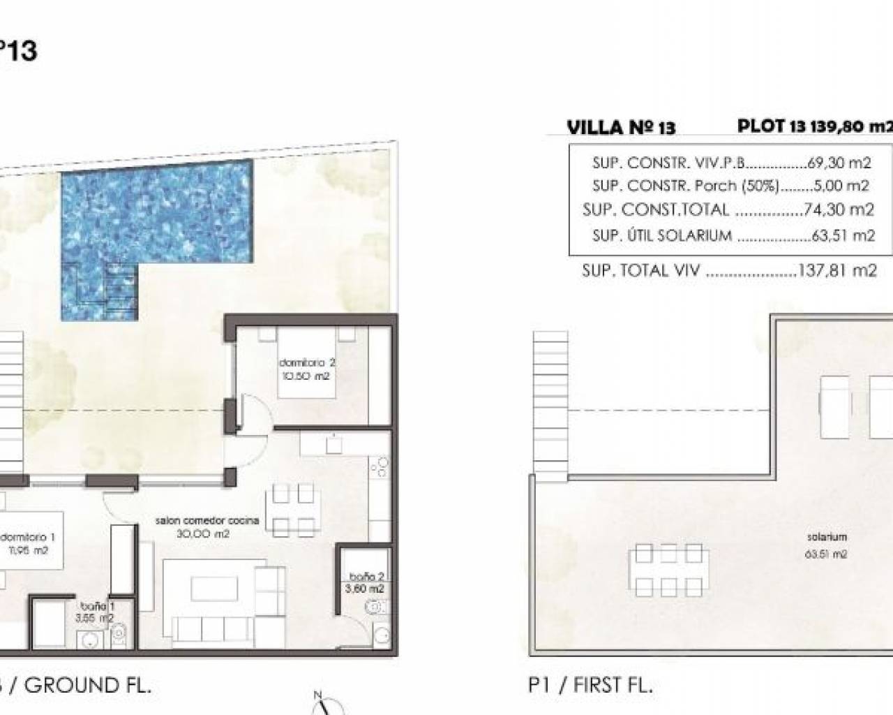 NEW BUILD TOWNHOUSES IN PILAR DE LA HORADADA New Build townhouses located in Pilar de la Horadada. Townhouses build on 1 floor and has private solarium, 2 bedrooms, 2 bathrooms, open plan kitchen with the living room, garden with parking space. An options for a private pool at an extra cost. Properties located a few meters from all services and the centre. Pilar de la Horadada is a typical Spanish village in the most southern part of the Costa Blanca. The large main street has supermarkets, lots of shops, restaurants and bars and some lovely squares. The beautiful beaches of Torre de la Horadada and Mil Palmeras with fine sand promenade is just 5 minutes away. In Pilar de la Horadada there is also a well-developed cycling and walking path network, and there is also a large offer of various sports activities. Lo Romero 18 hole golf course is just a short drive from town. The airports of Corvera (Murcia) and Alicante are respectively 40 and 55 minutes away.