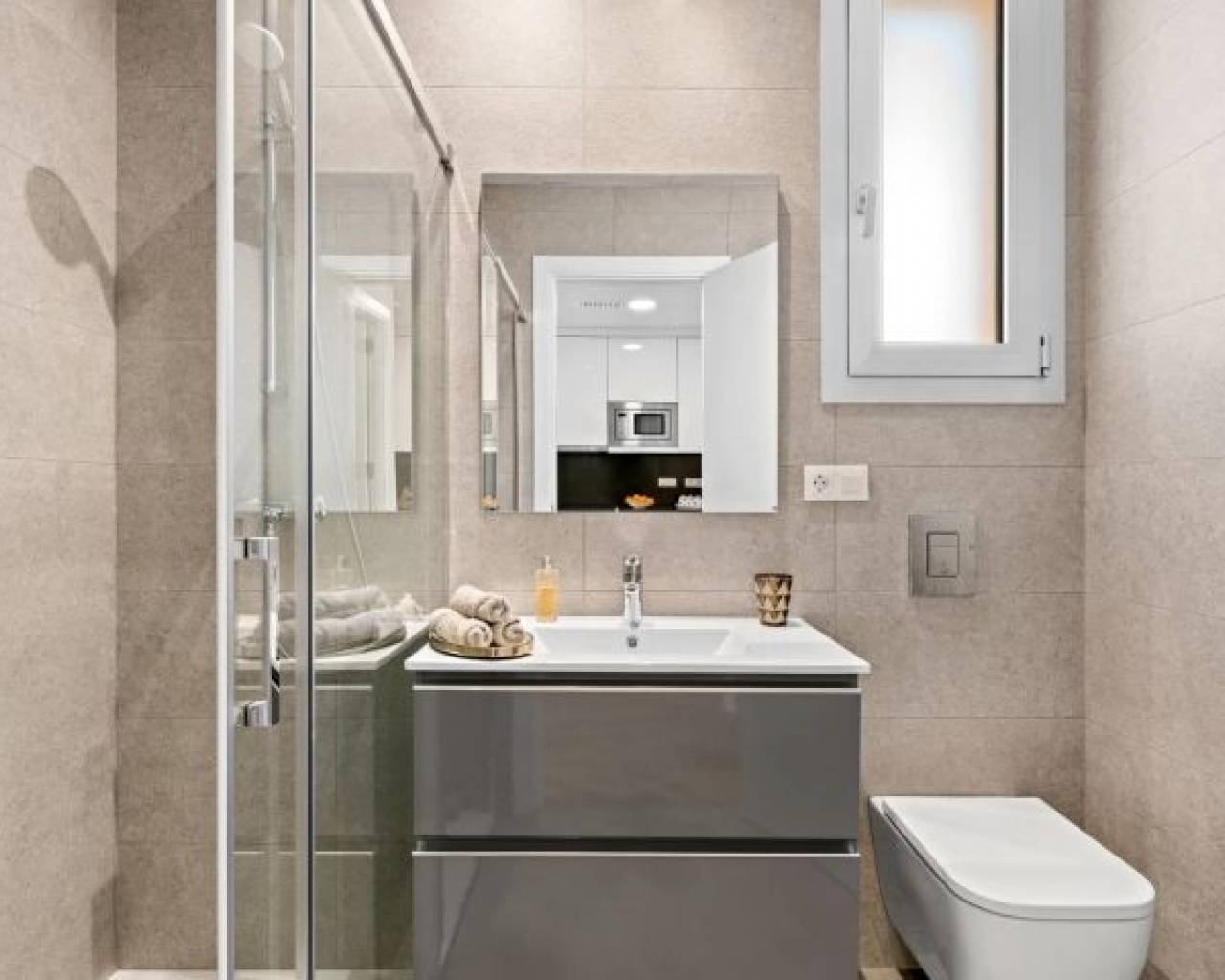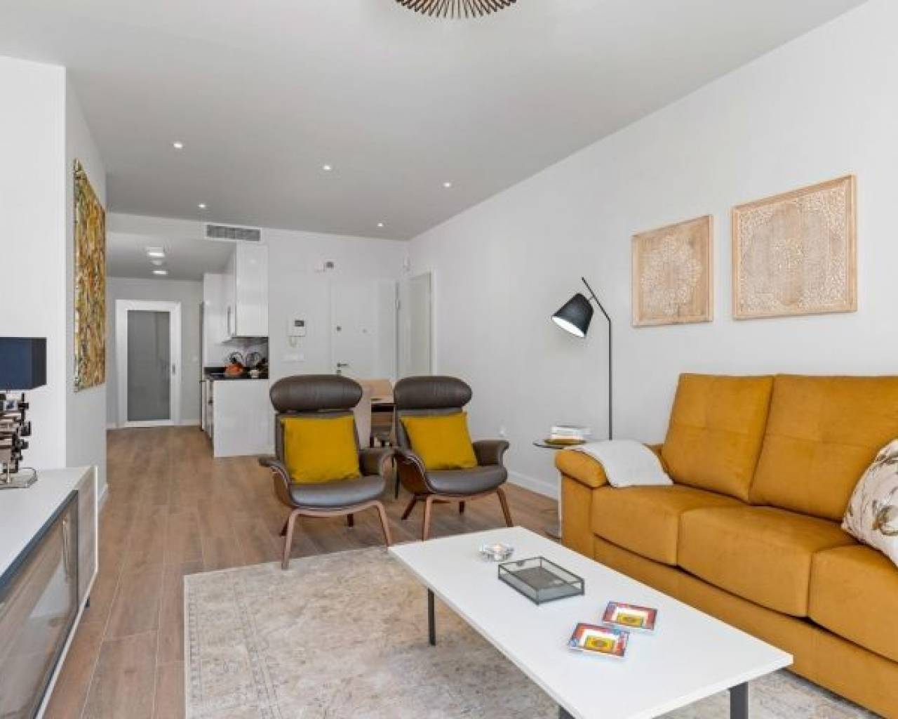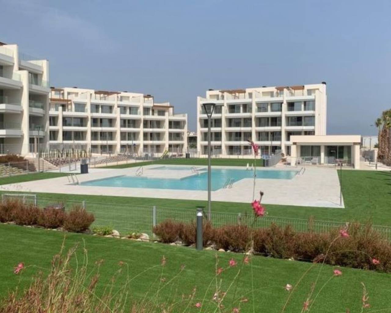 NEW BUILD RESIDENTIAL COMPLEX IN VILLAMARTIN New Build residential complex of a total of 94 modern 2 bedrooms apartments and penthouses in Villamartin. You can choose from ground floor apartments with garden, apartments with cosy terraces or penthouses with sunny roof terraces and fantastic views Open plan kitchen and the living room, 2 spacious bedrooms with fitted wardrobes, 2 bathrooms, laundry room. The properties are delivered with white goods, LED lighting package, underfloor heating and shower screens in bathrooms, ducted A/C installed, Legrand smart home system installed, aerothermal system for hot water, motorized blinds and private parking space. Residential will offer a large communal swimming pool, green areas, sauna, children's playground and gym. Excellent location close to shops and golf courses. The Villamartin area is very popular with tourists and residents, most of the community consists of Western European expatriates who have settled there in the last 15 years, virtually transforming the original village into a vibrant all year round destination. There a 3 golf courses nearby and the blue flag beaches are just a short 10 minute drive away. Alicante & Murcia airports are 45 minutes drive away.