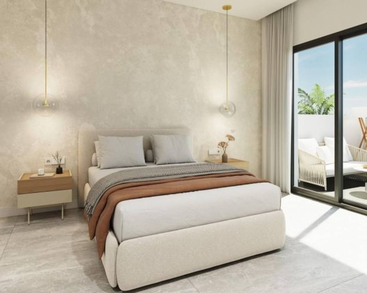 Exclusive New Build Bungalows in Pilar de la Horadada - Unique Style and Privileged Location A Unique Style that Defines your New Home This new development of 2 and 3 bedroom bungalows in Pilar de la Horadada stands out for its modern design and undulating structure, which gives each home a unique personality. You will be able to choose between: Ground floors with front garden and back patio. Top floors with private solarium. The residential complex has a communal swimming pool and spacious communal areas designed for the relaxation and enjoyment of the whole family. In addition, the development offers an outdoor gym, communal jacuzzi and parking area for bicycles, as well as a parking space assigned to each property with the option of charging electric vehicles, designed to offer you maximum comfort and quality of life. Bright and high quality interiors Each home has been designed to offer an experience of comfort and functionality. Open-plan spaces maximise the feeling of spaciousness and light, while neutral tones and wood finishes create an elegant and welcoming ambience. Spacious and bright bedrooms, with the master bedroom offering access to a private terrace. Open concept kitchen, integrated into the living room for convenience. Modern bathrooms with top quality materials. Pilar de la Horadada - Quality of Life on the Costa Blanca Located in the province of Alicante, Pilar de la Horadada is a coastal town that combines tradition with a relaxed atmosphere. It is known for its beautiful beaches, such as Playa de las Higuericas, with golden sand crystal clear Mediterranean waters. In addition to its coastline, the town has a vibrant main street lined with shops, supermarkets, restaurants and picturesque squares. Its excellent infrastructure includes cycle paths, hiking trails and a wide variety of sporting activities. Proximity to Major Points of Interest This residential development offers convenient access to the most important destinations in the area: Torre de la Horadada beach - 3 km (5 min drive). Lo Romero Golf Course - 5 km (10 min drive). La Zenia Boulevard Shopping Centre - 15 km (15 min drive). Corvera Airport (Murcia) - 40 km (40 min drive). Alicante Airport - 55 km (55 min drive). Secure your Costa Blanca Property Today Don't miss out on the opportunity to purchase a brand new property in an exceptional location. Contact us today for more information and to arrange a viewing.
